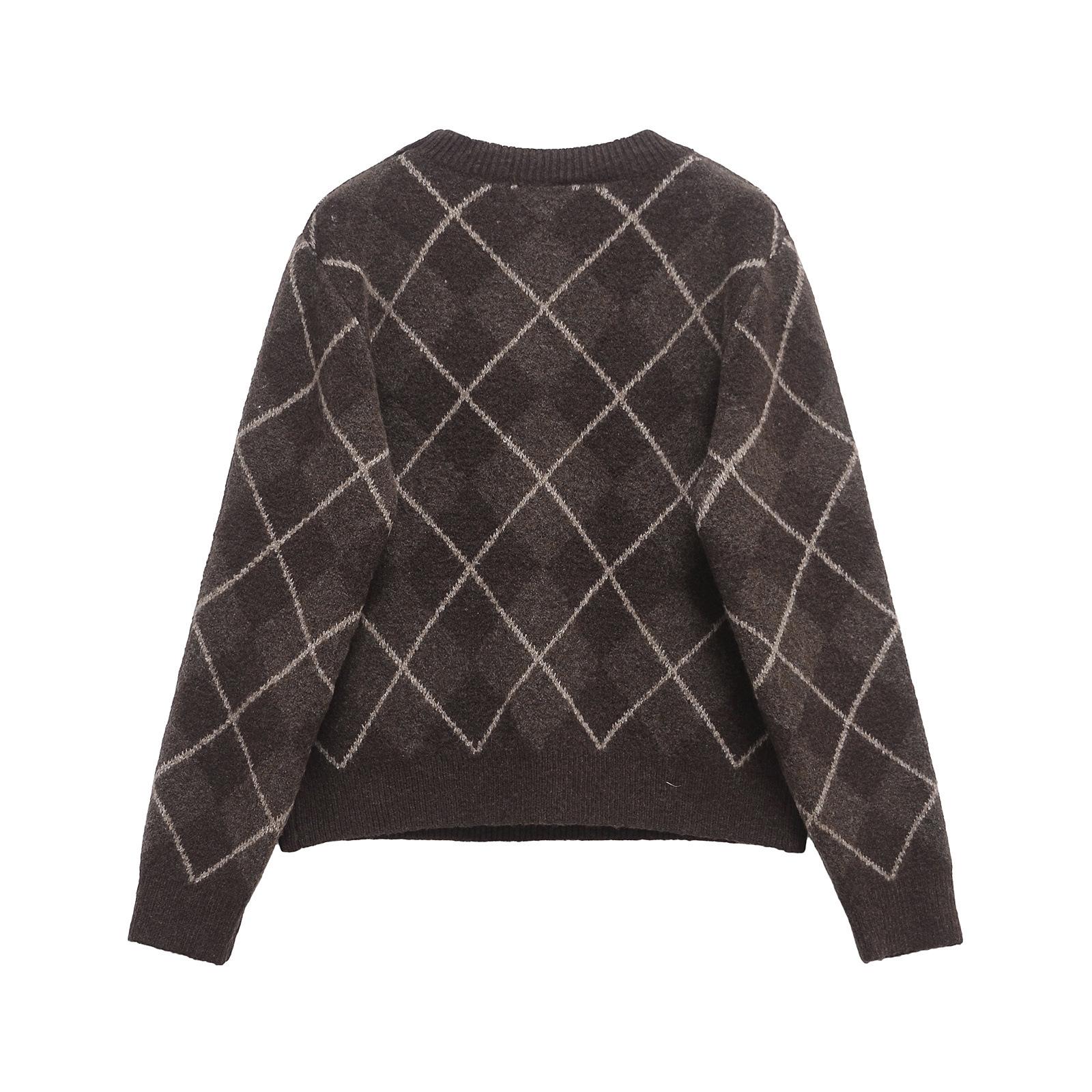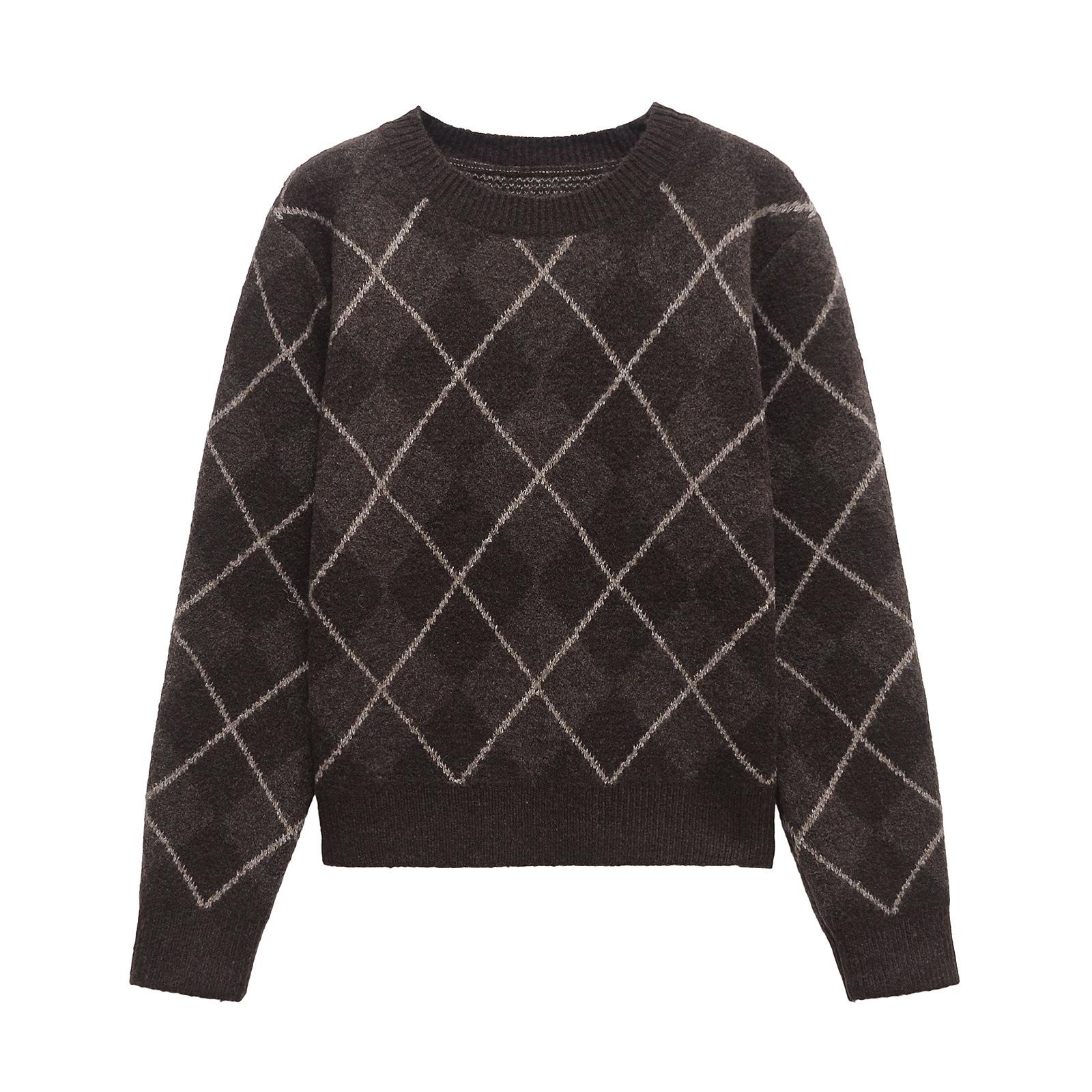 Primavera 2025 Nuevo Top de Moda Urbana Transfronteriza Europea y Americana para Mujer Cuello Redondo Suéter de Punto Diamante w 08 947