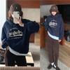 Letra a color contrastante estampado de pierna ancha en el pecho, la talla justa y muy de diseño