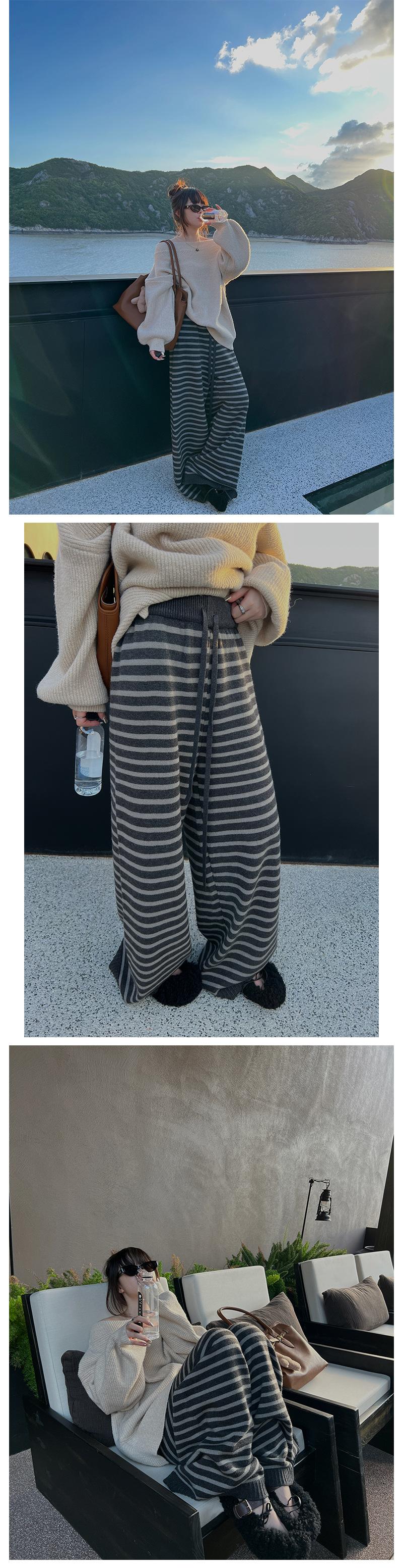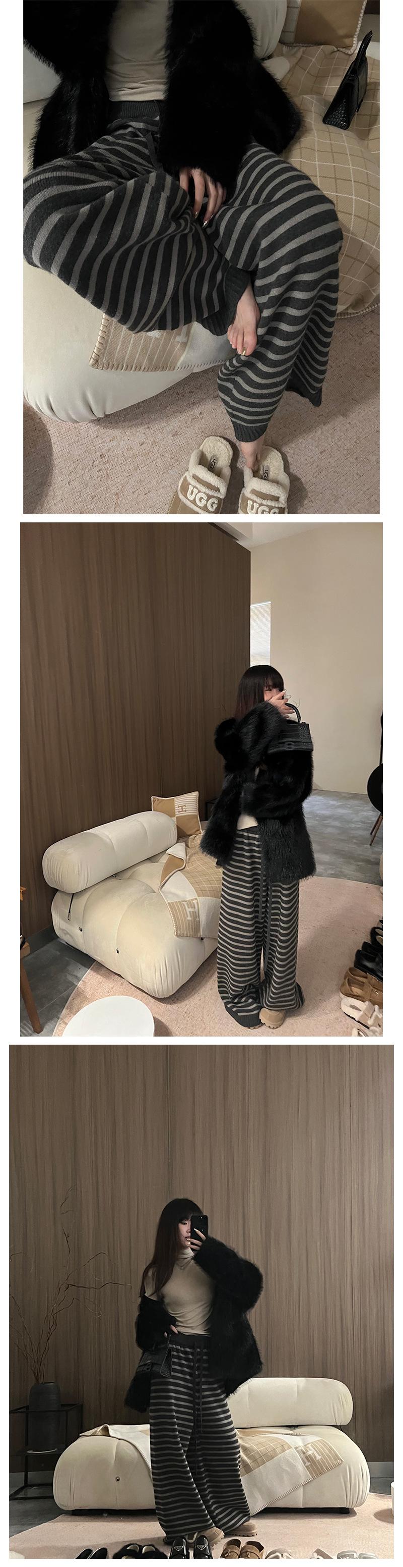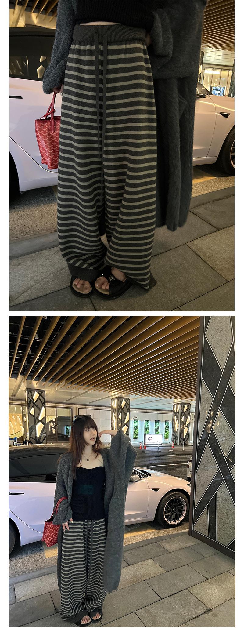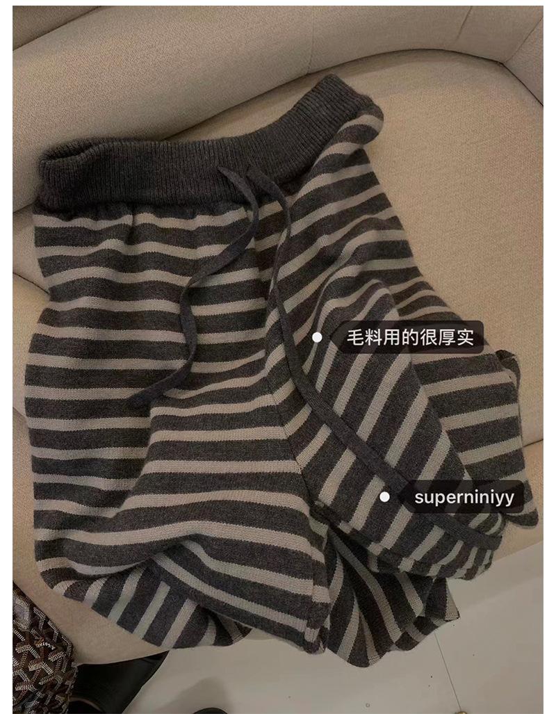 Pantalones gruesos y cálidos de lana a rayas, pantalones casuales de punto holgados y cómodos para mujer