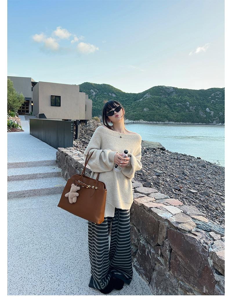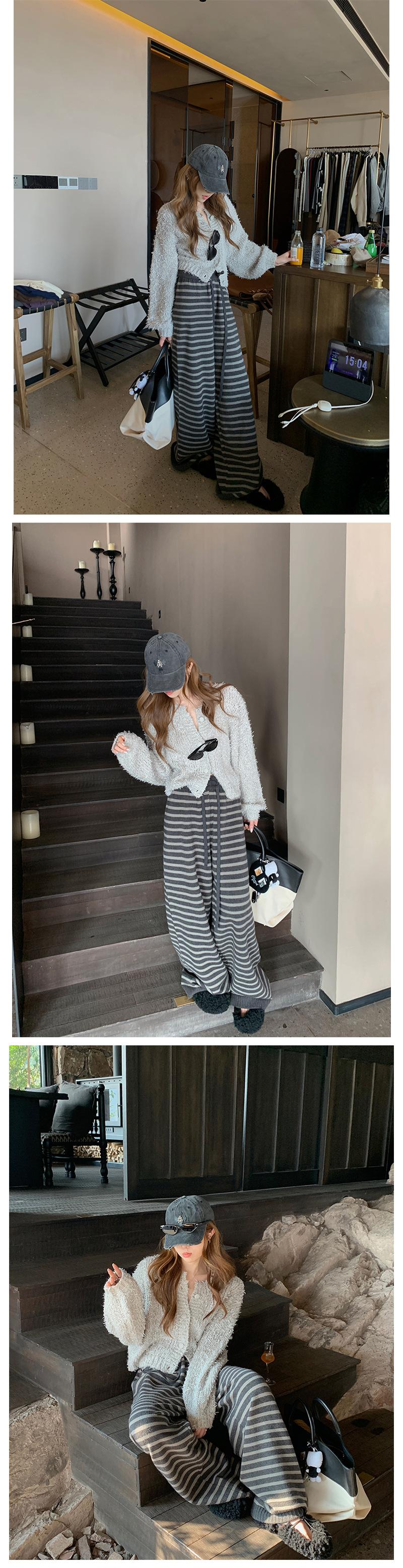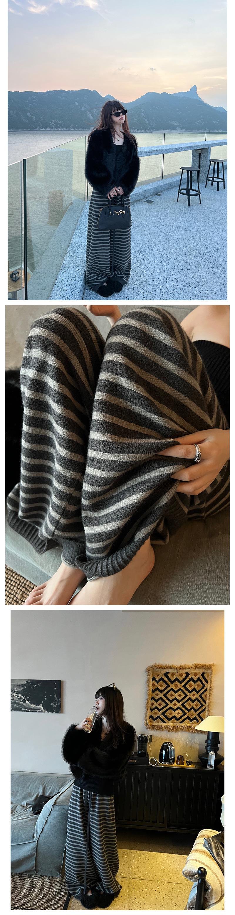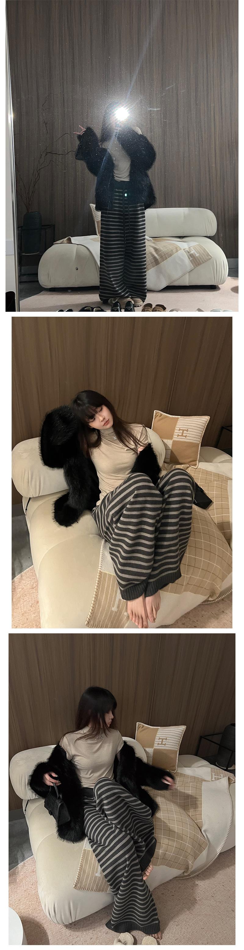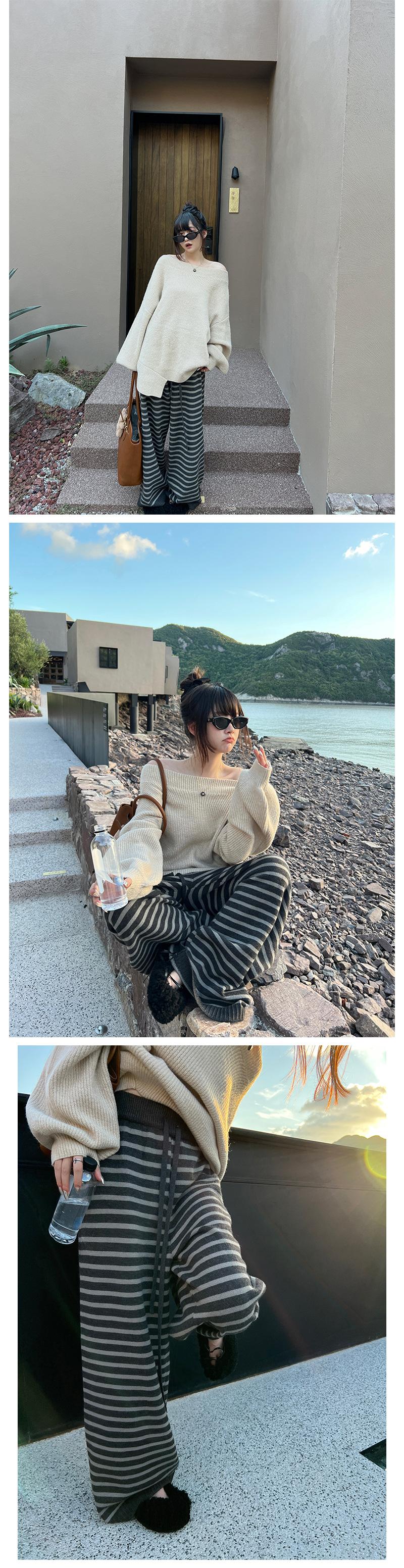 Pantalones gruesos y cálidos de lana a rayas, pantalones casuales de punto holgados y cómodos para mujer