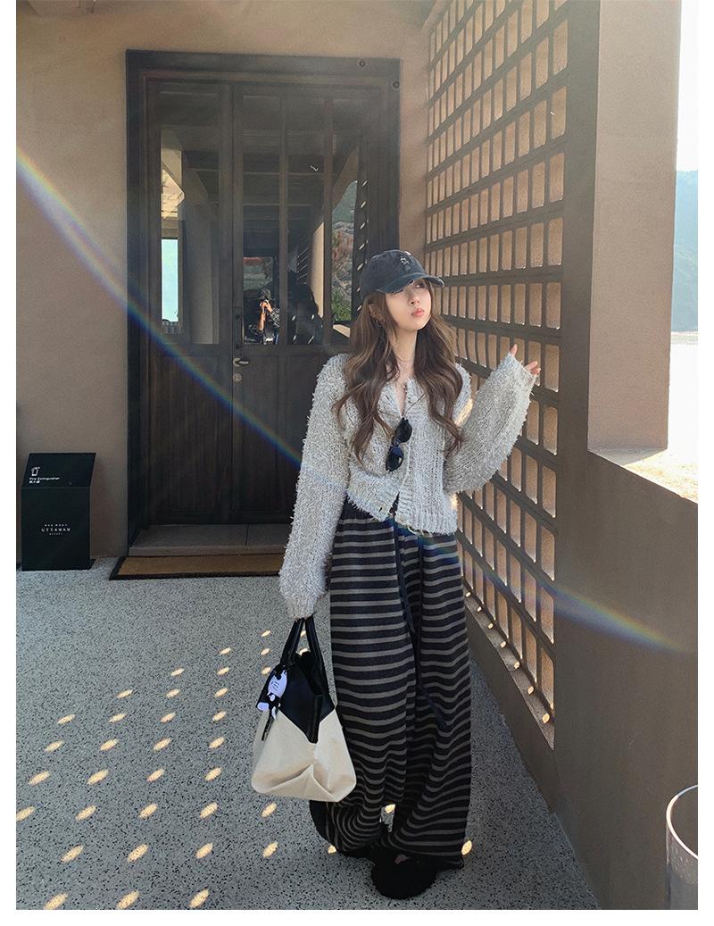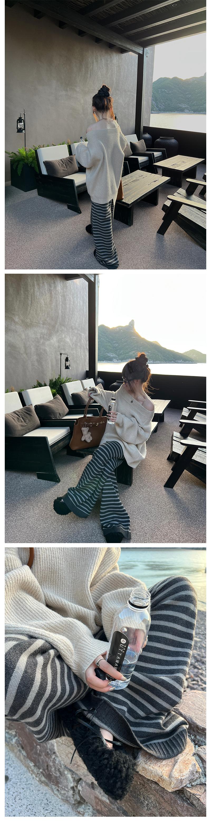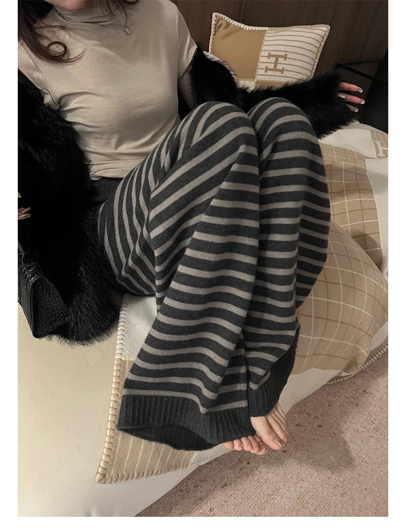 Pantalones de pierna recta a rayas de estilo perezoso para caminar, pantalones casuales adelgazantes y gruesos, pantalones de pierna ancha de punto para mujer, otoño e invierno