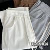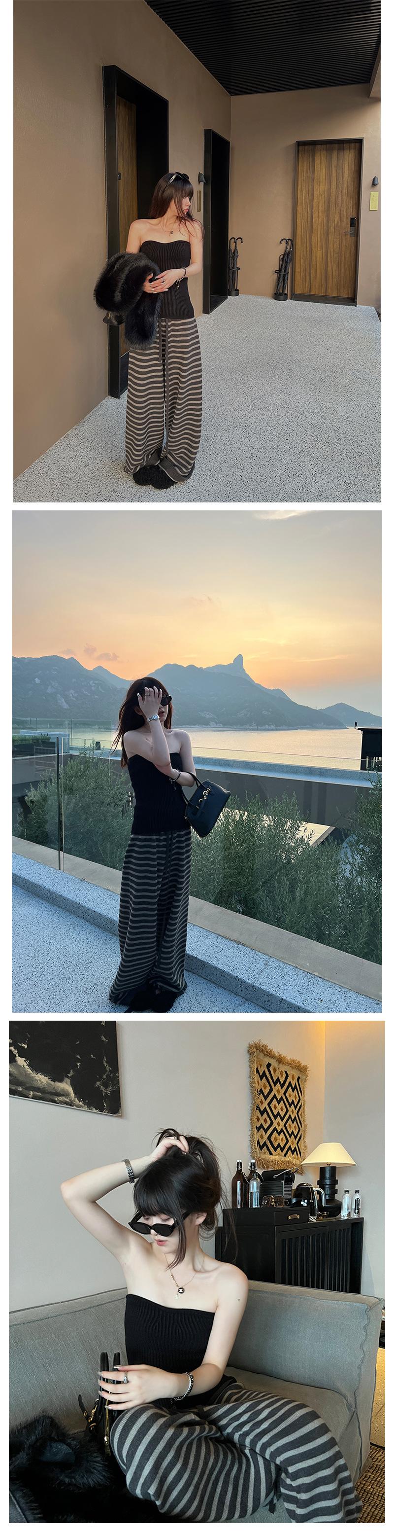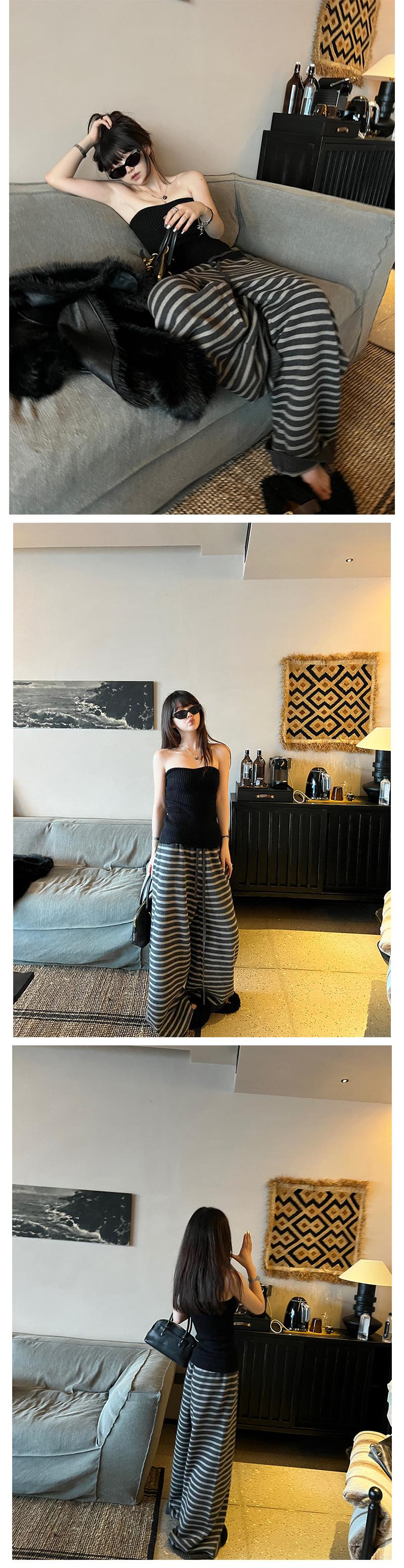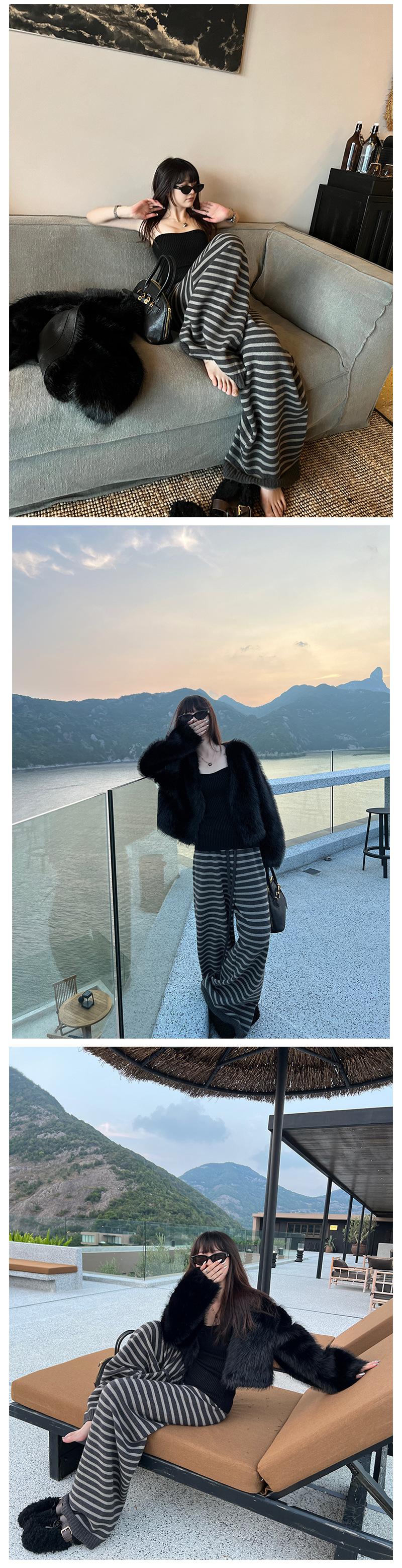 Pantalones de pierna recta a rayas de estilo perezoso para caminar, pantalones casuales adelgazantes y gruesos, pantalones de pierna ancha de punto para mujer, otoño e invierno