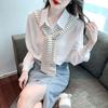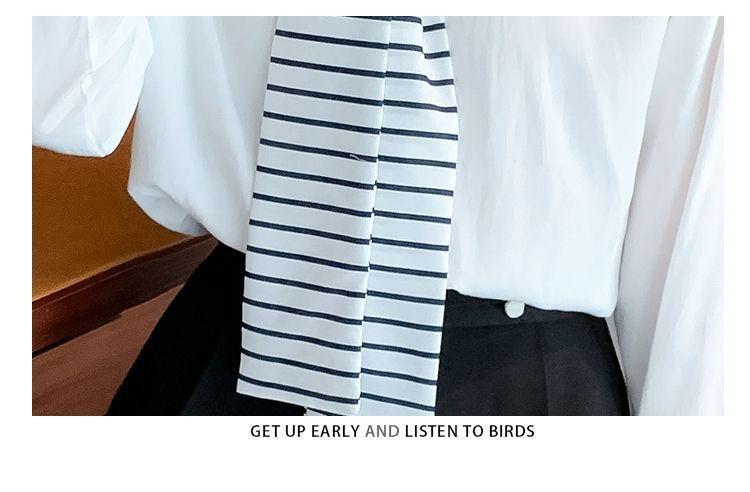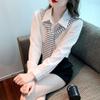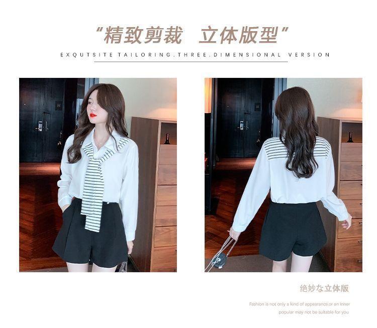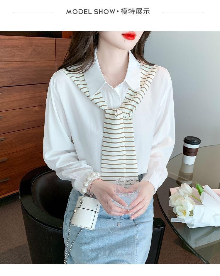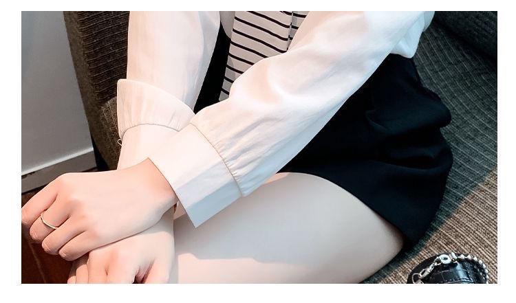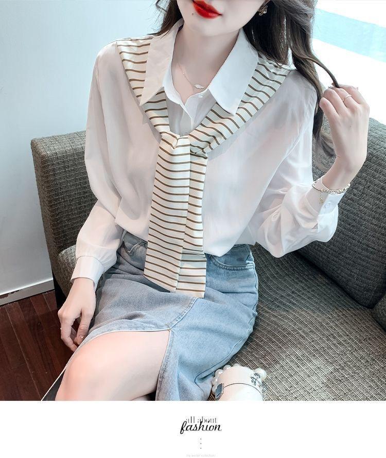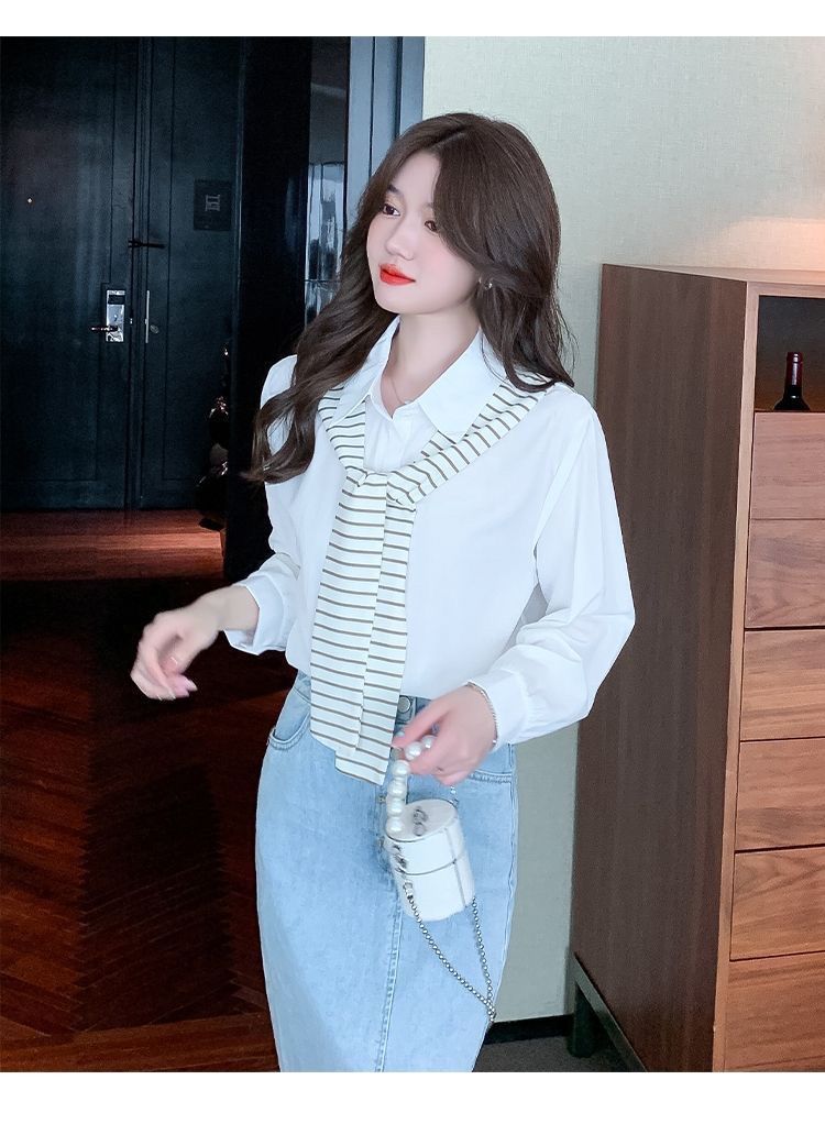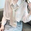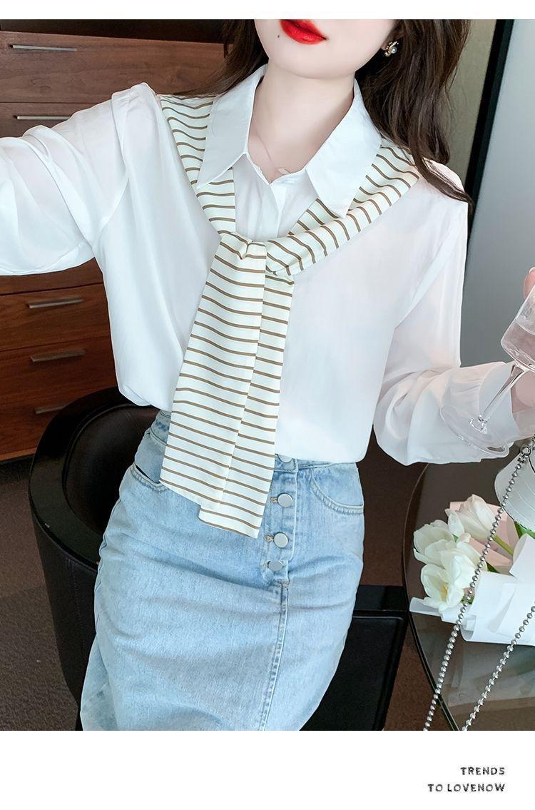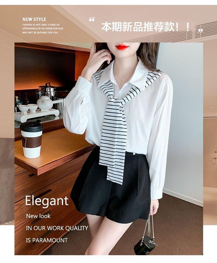 Camisa blanca de manga larga a rayas de dos piezas con chal falso para mujer, diseño de cárdigan con costuras nuevas de otoño, camisa pequeña Sense