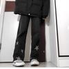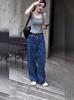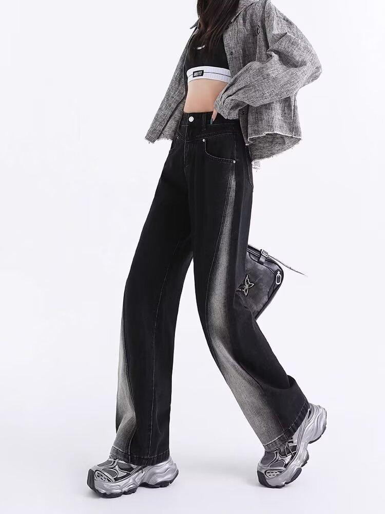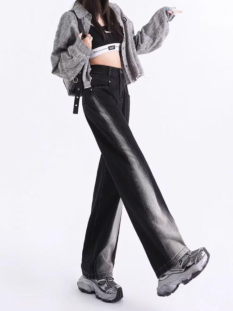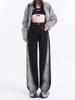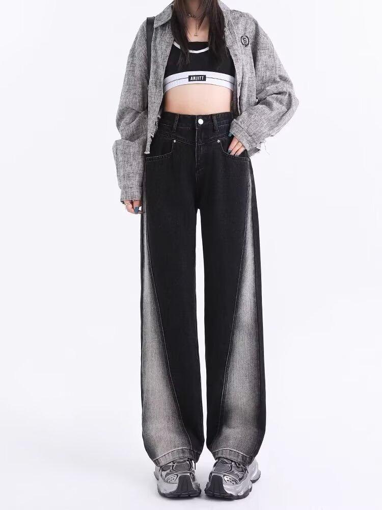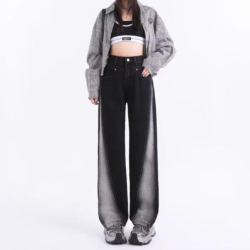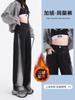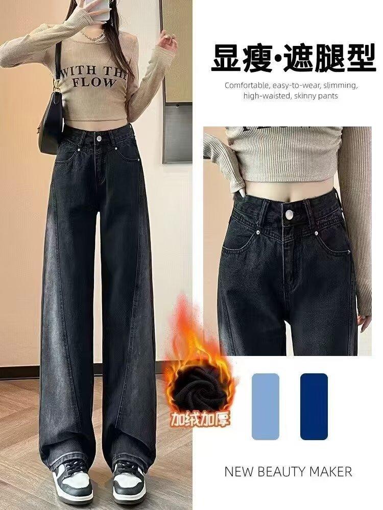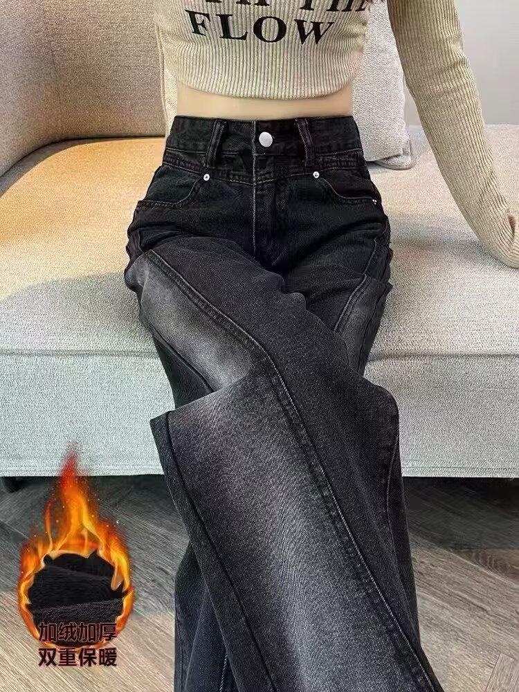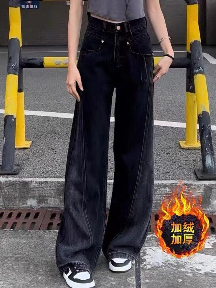 Vaqueros negros de pierna ancha para mujer, primavera y otoño, forrados de polar, tallas grandes, Chubby Sister mm, pantalones rectos adelgazantes de cintura alta con forma de pera