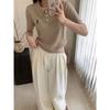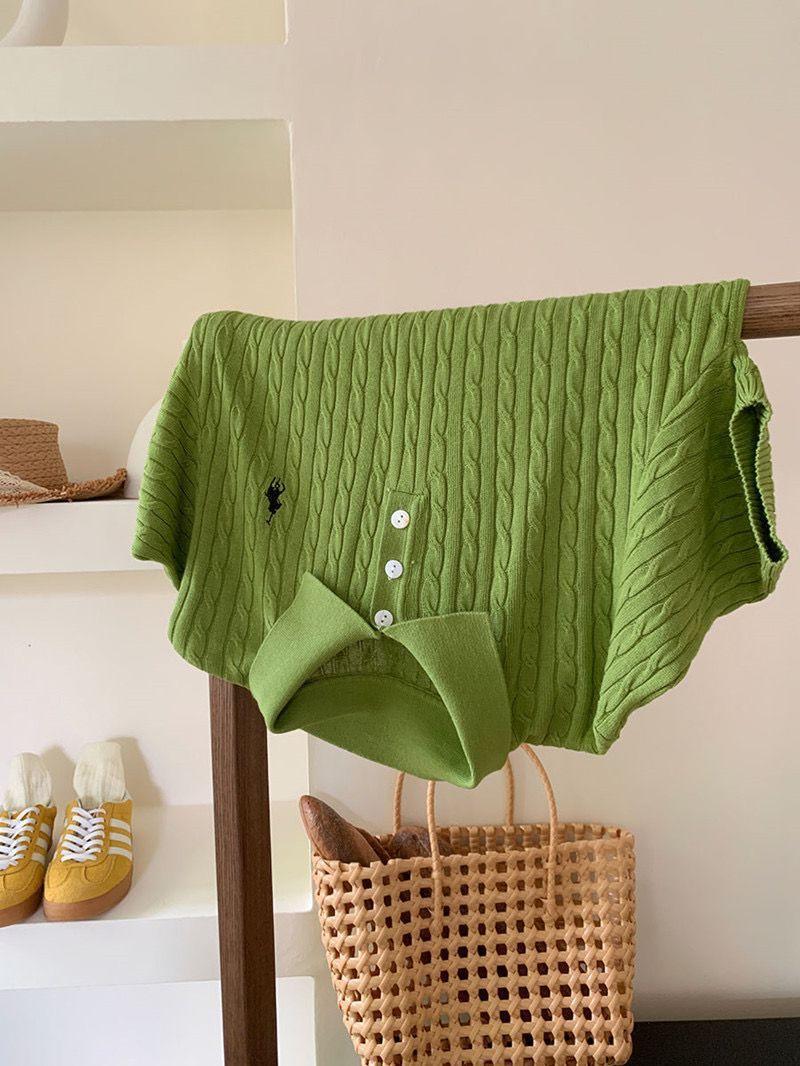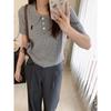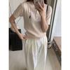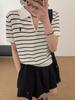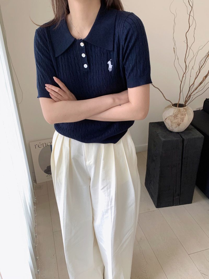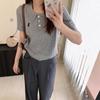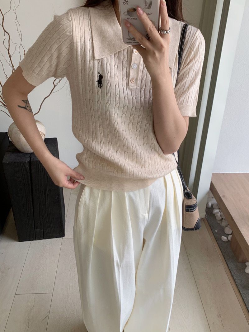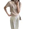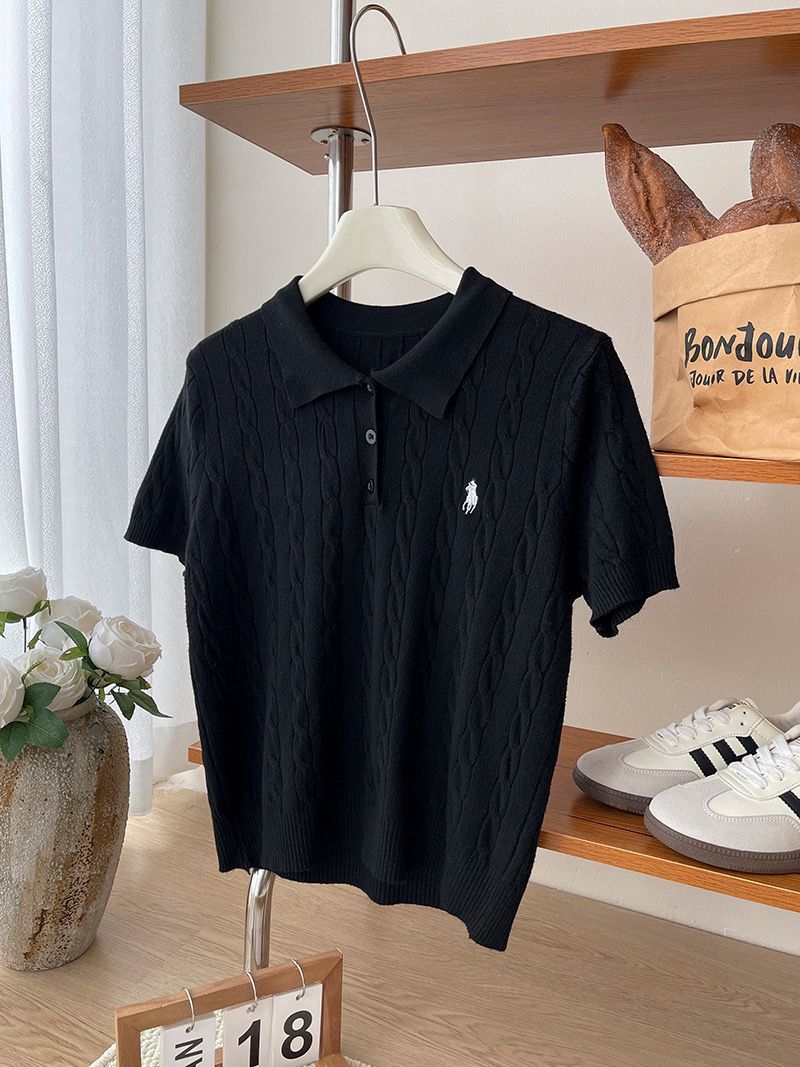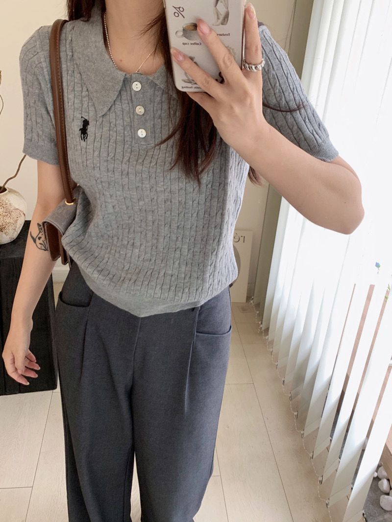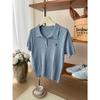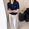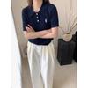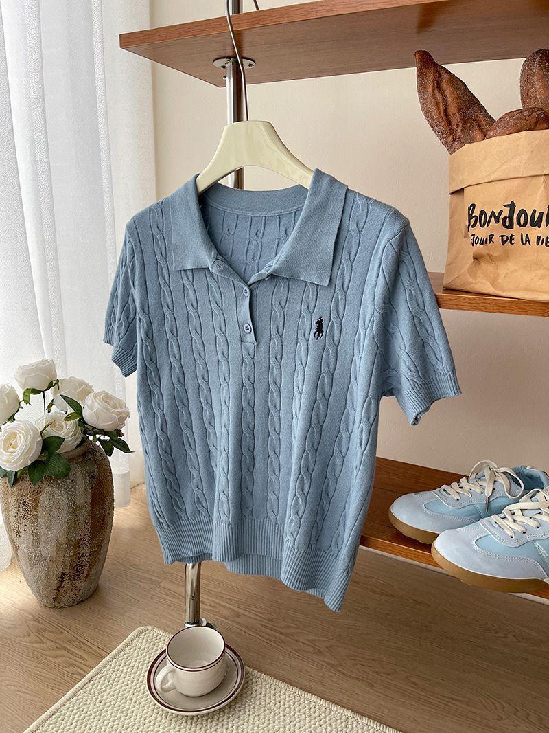 Fresca y Dulce Estilo Preppy Polo de Manga Corta Tejido de Punto Verano Nuevo Estilo Coreano Bordado Ajustado Camiseta Top para Mujer