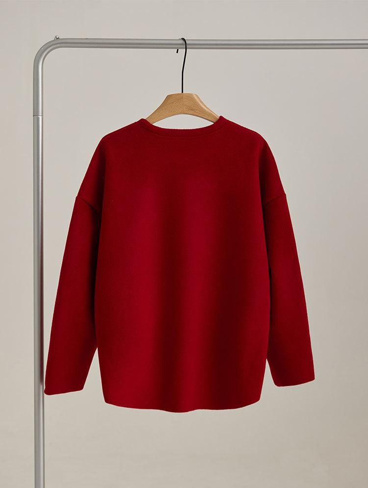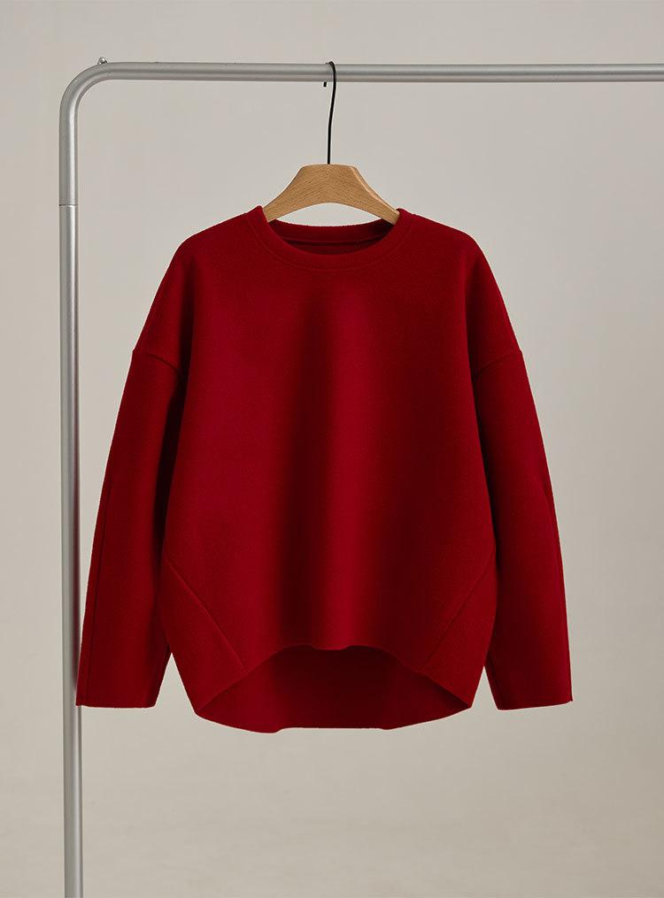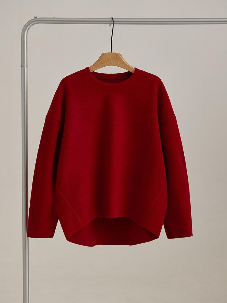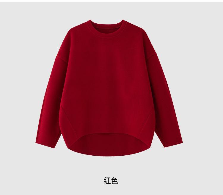 Sudadera sencilla de cuello redondo de Año Nuevo para mujer, de manga larga, de una pieza, casual, holgada, roja china, nueva de otoño e invierno, top de color puro