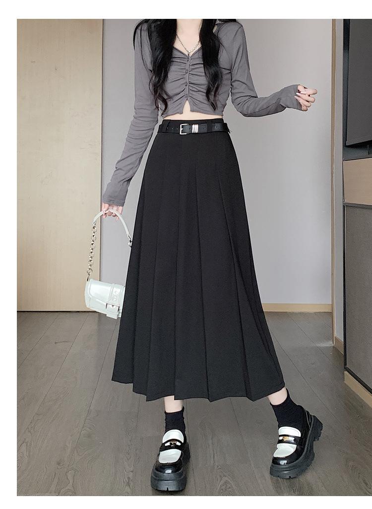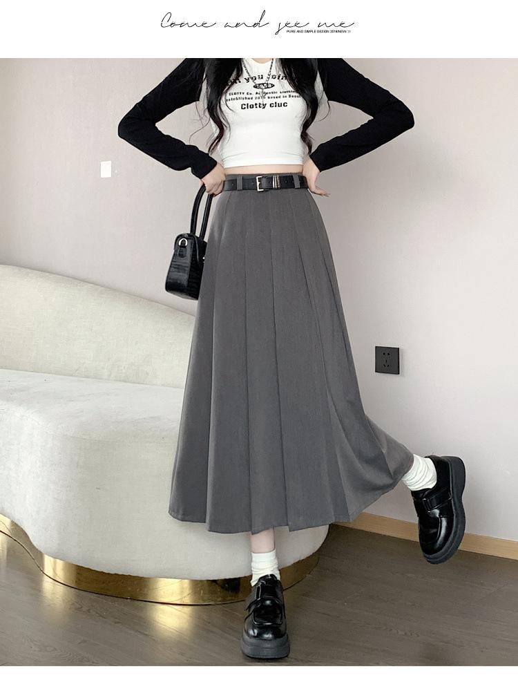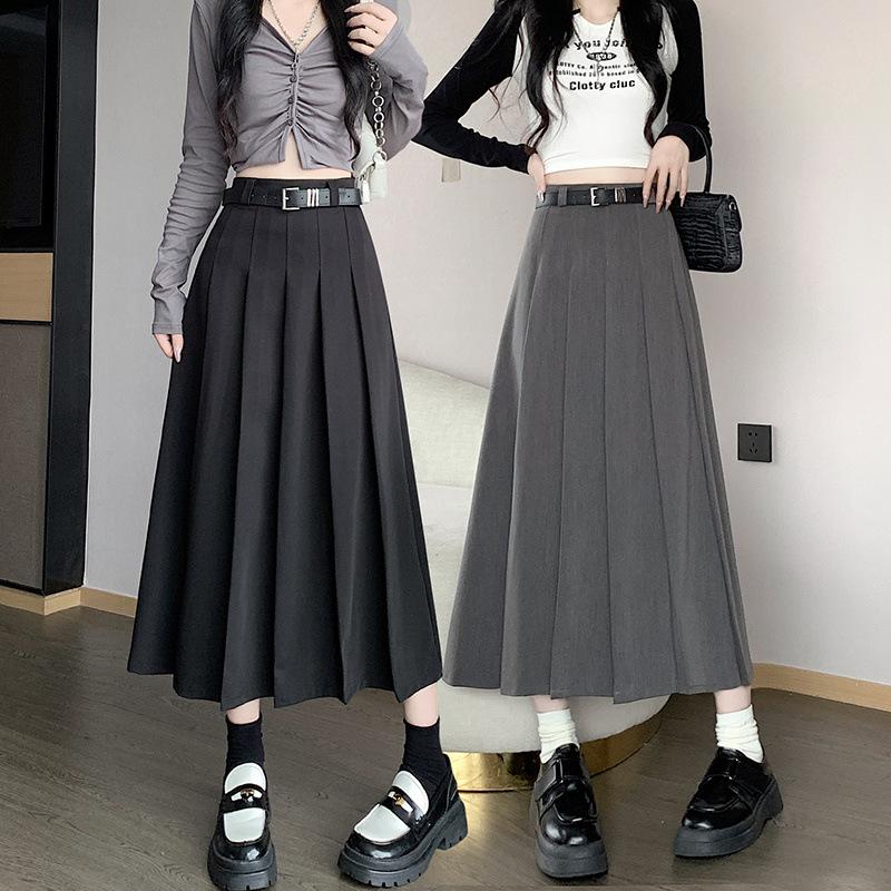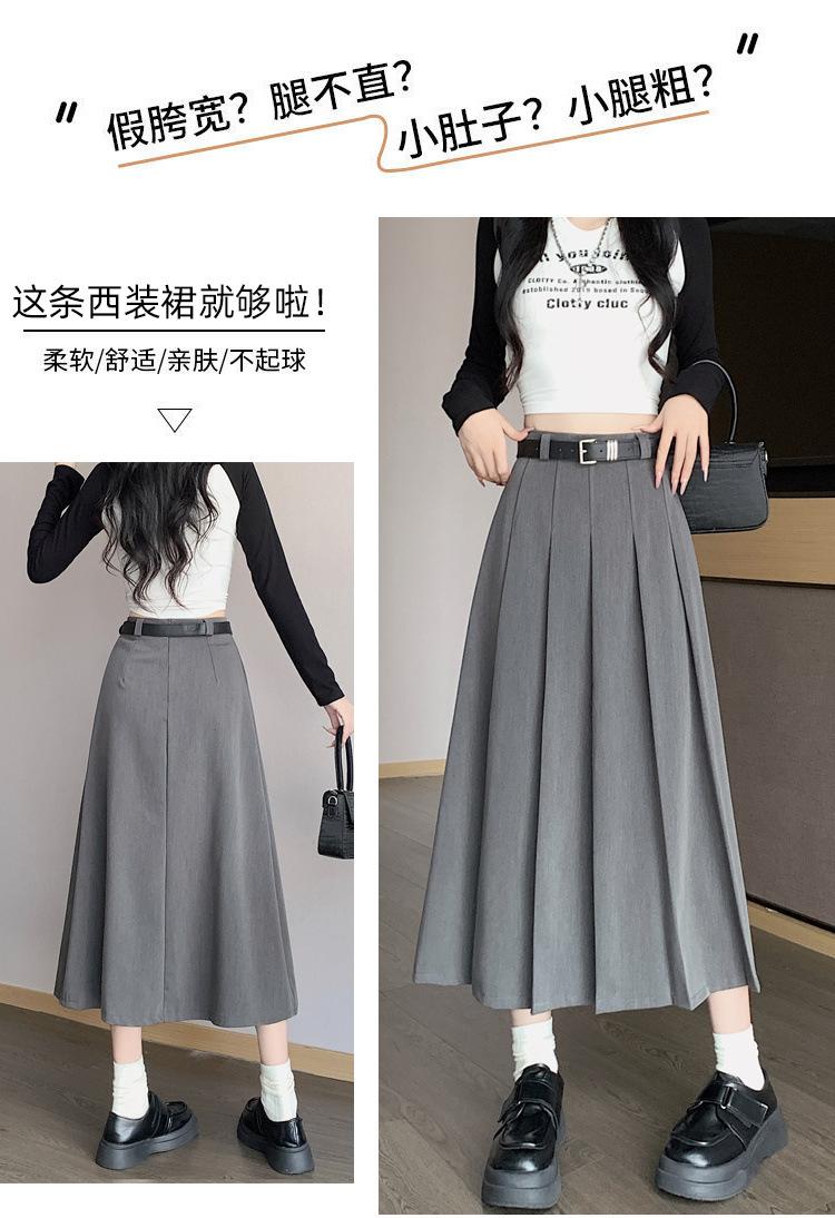 Otoño e Invierno Nuevo Falda Plisada Falda Paraguas Traje Falda Versátil Ropa Casual de Trabajo Falda Larga Falda de Color