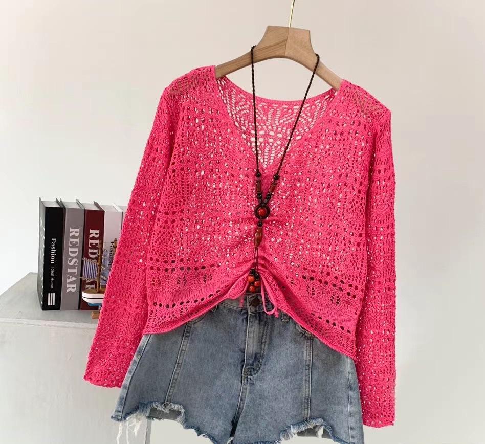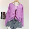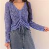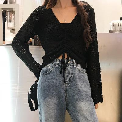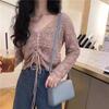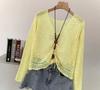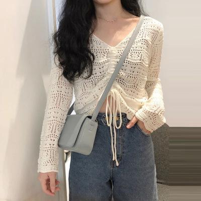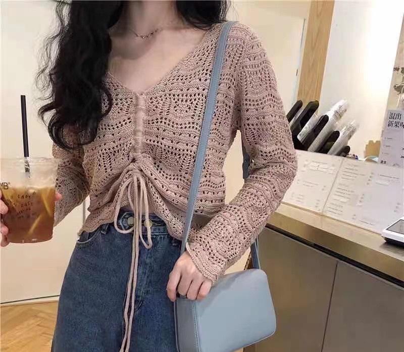 Suéter de Punto de Seda Helada de Estilo Suave Nuevo de Primavera y Otoño 2025 Top Corto con Cordón para Mujer Suéter Fino para Mujer Combinable