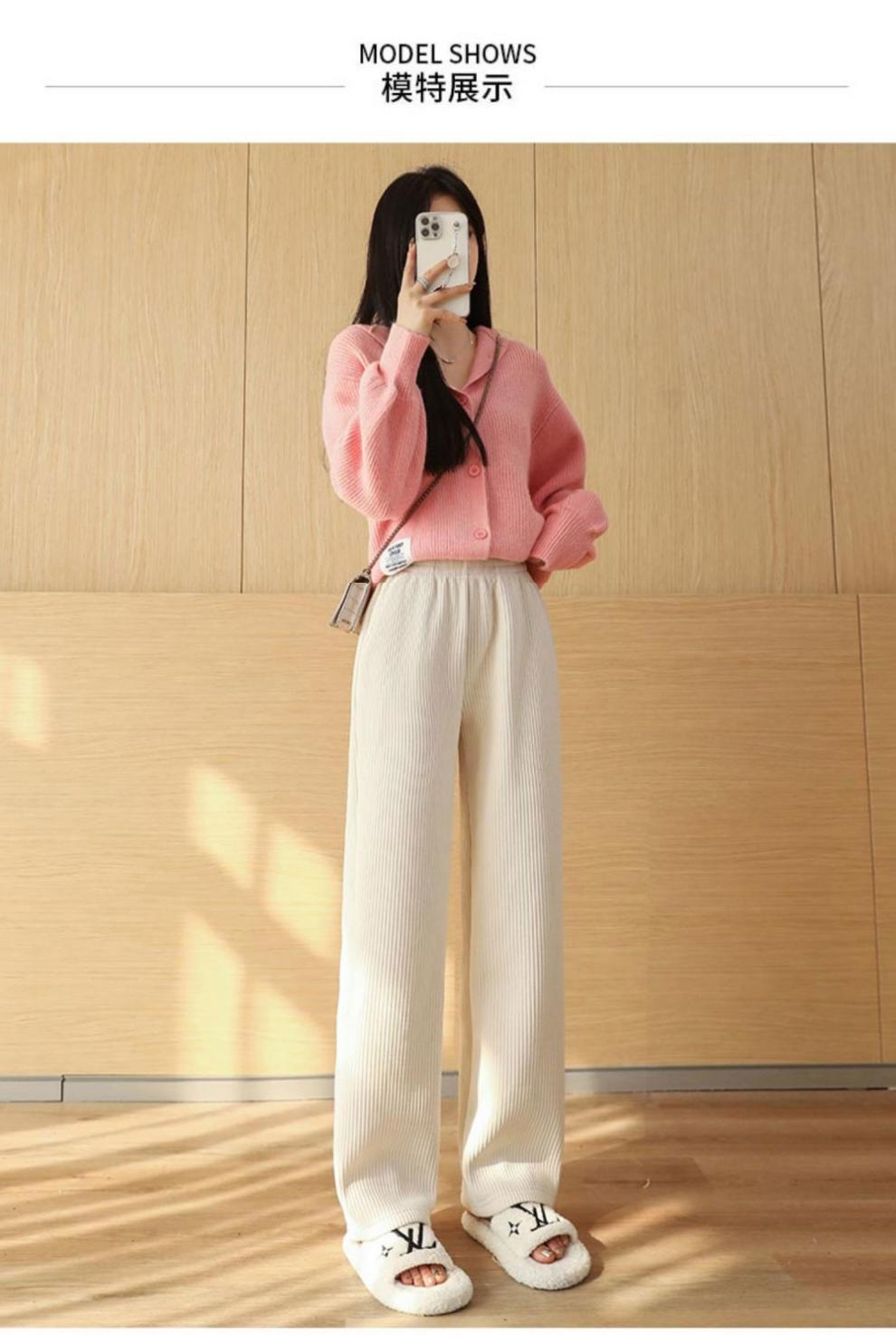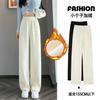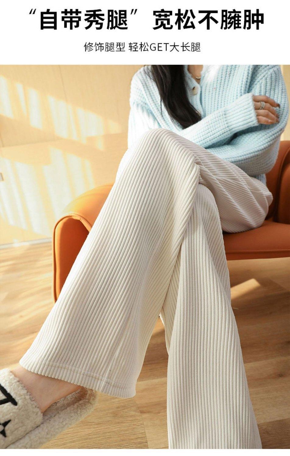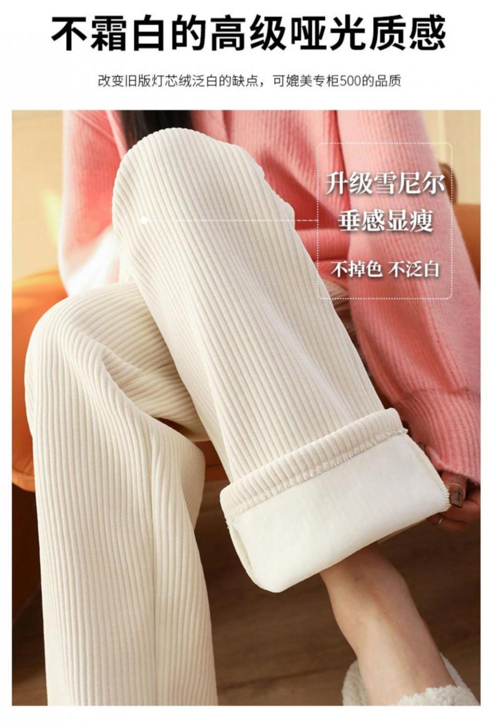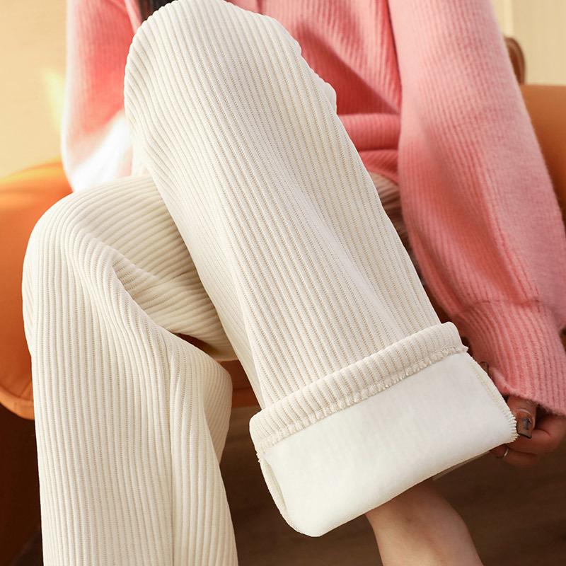 Pantalones de pana casuales blancos de otoño e invierno con forro polar, gruesos, de pierna ancha, cortos, rectos, holgados, combinan con todo para mujer
