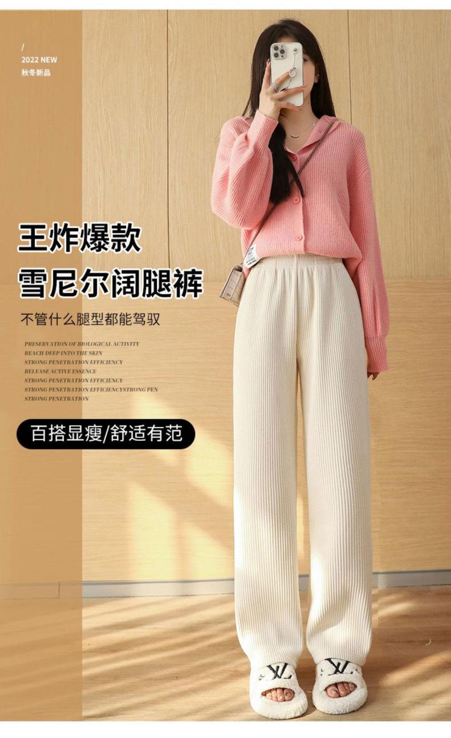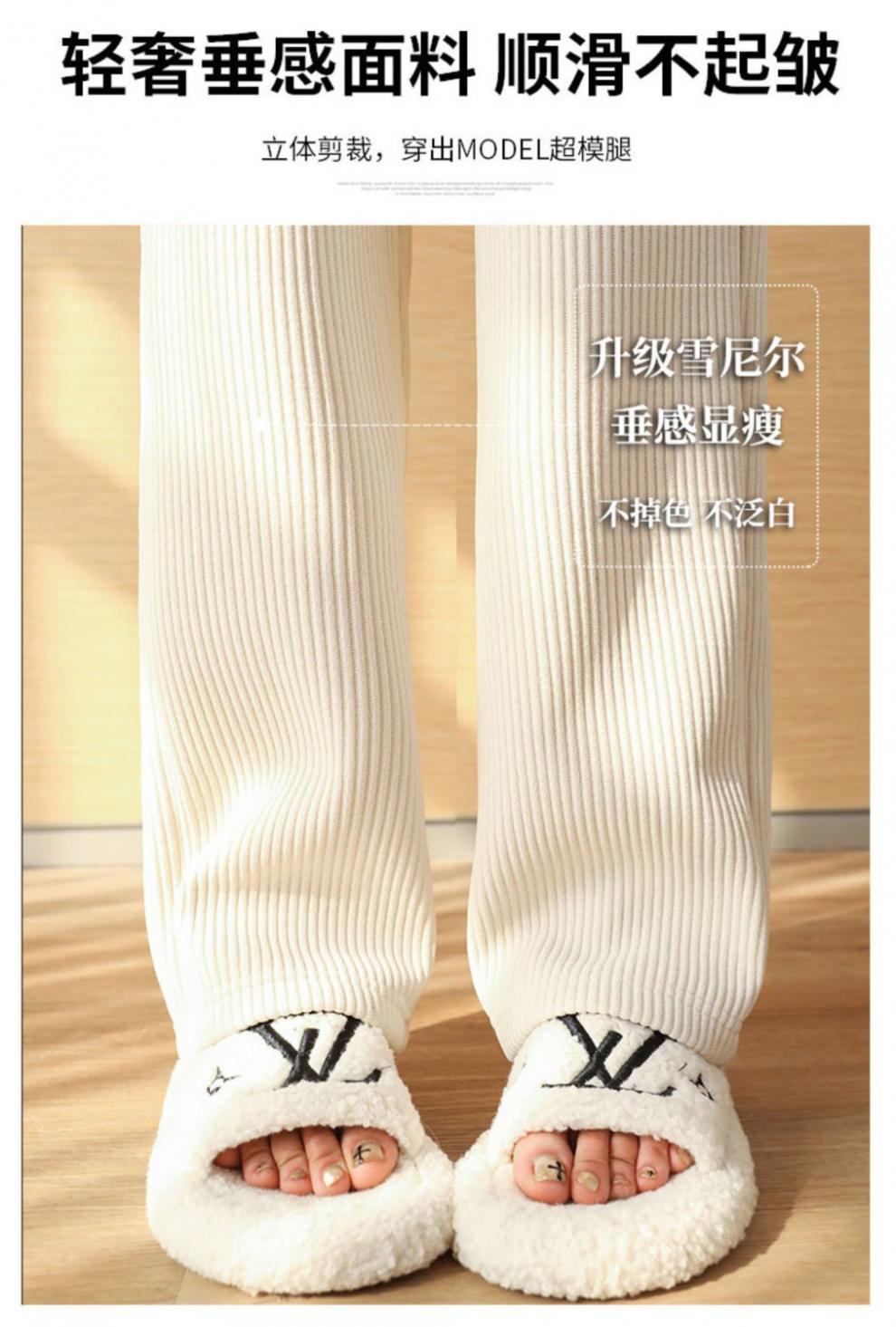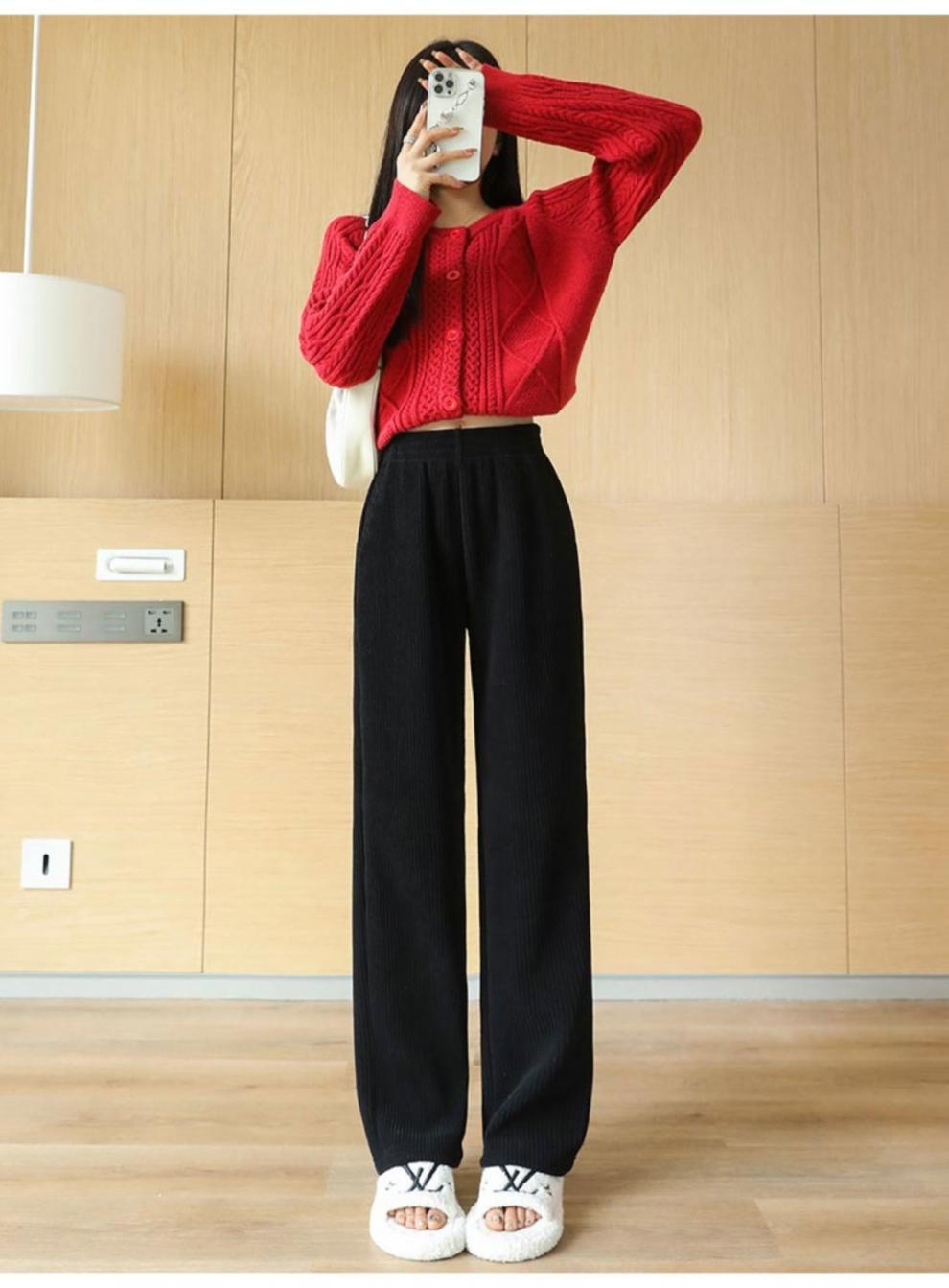 Pantalones de pana casuales blancos de otoño e invierno con forro polar, gruesos, de pierna ancha, cortos, rectos, holgados, combinan con todo para mujer