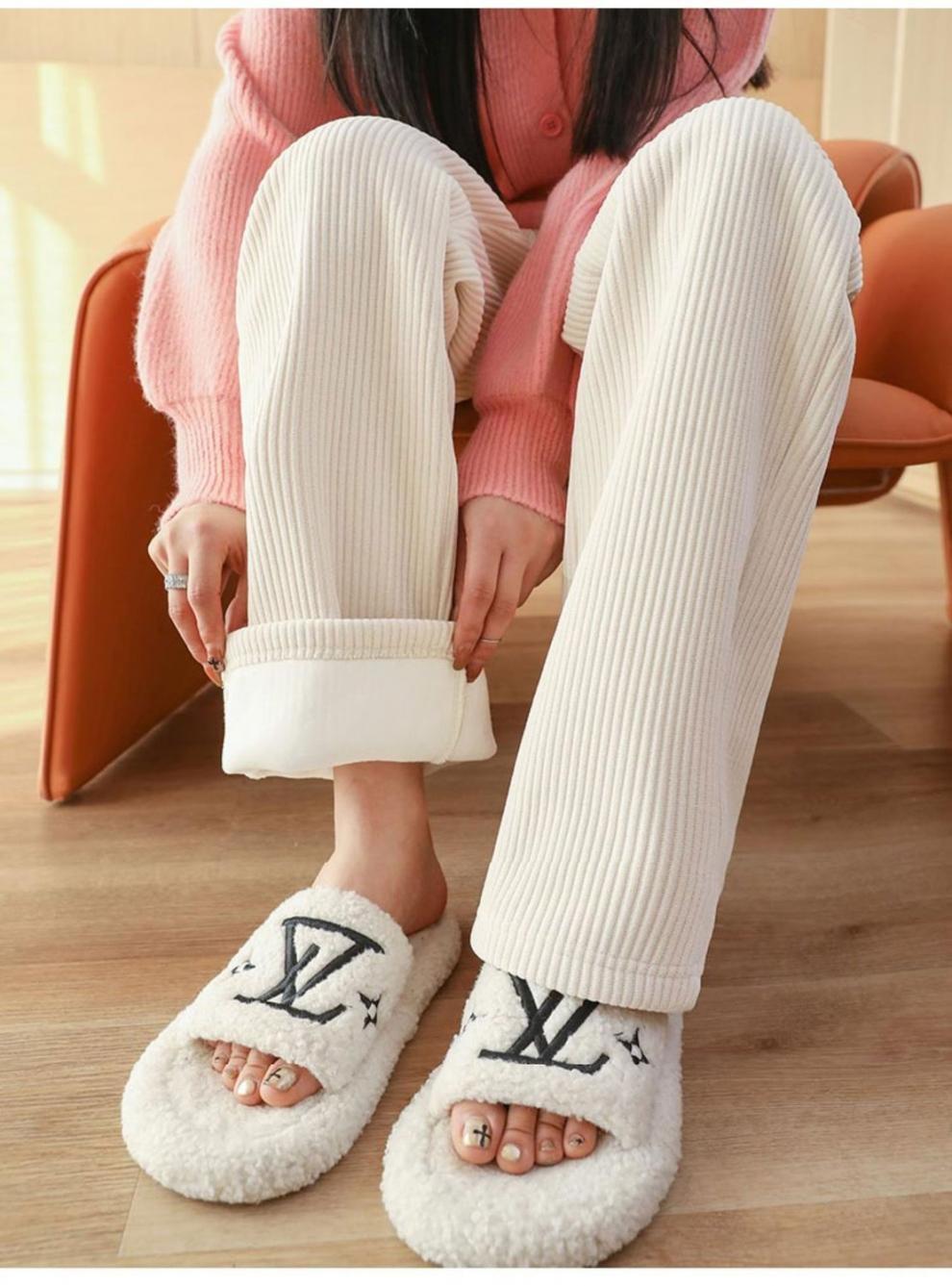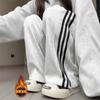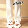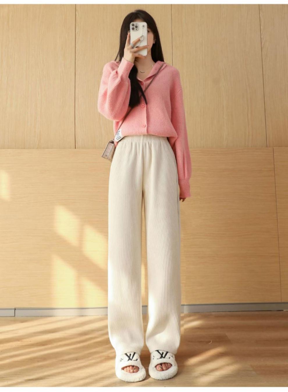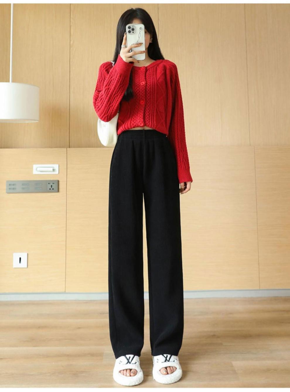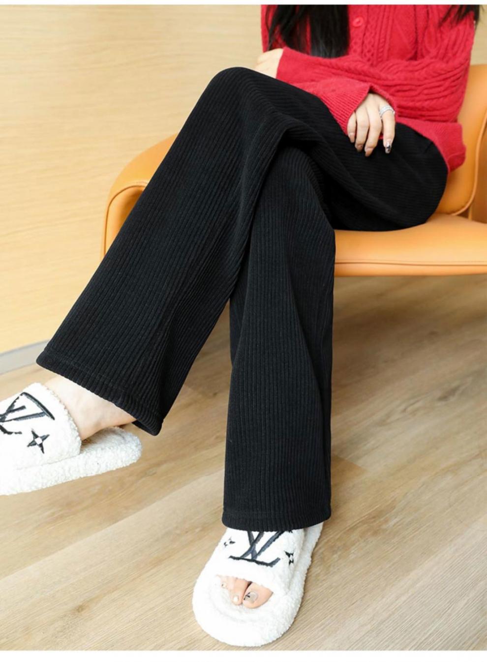 Pantalones de pana casuales blancos de otoño e invierno con forro polar, gruesos, de pierna ancha, cortos, rectos, holgados, combinan con todo para mujer