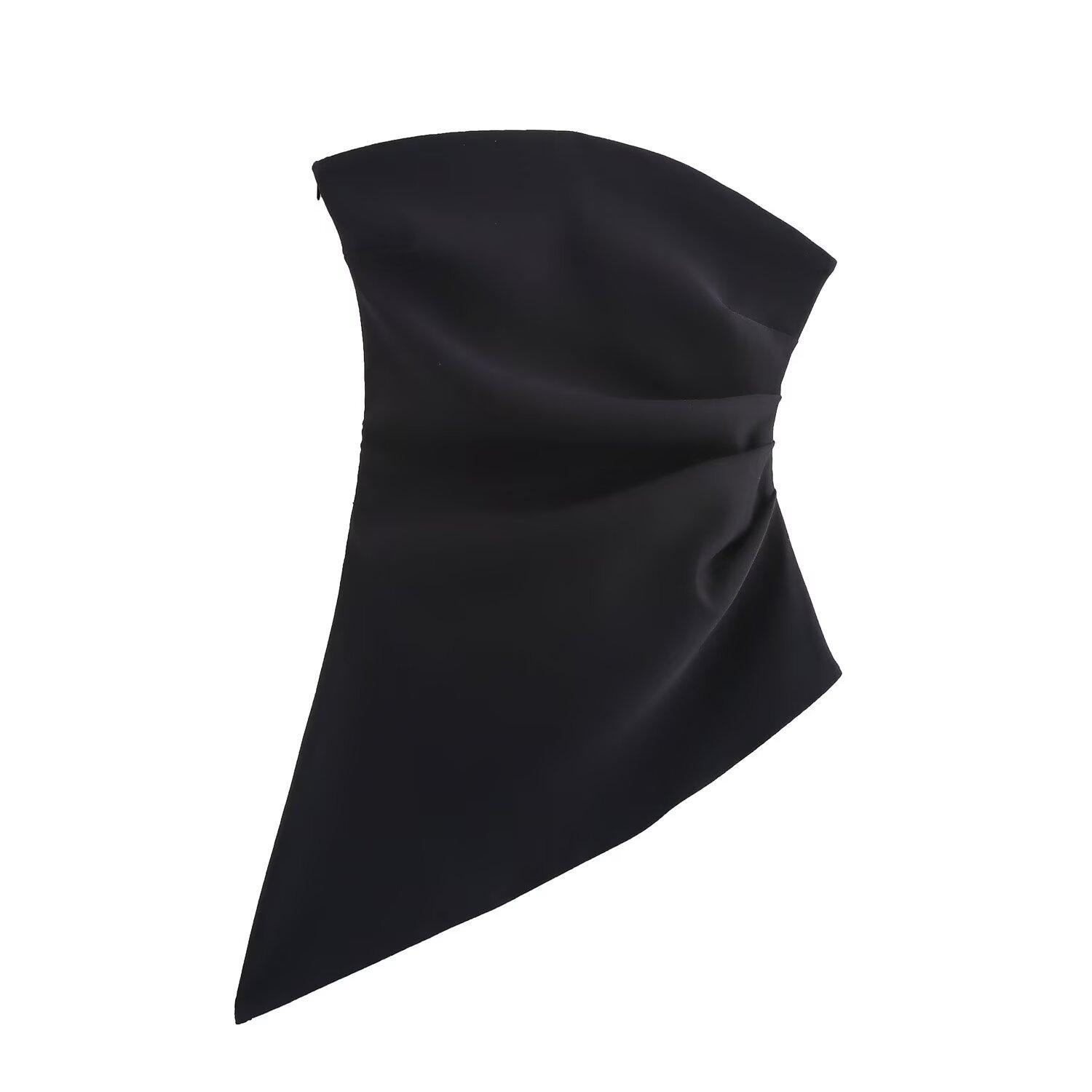 2025 Primavera Nuevo Ropa de Mujer Transfronteriza Europea y Americana Diseño de Moda Urbana Top Asimétrico Plisado w103 8531