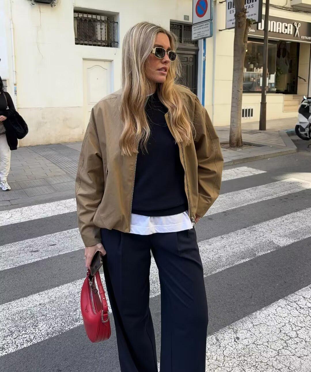Ropa de mujer de comercio exterior 2024 venta al por mayor de fábrica transfronteriza moda europea y americana calle ocio al aire libre cortavientos chaqueta voladora abrigo