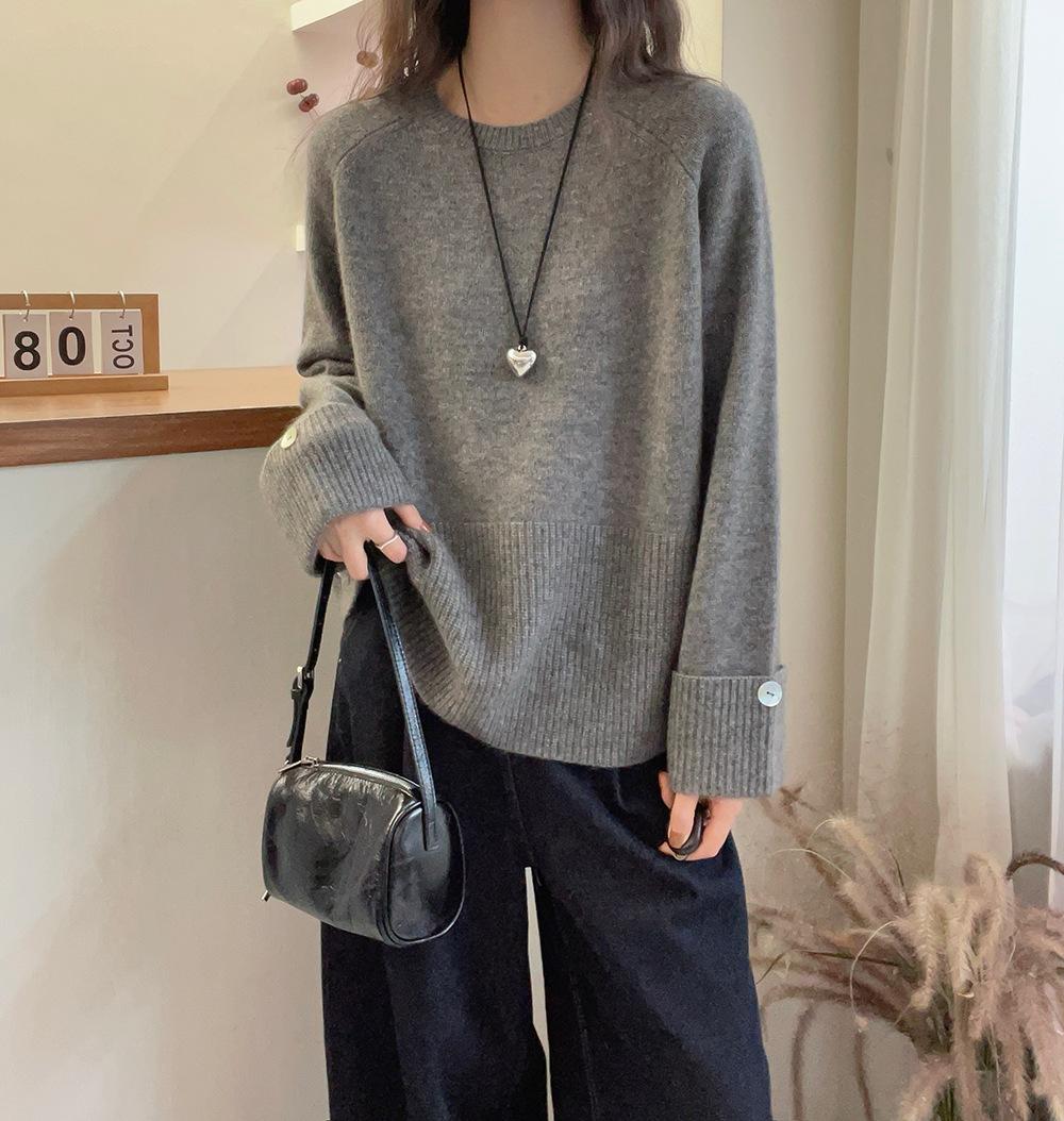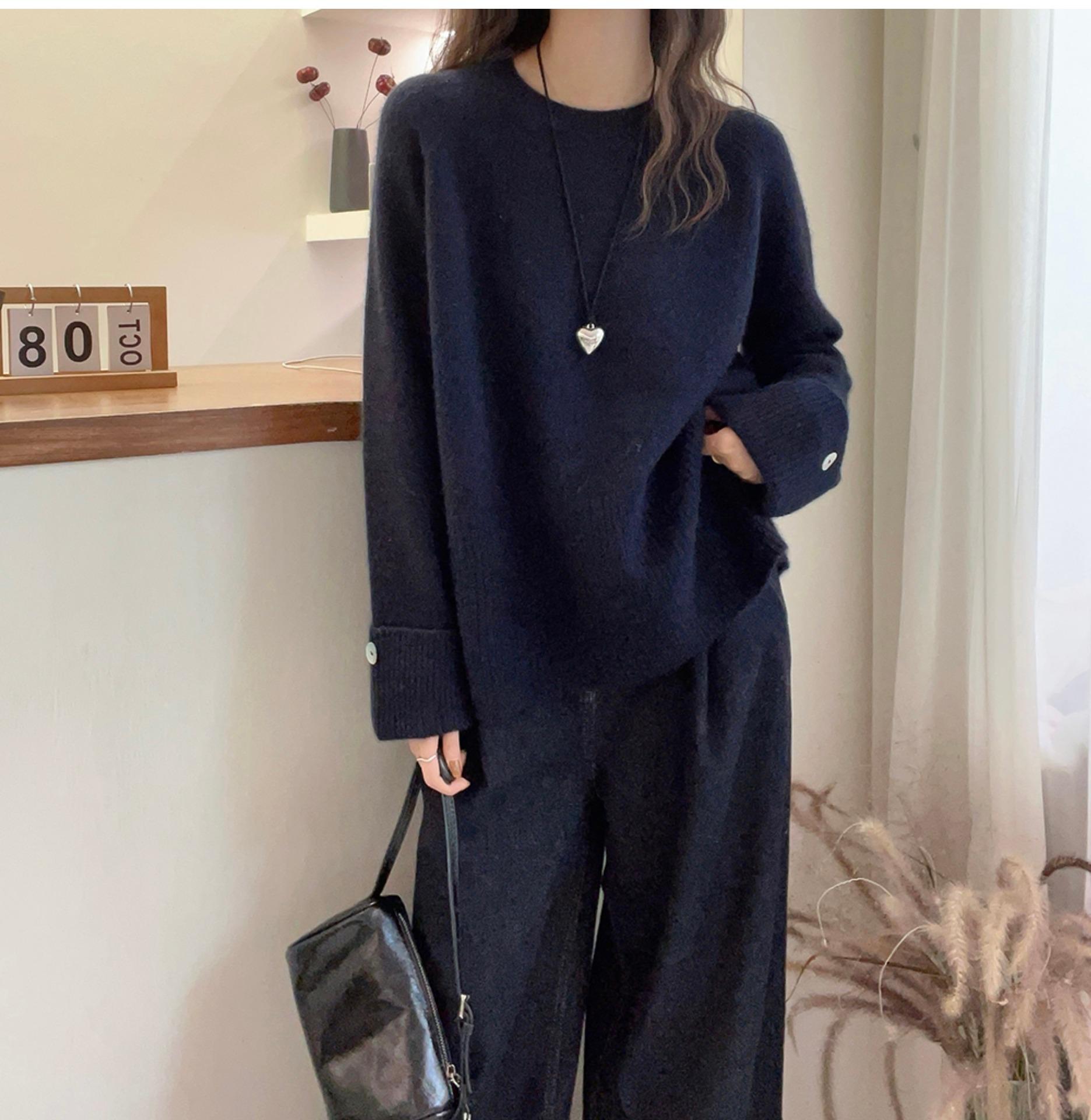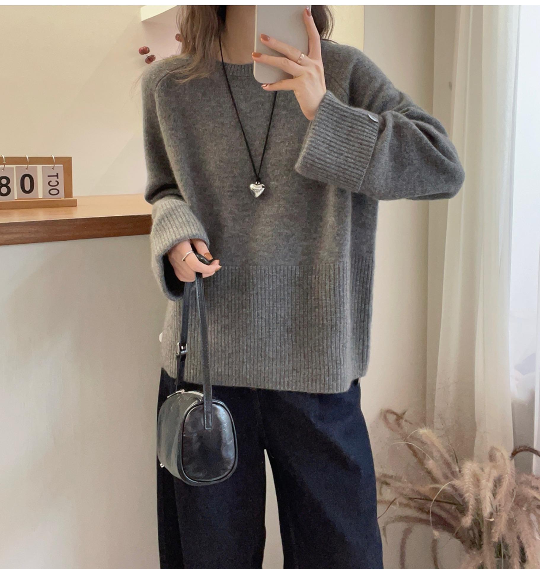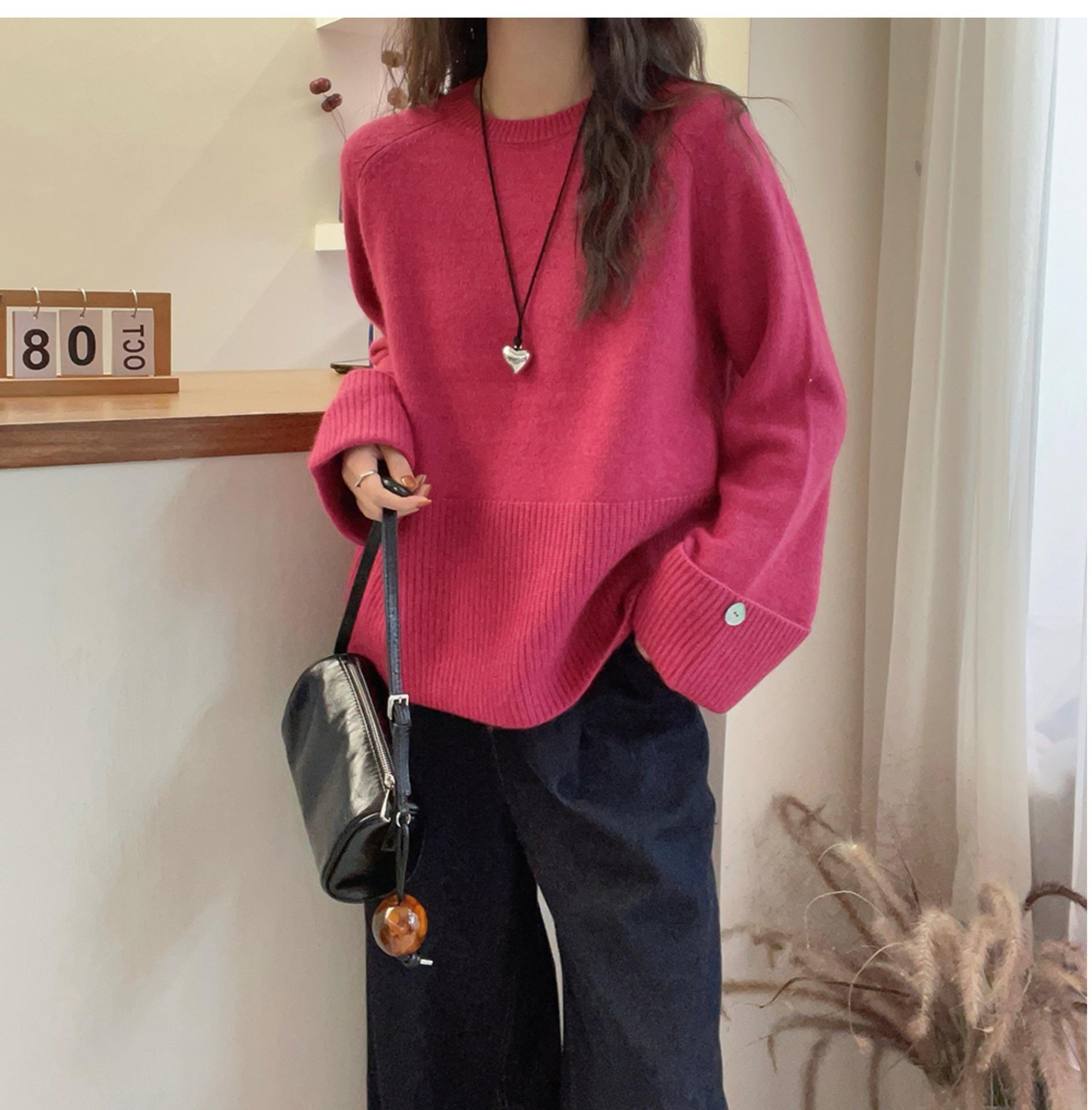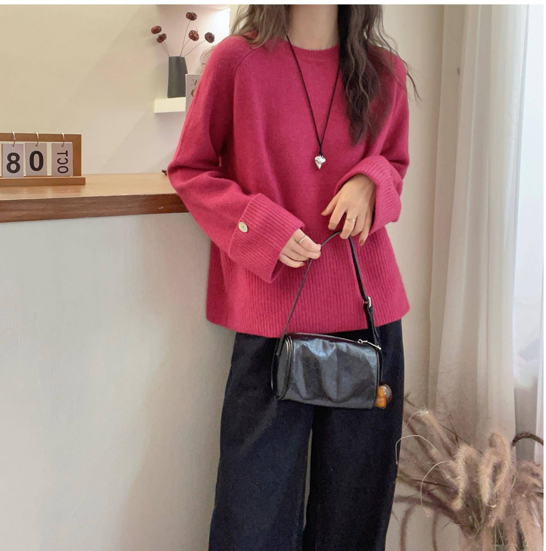 Cárdigan Rojo Rosa Otoño e Invierno 2025 para Mujer Europeo Cuello Redondo Suelto Cachemira Holgazán Otoño e Invierno Suéter de Punto para Fondo