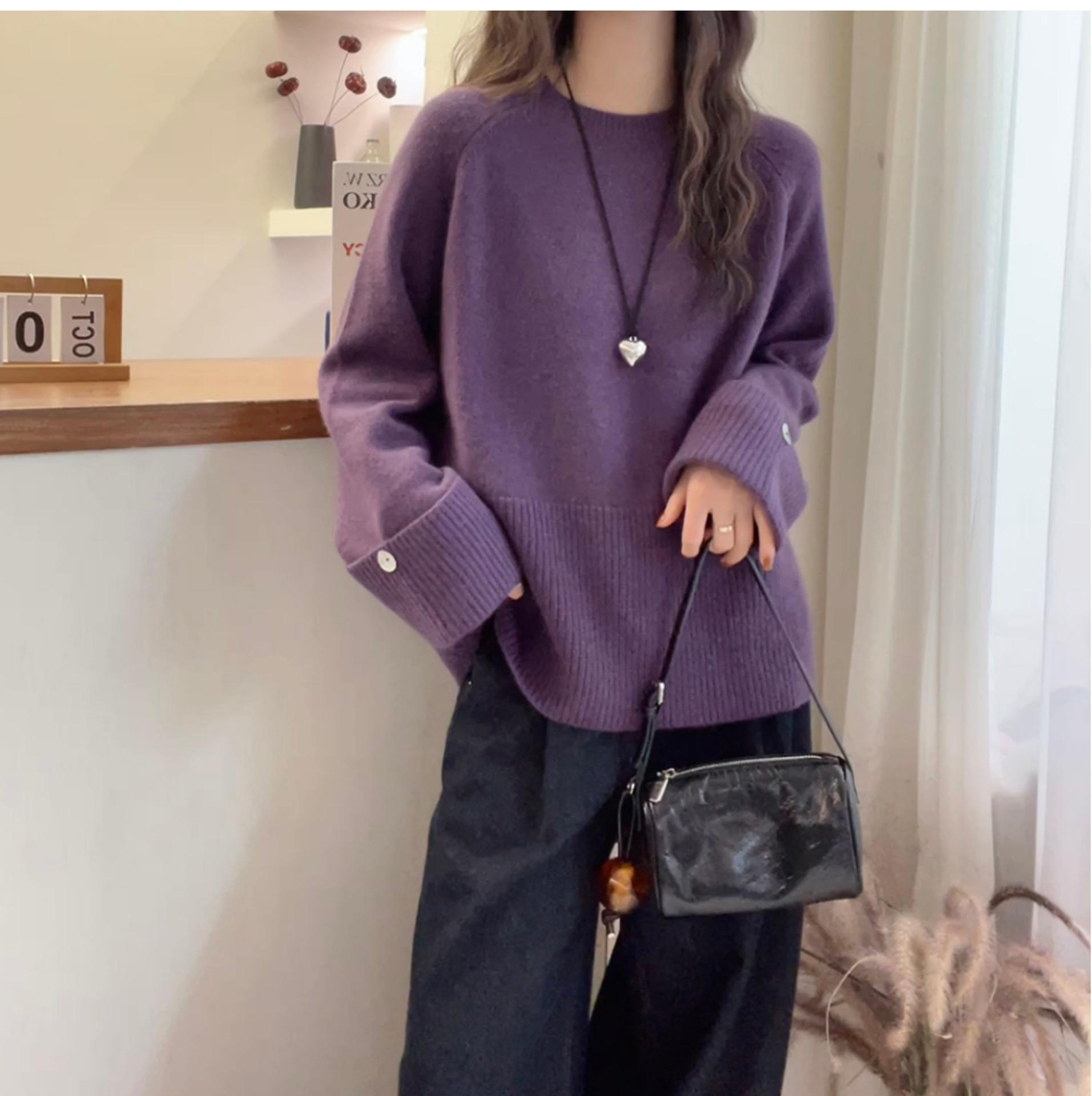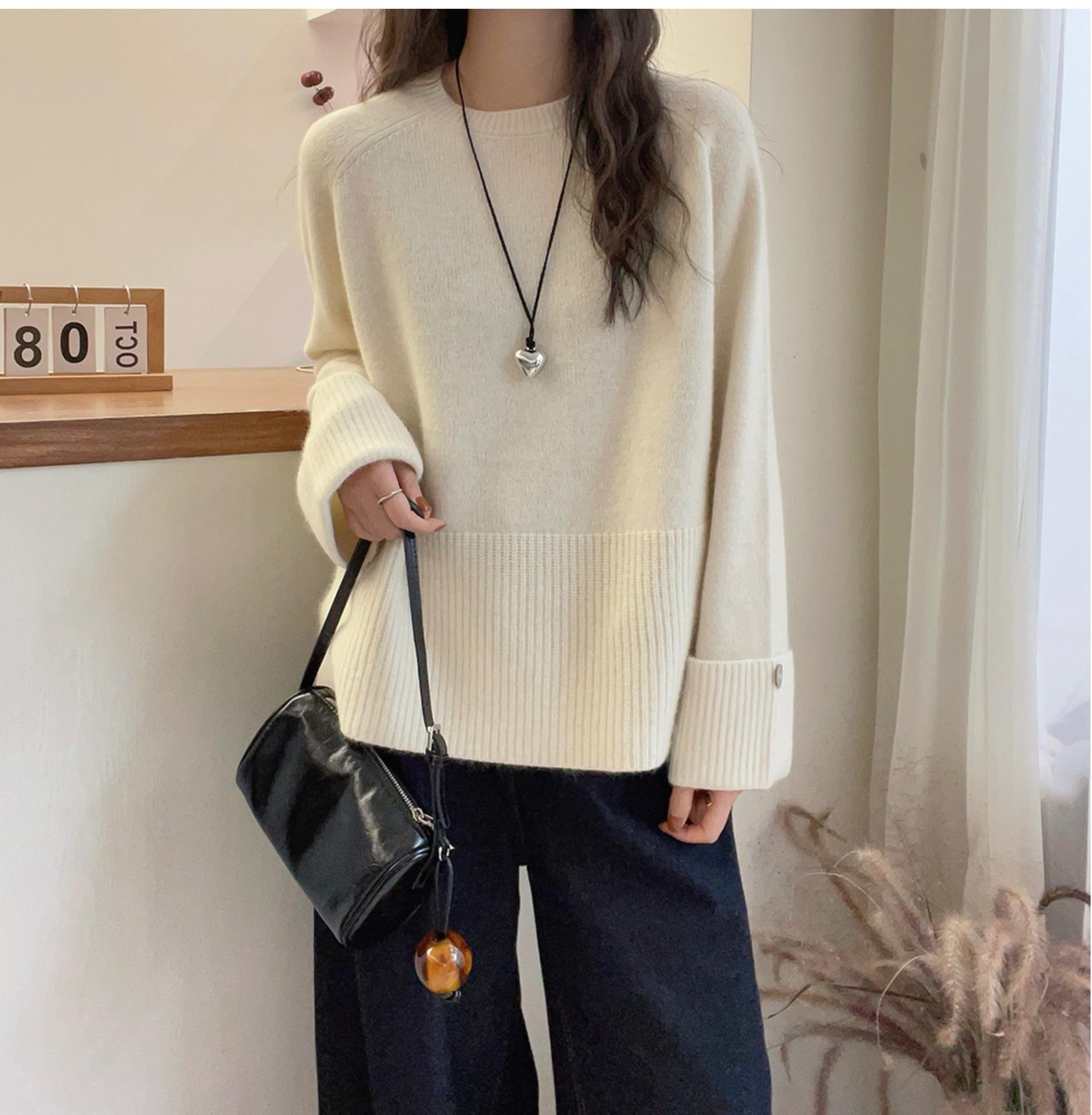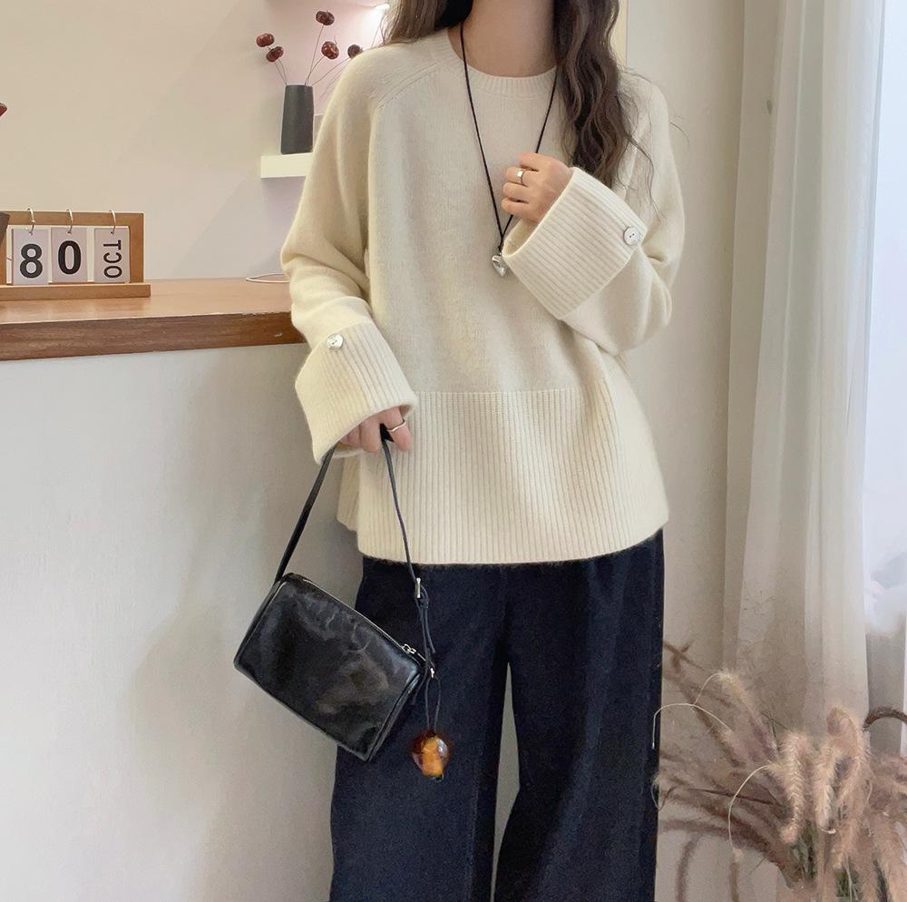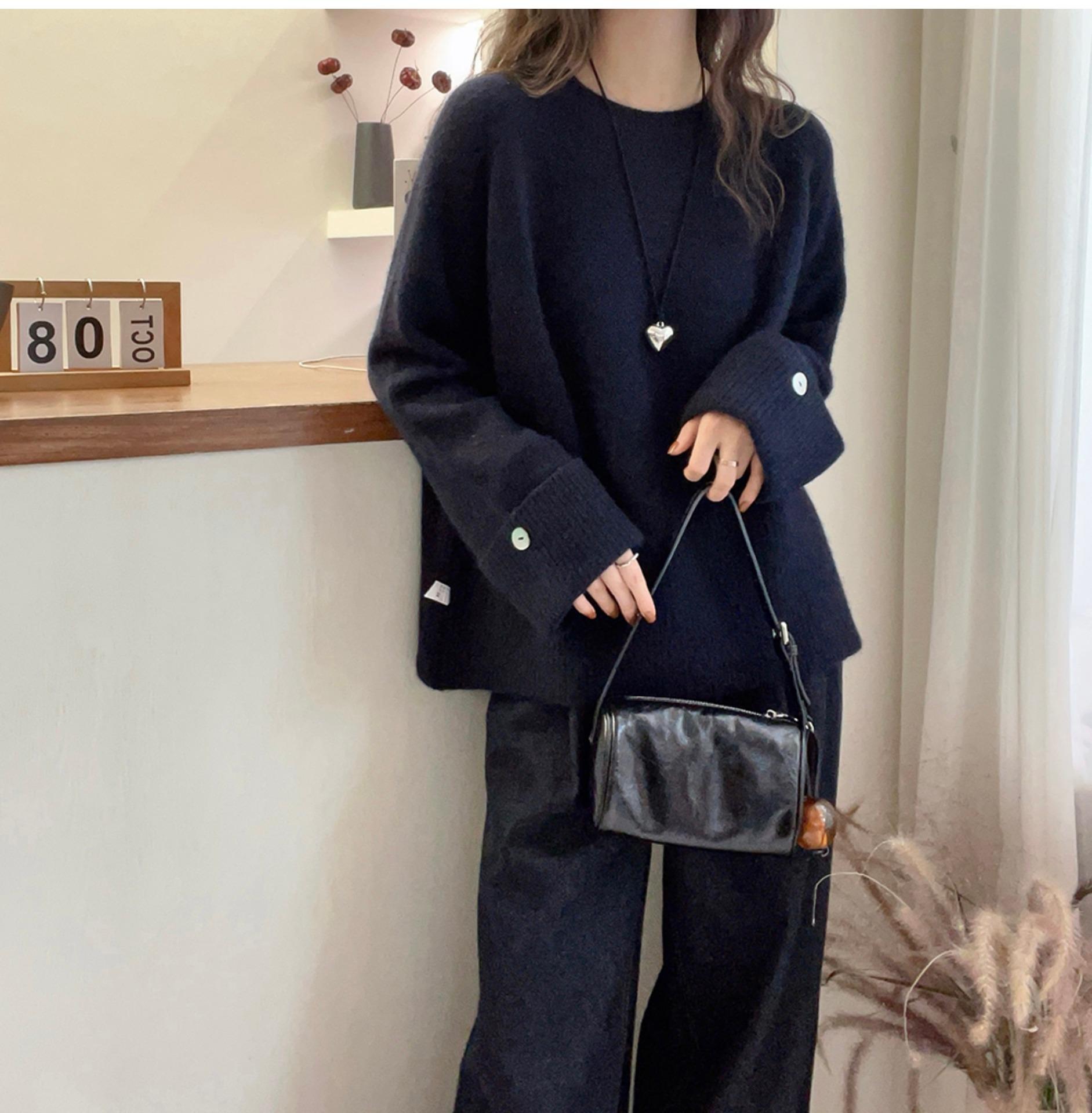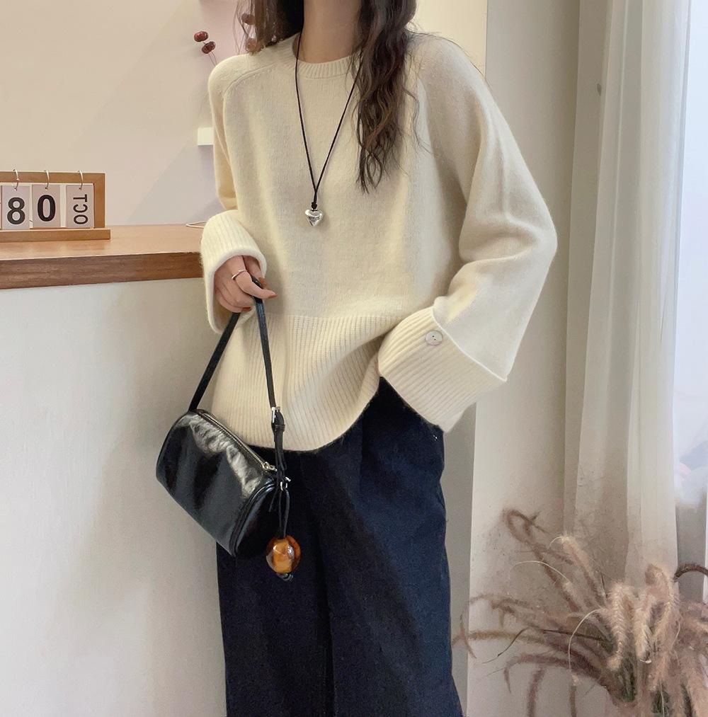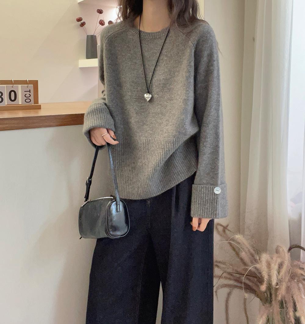 Cárdigan Rojo Rosa Otoño e Invierno 2025 para Mujer Europeo Cuello Redondo Suelto Cachemira Holgazán Otoño e Invierno Suéter de Punto para Fondo
