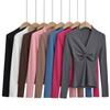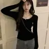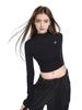 Playera Negra de Estilo Americano de Cuello Alto y Manga Larga para Mujer Otoño e Invierno Ajustada Interior Spice Girl Corta Interior Ombligo Base Camiseta Top