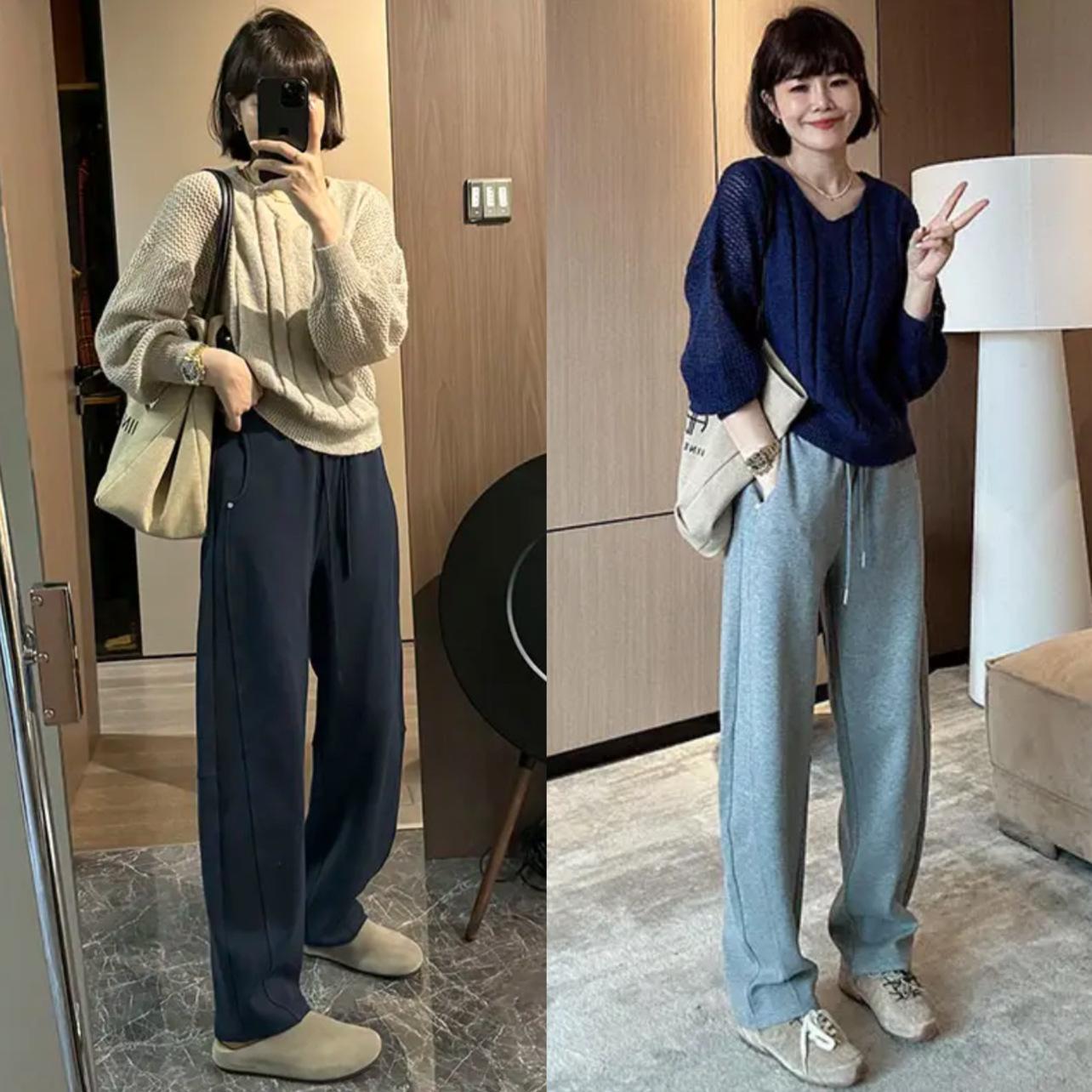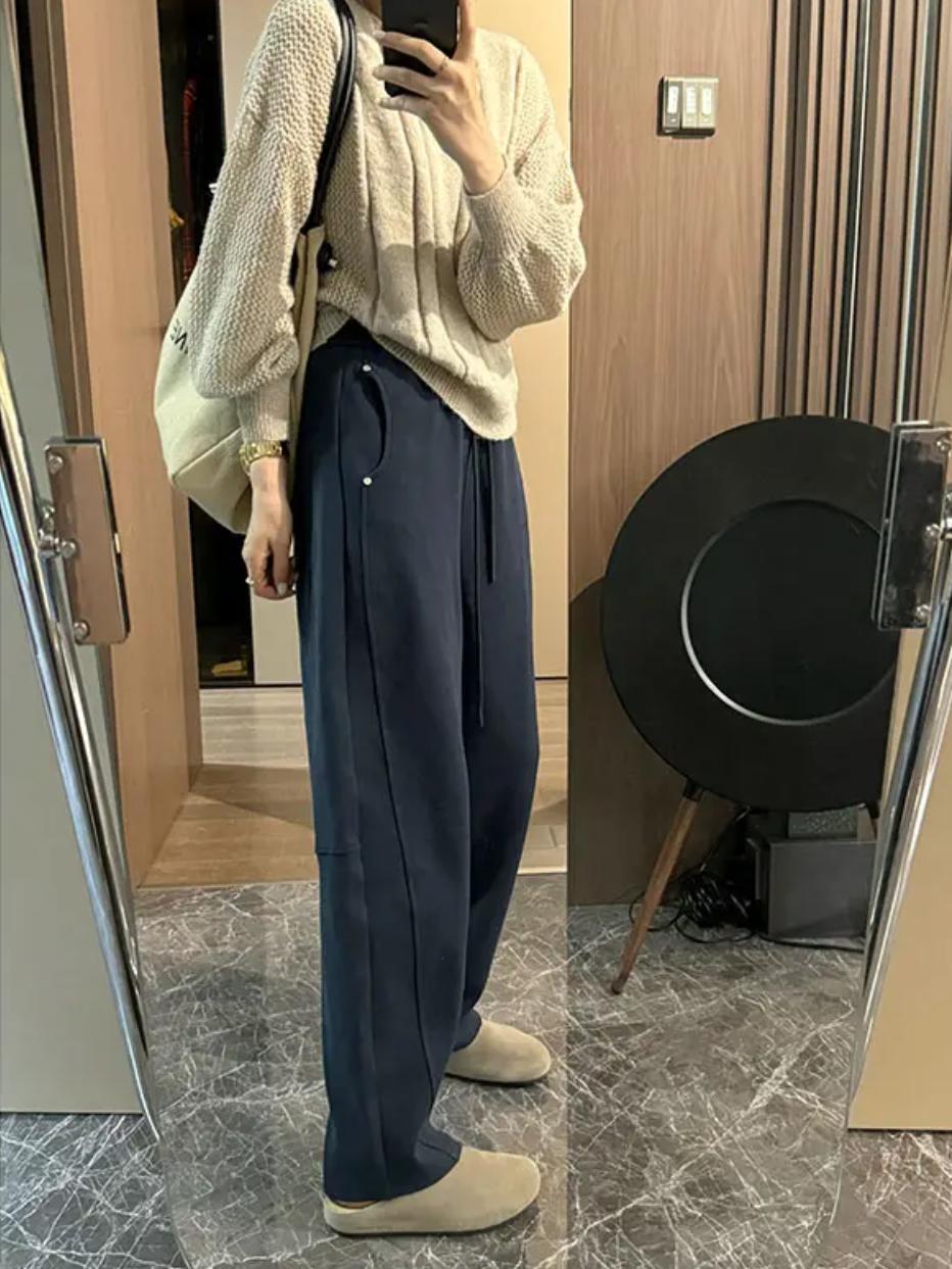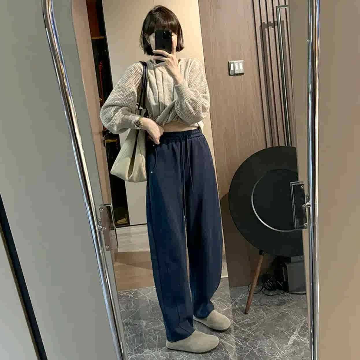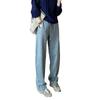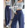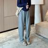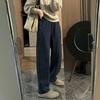 Pantalones Rectos Azules Xizang para Mujer Invierno 2024 Nuevos de Cintura Alta Cortos de Pierna Ancha Pantalones Banana Estrechos