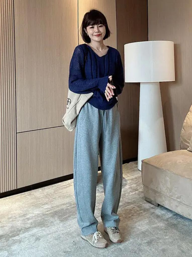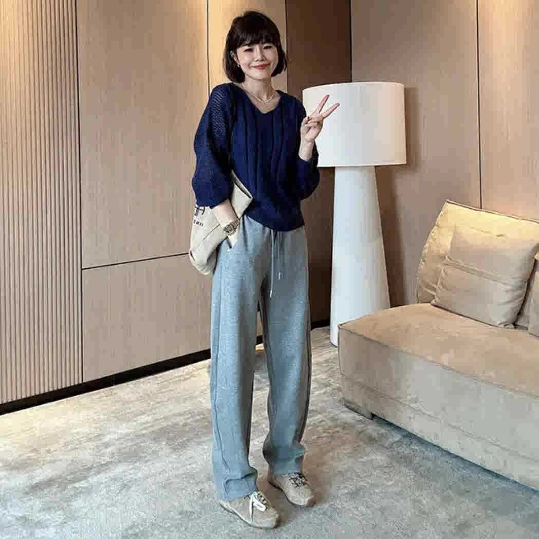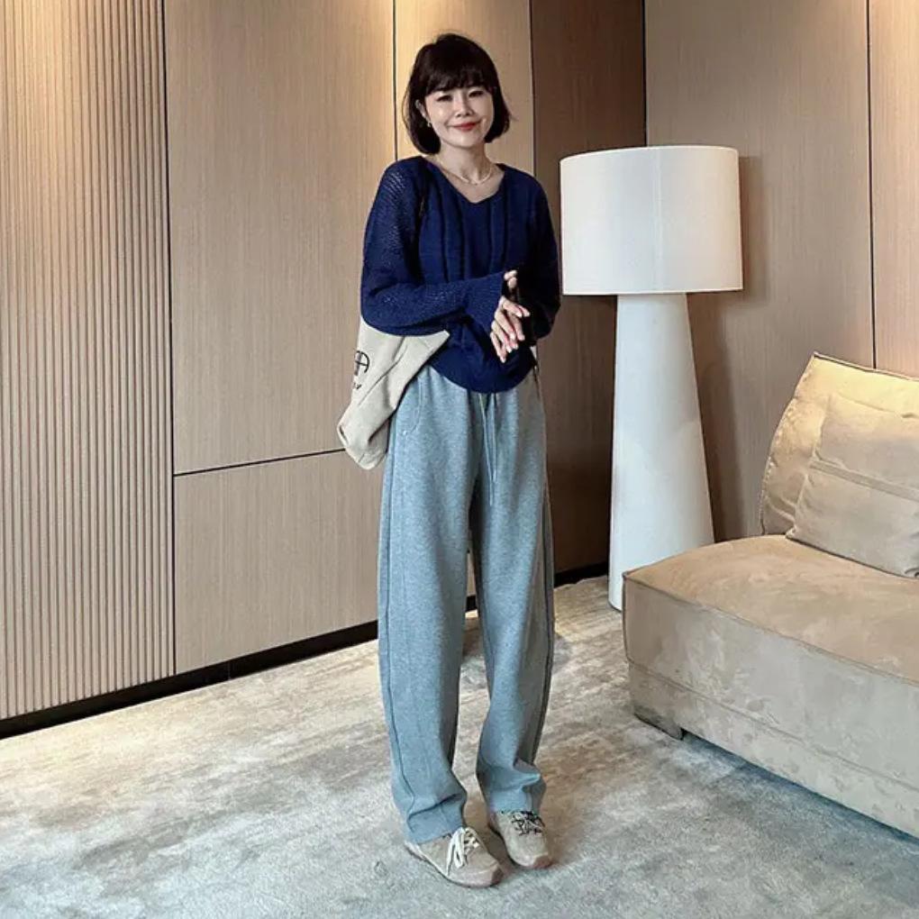 Pantalones Rectos Azules Xizang para Mujer Invierno 2024 Nuevos de Cintura Alta Cortos de Pierna Ancha Pantalones Banana Estrechos