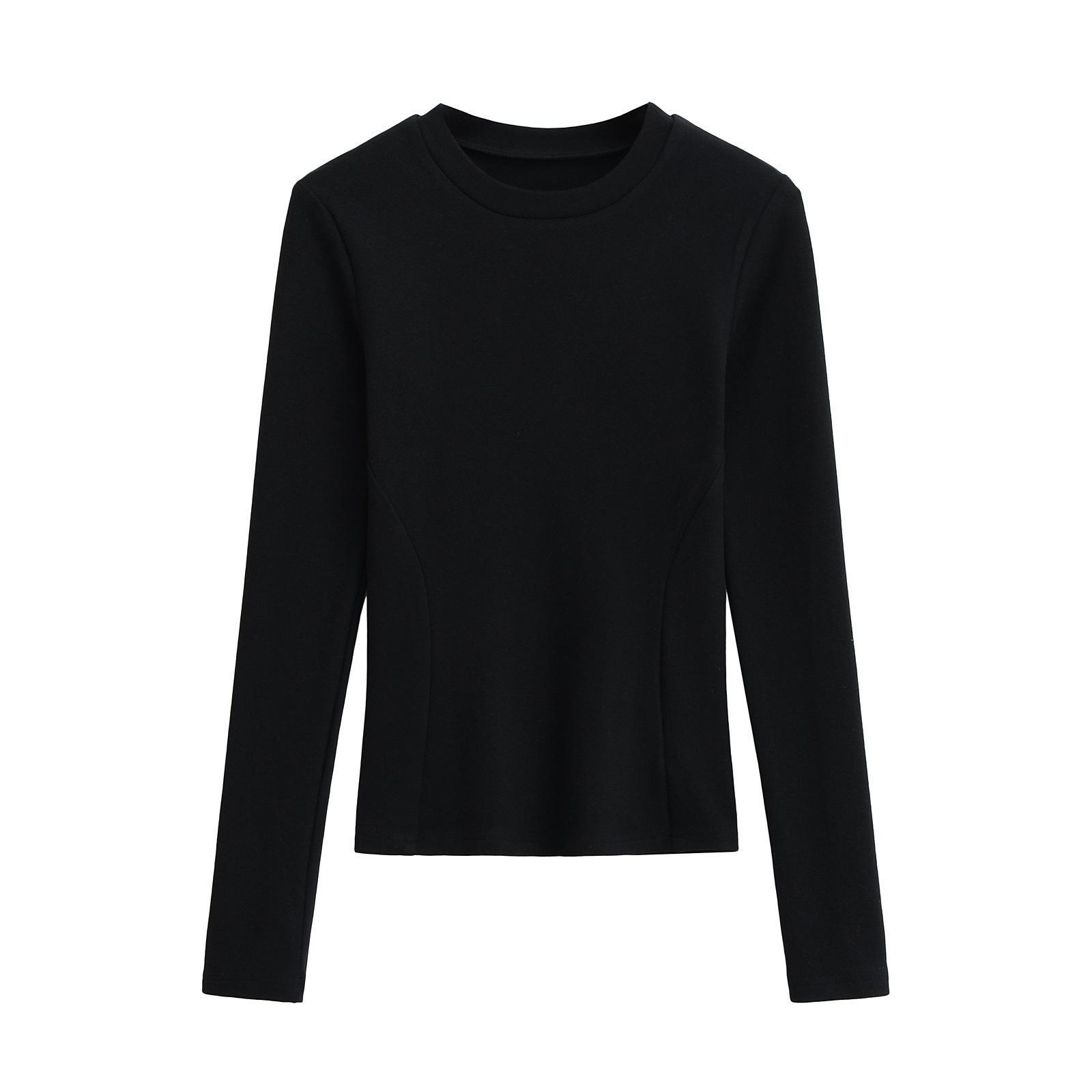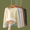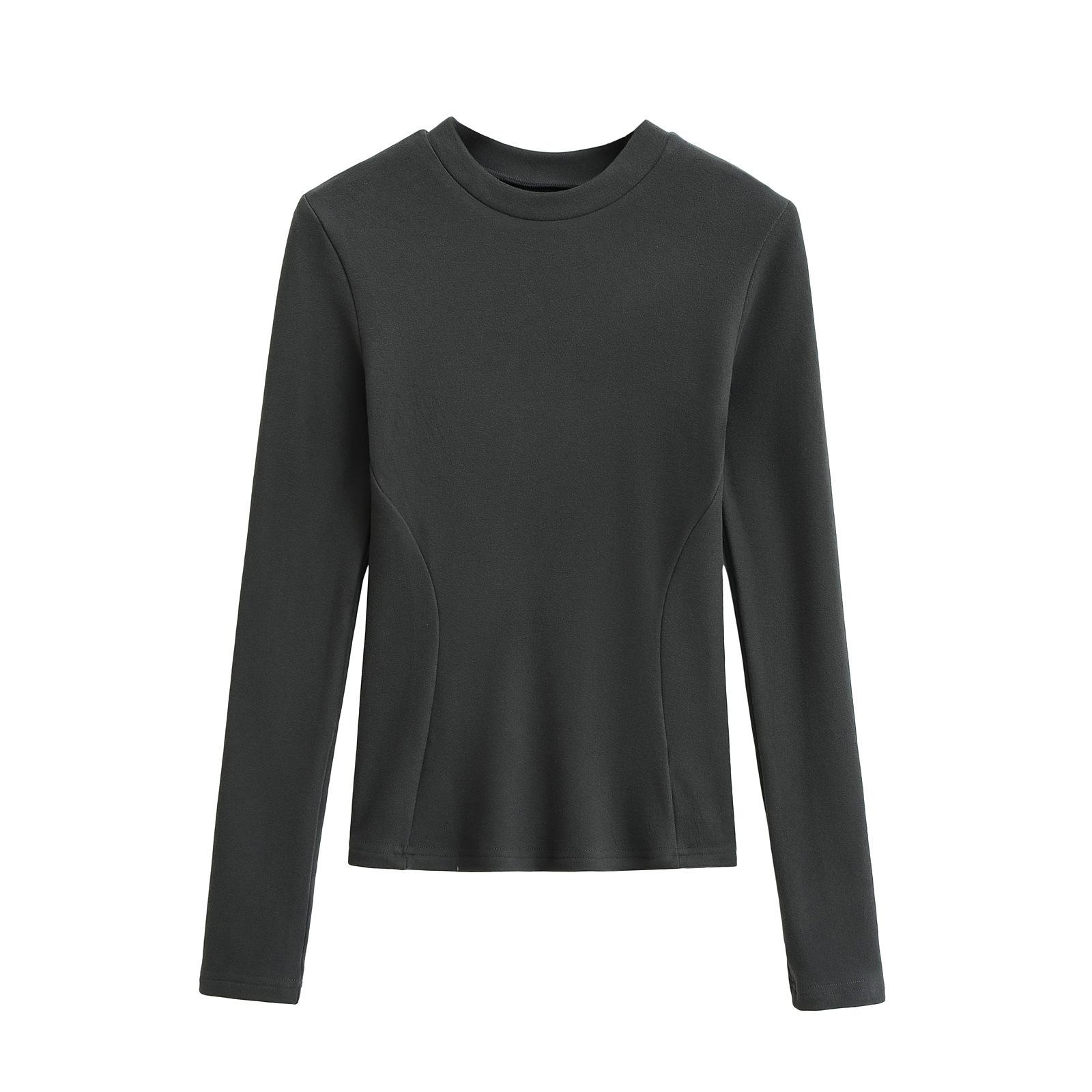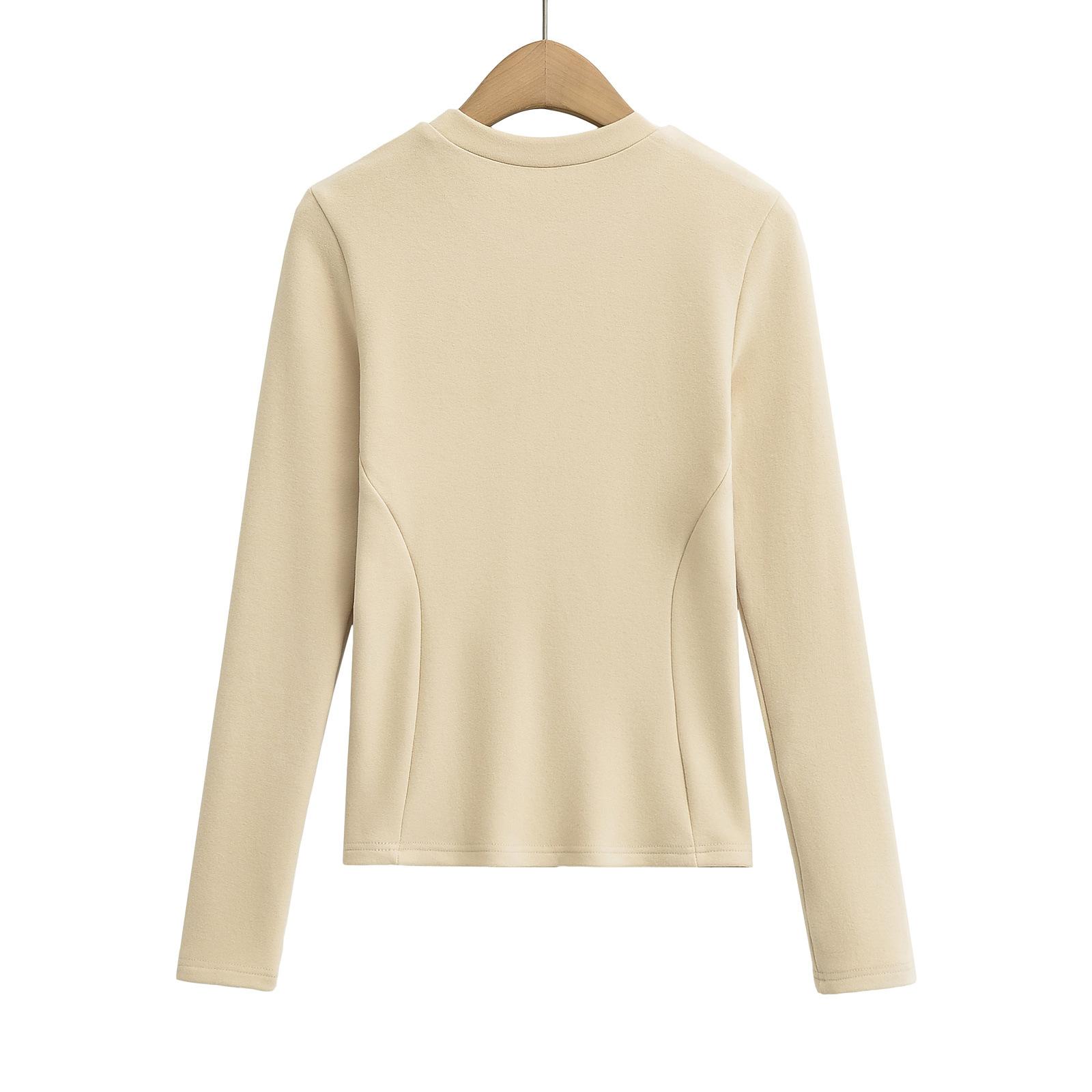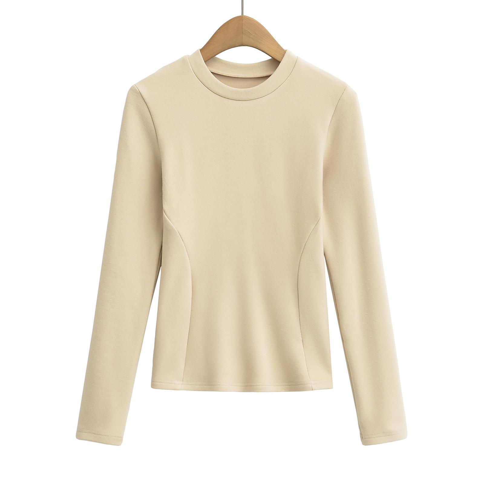 Camiseta de manga larga ajustada para mujer, nueva camiseta de primavera 2025, de doble cara, con cuello redondo, costuras en la cintura y forro polar grueso, ajustada y corta.