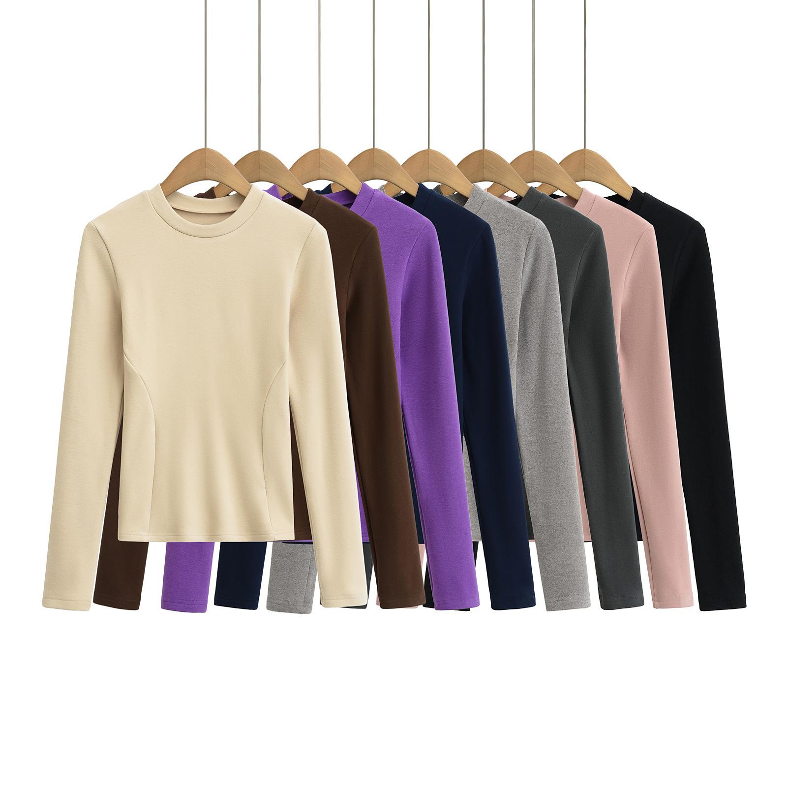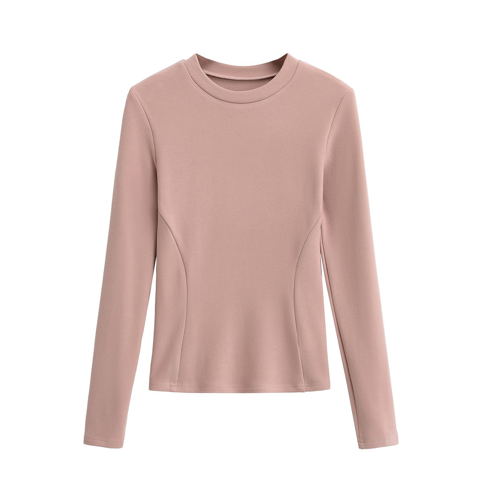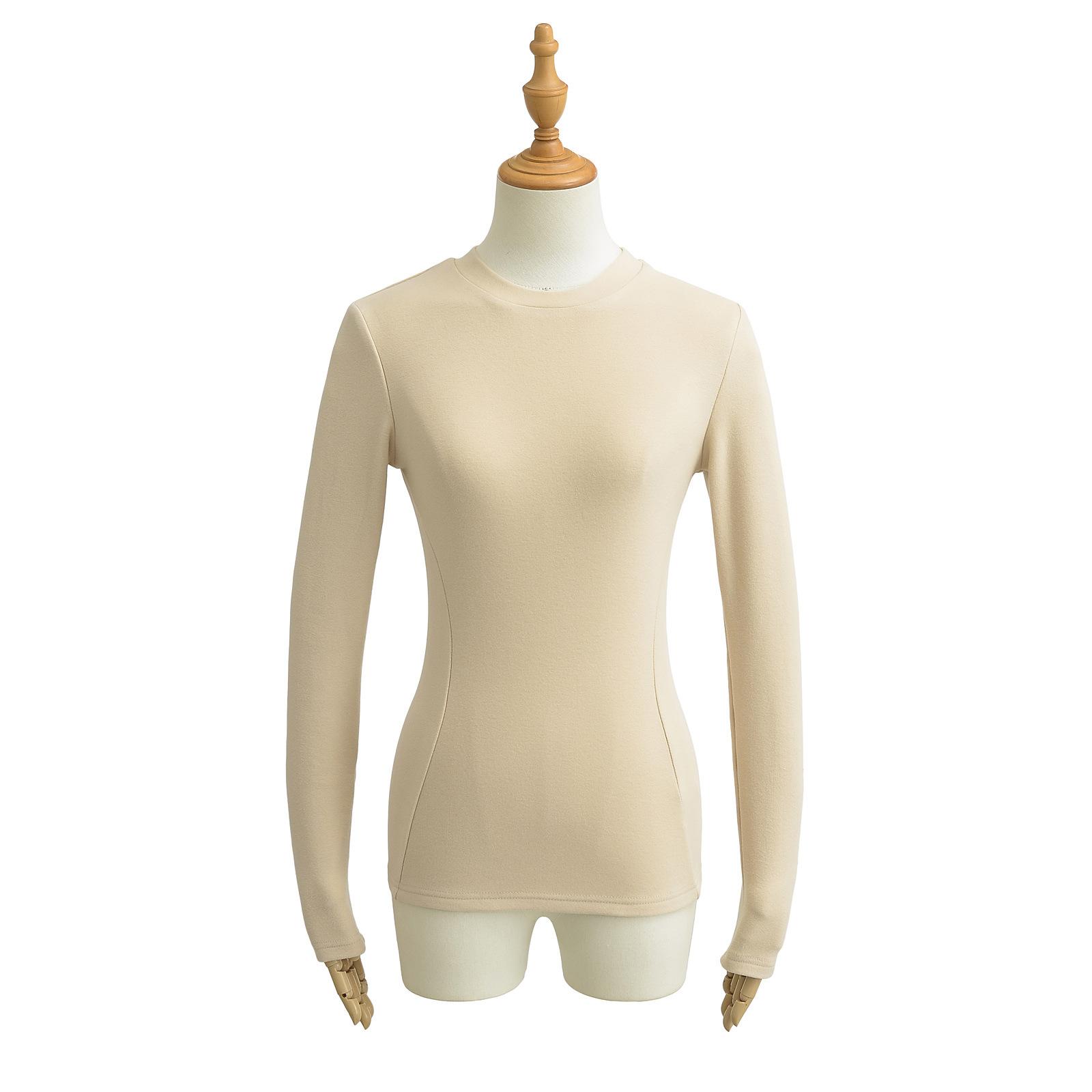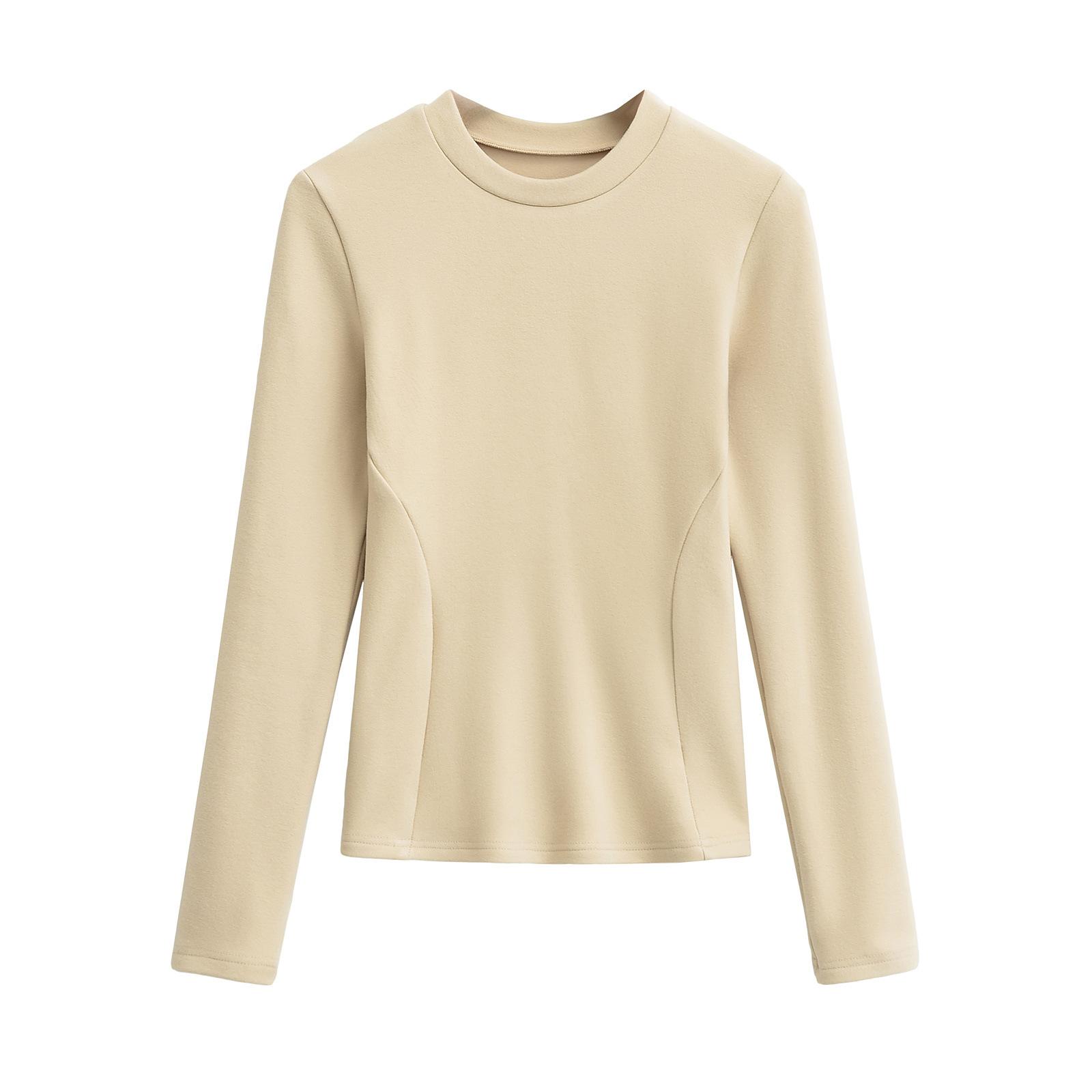 Camiseta de manga larga ajustada para mujer, nueva camiseta de primavera 2025, de doble cara, con cuello redondo, costuras en la cintura y forro polar grueso, ajustada y corta.