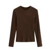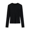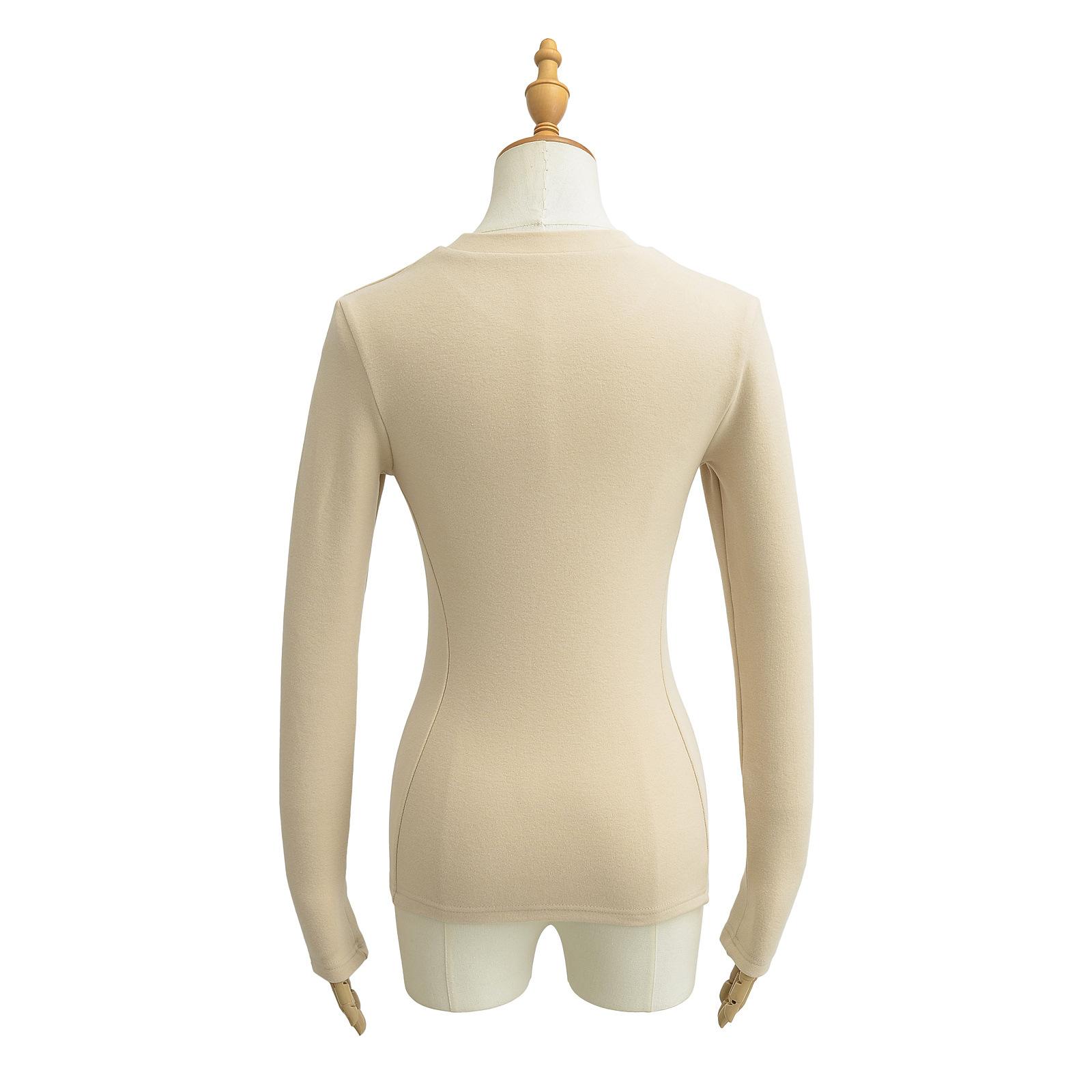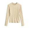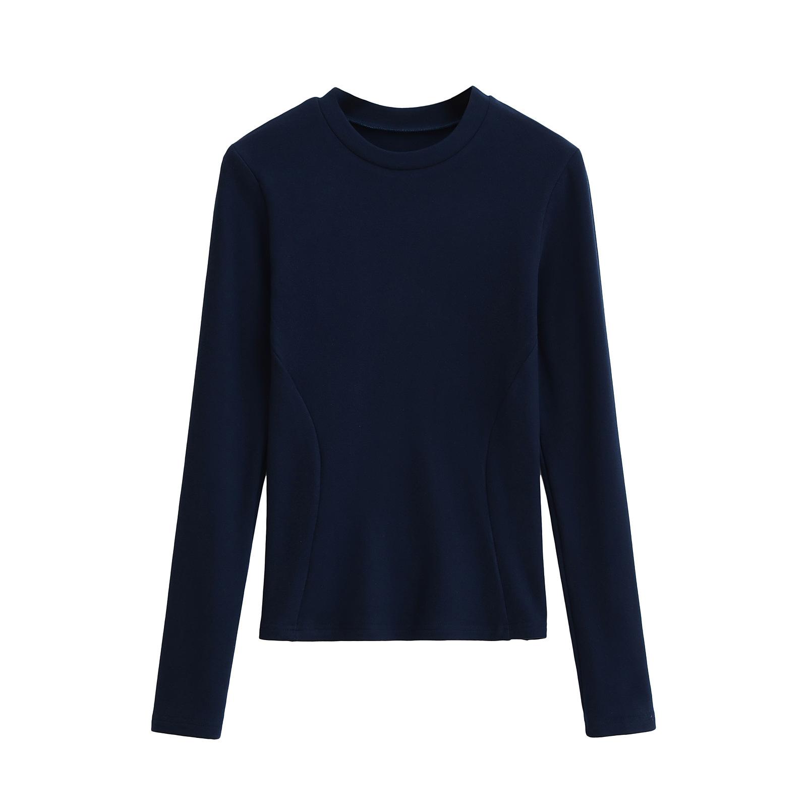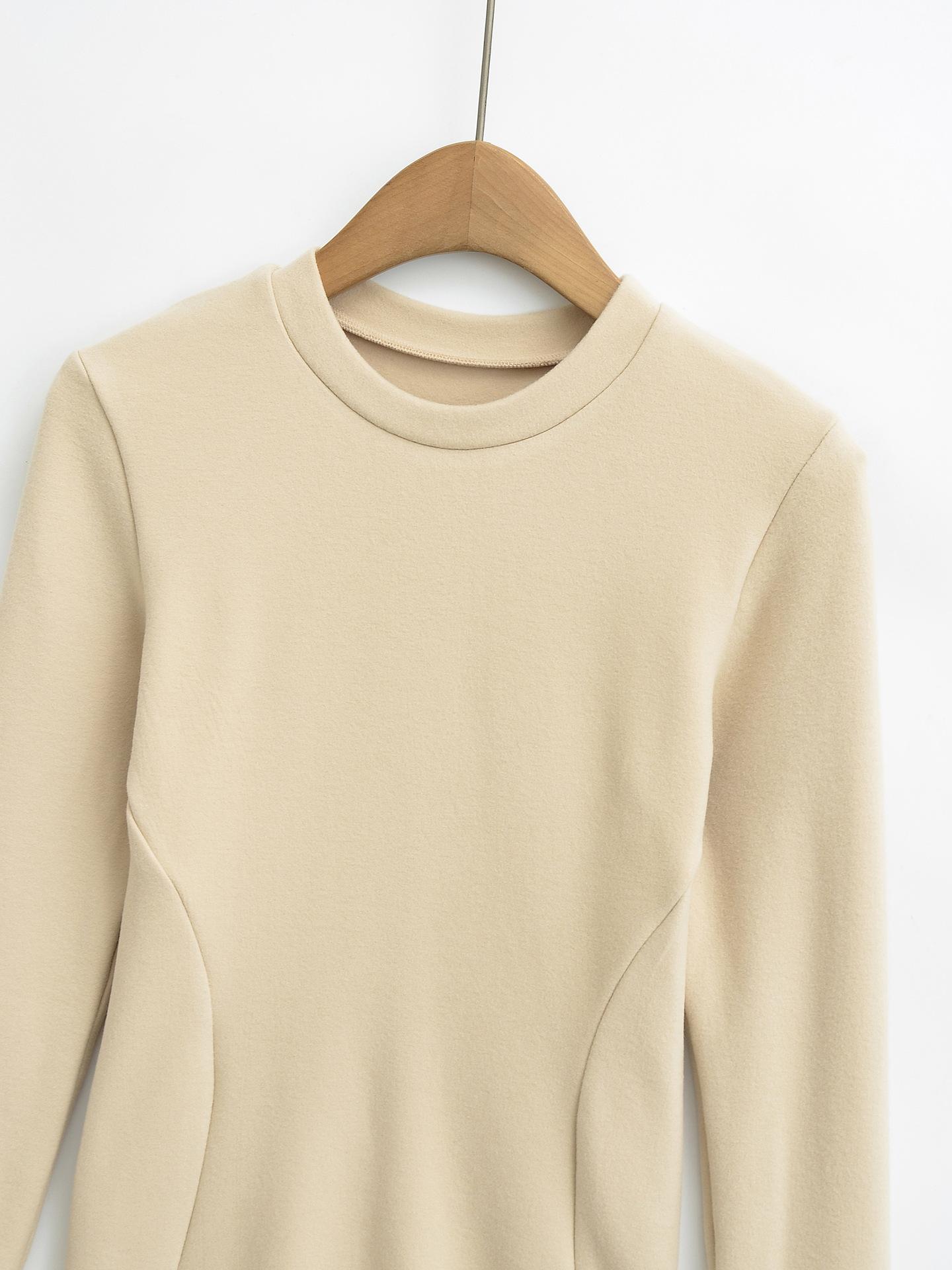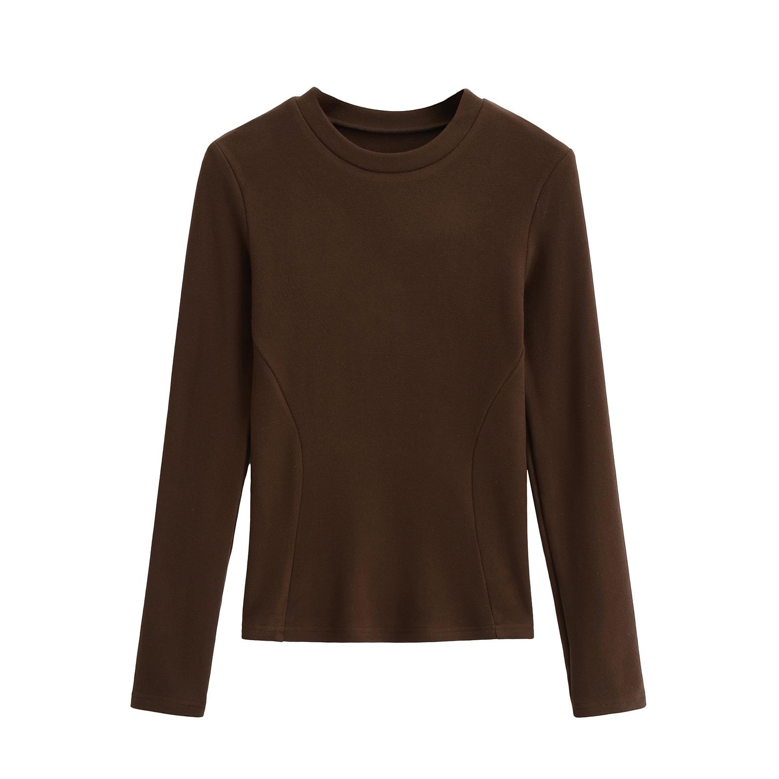Camiseta de manga larga ajustada para mujer, nueva camiseta de primavera 2025, de doble cara, con cuello redondo, costuras en la cintura y forro polar grueso, ajustada y corta.