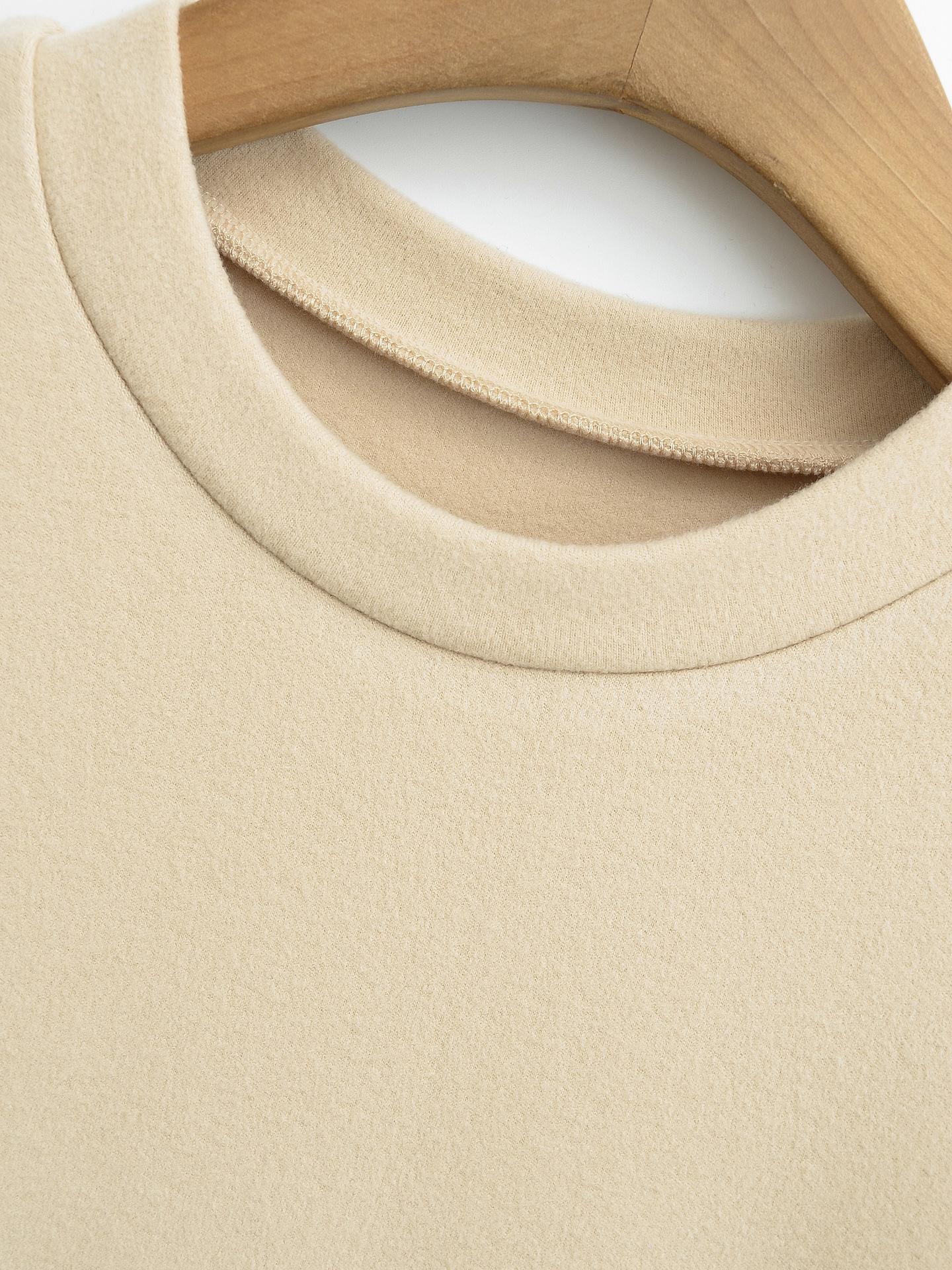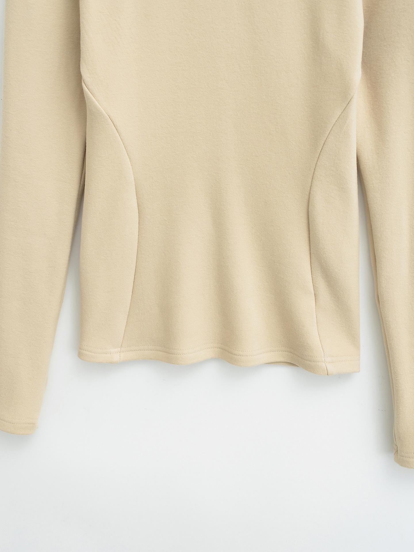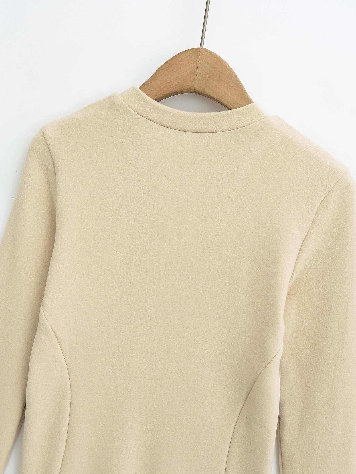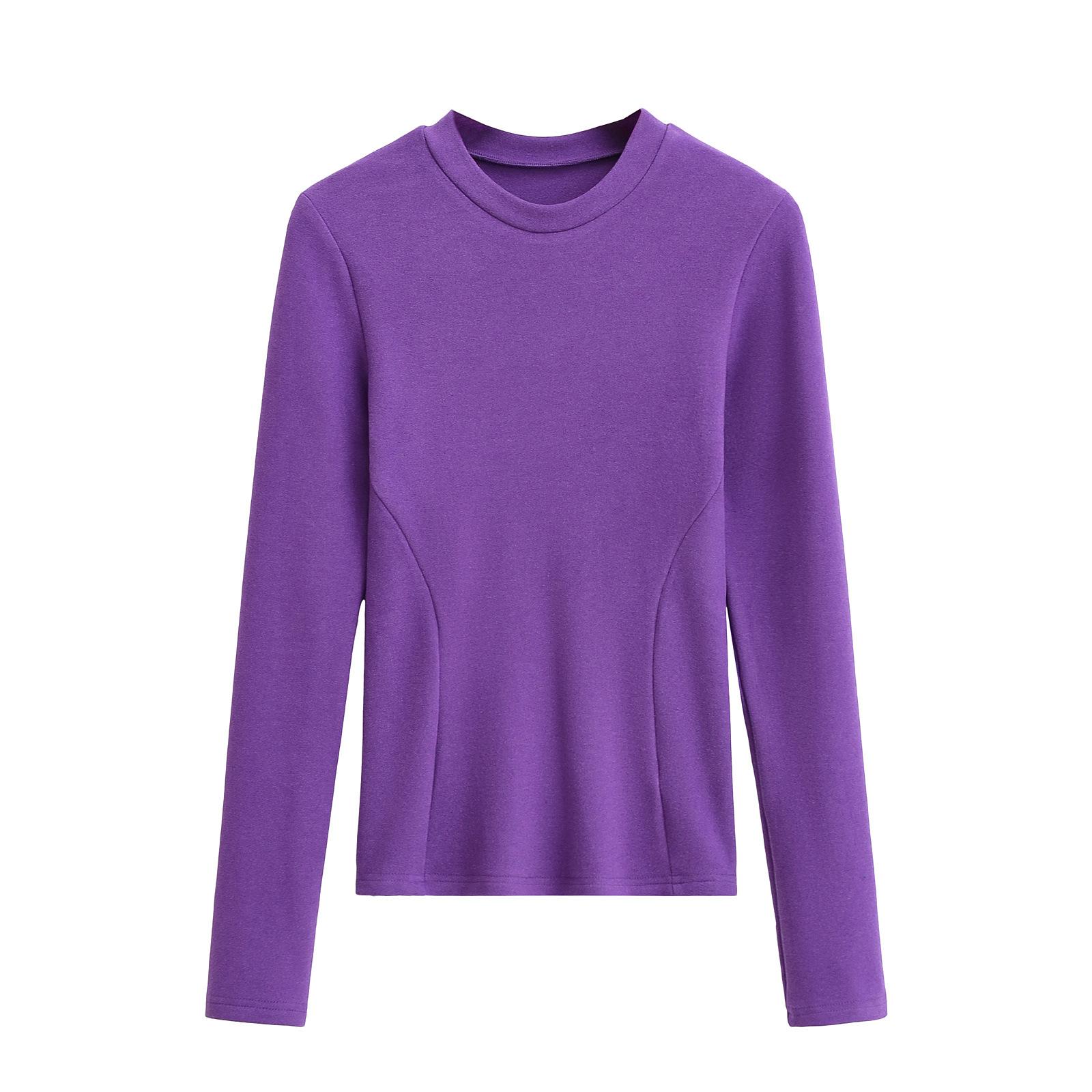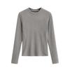 Camiseta de manga larga ajustada para mujer, nueva camiseta de primavera 2025, de doble cara, con cuello redondo, costuras en la cintura y forro polar grueso, ajustada y corta.