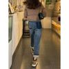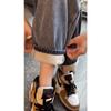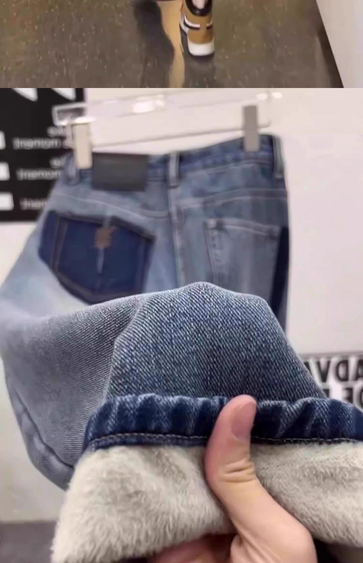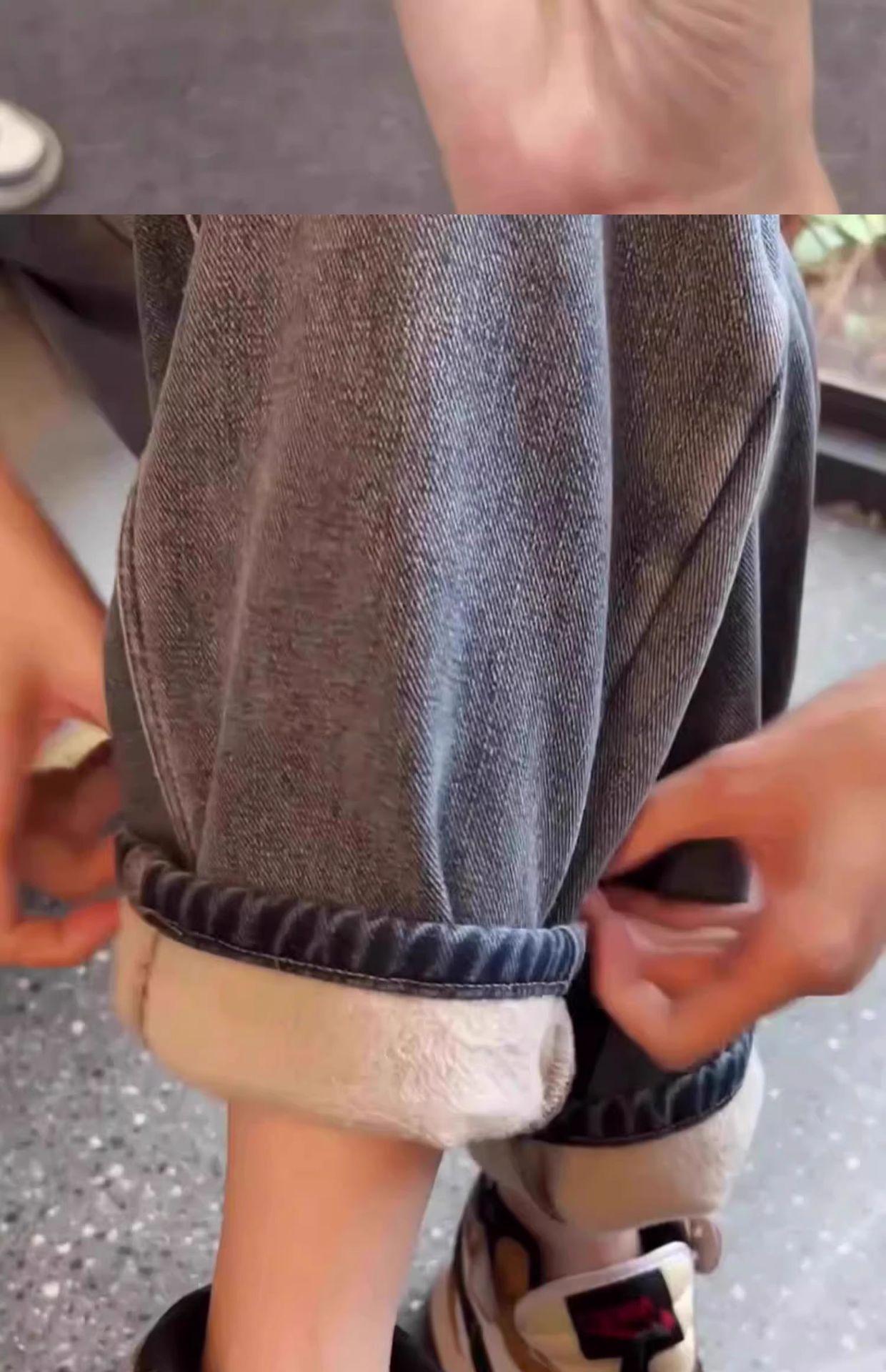 Pantalones vaqueros vintage con forro polar para mujer, de invierno, nuevos, de talla grande, con forma de pera, de cintura alta, adelgazantes, rectos y sueltos.