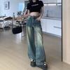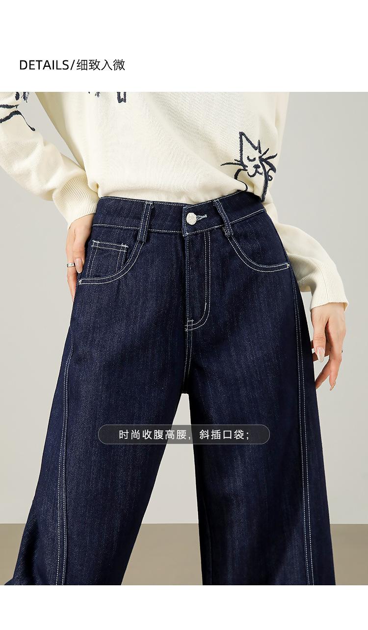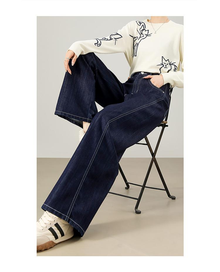Pantalones Adelgazantes Holgados Rectos de Pierna Ancha de Calidad Transfronteriza para Mujer Jeans de Cintura Alta con Elasticidad en Cuatro Direcciones para Mujer