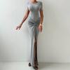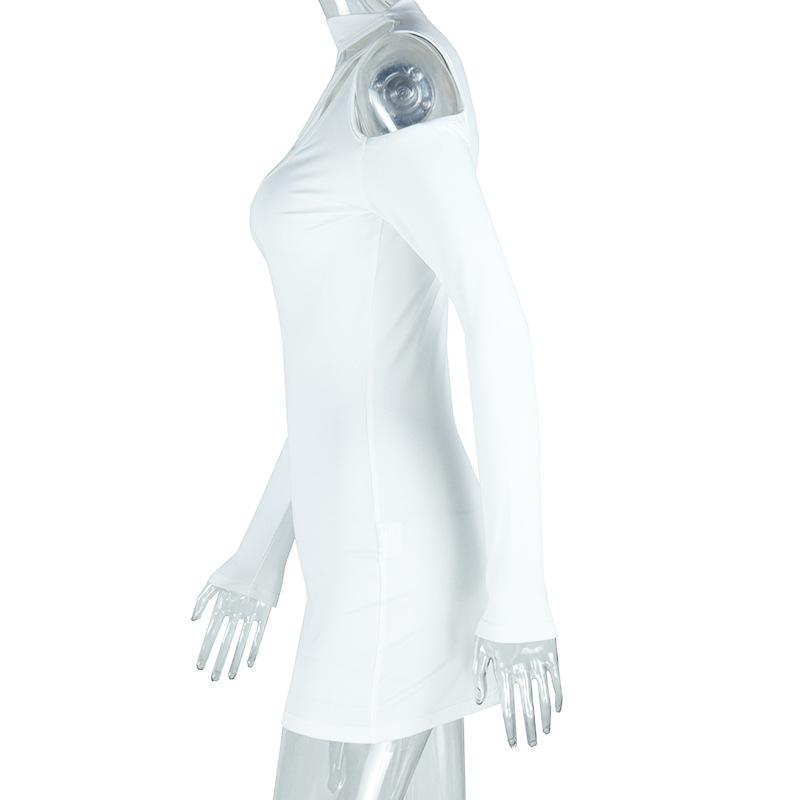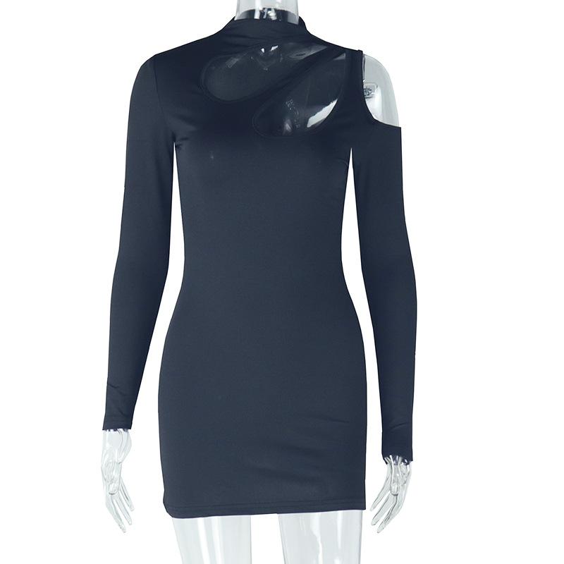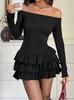2025 Nuevo Estilo Europeo y Americano Moda Femenina Elegante Falda Ajustada a la Cadera Vestido Corto de Manga Larga Cuello Redondo Color Sólido