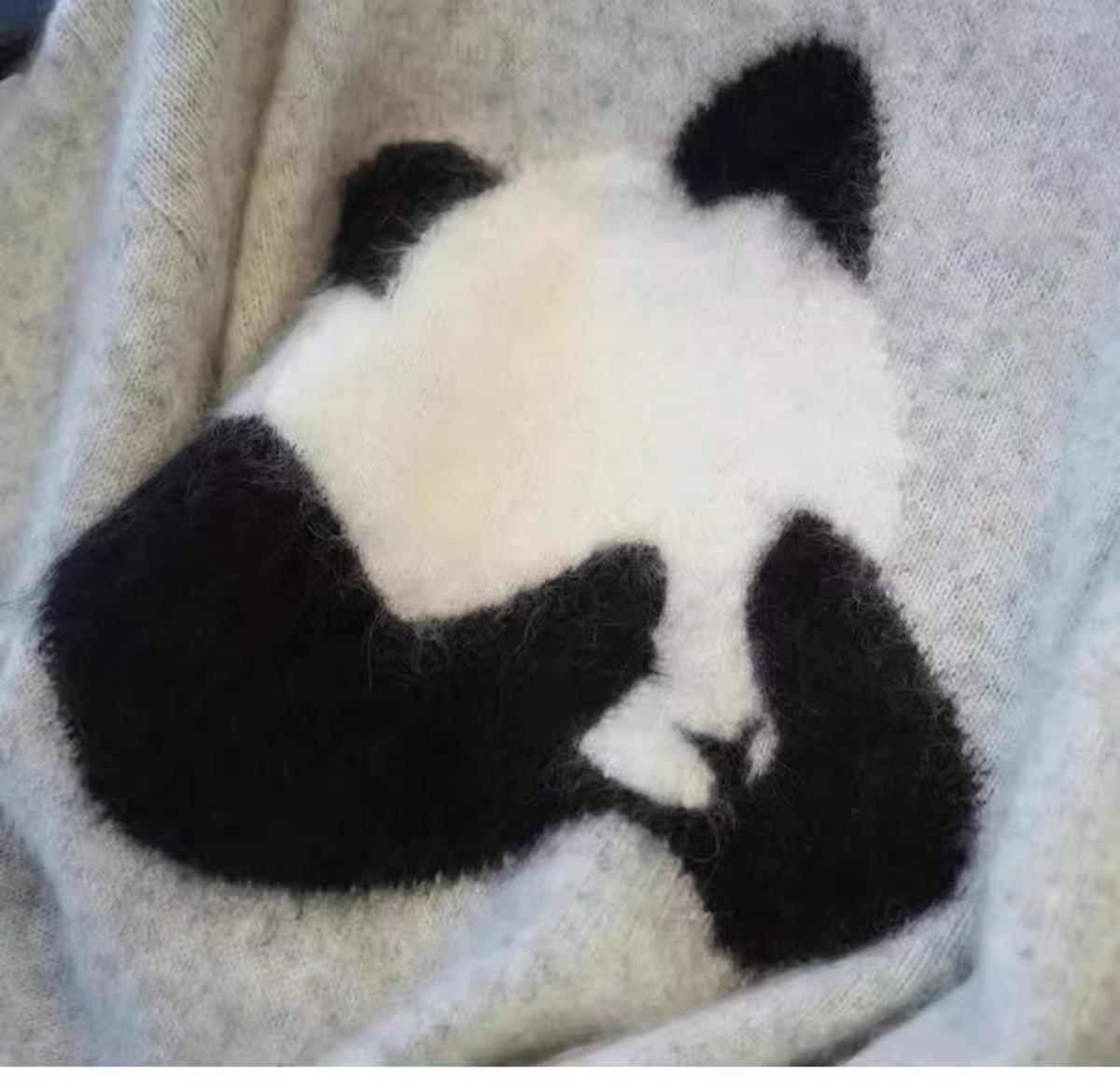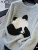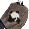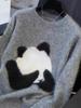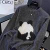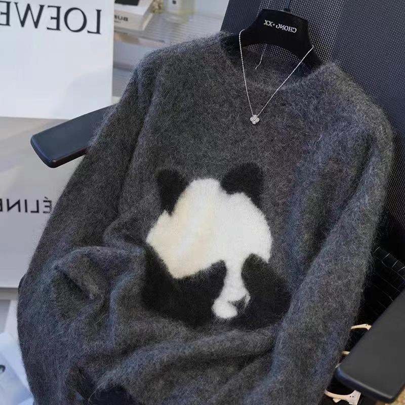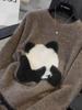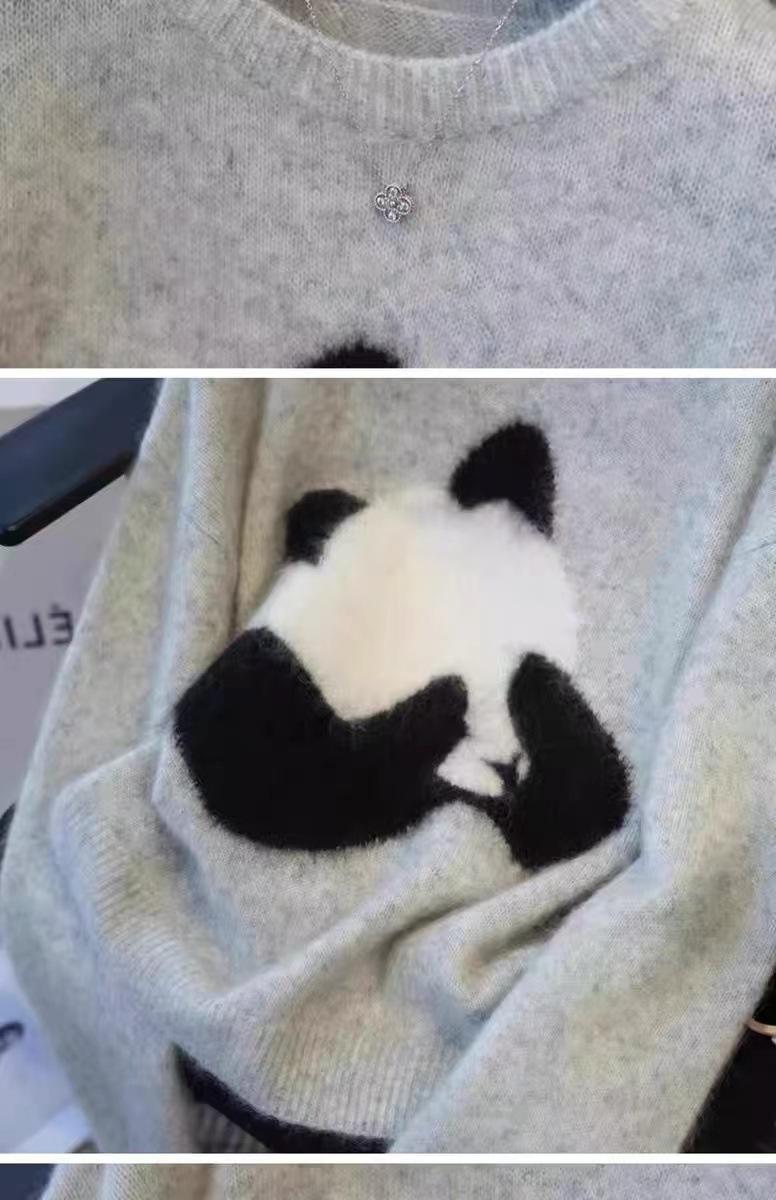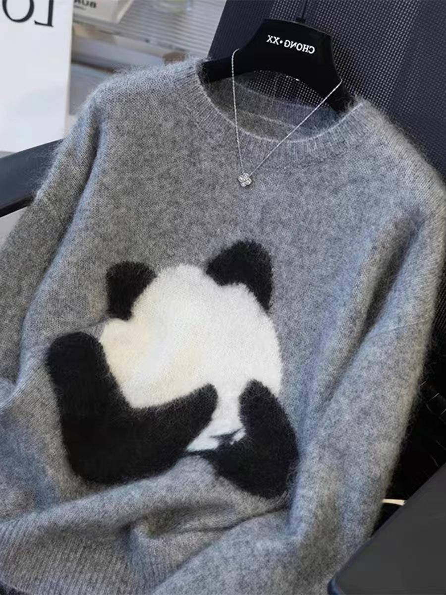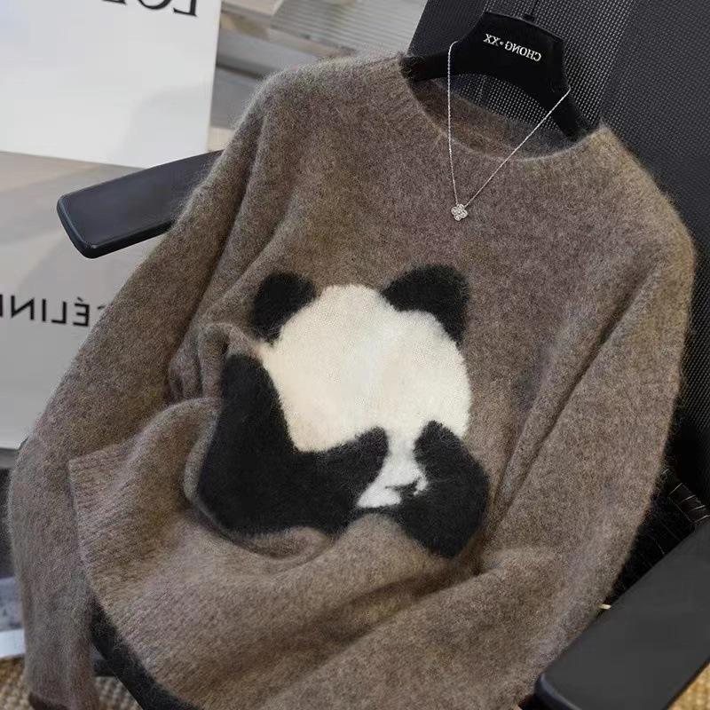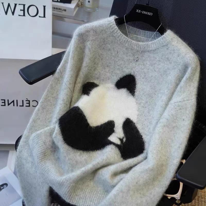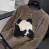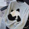 Suéter de Punto de Cachemira Holgado Bordado de Panda Estilo Coreano para Mujer Otoño e Invierno Adelgazante de Hombros Cuello Redondo Suéter Base Suéter de Lana Grueso