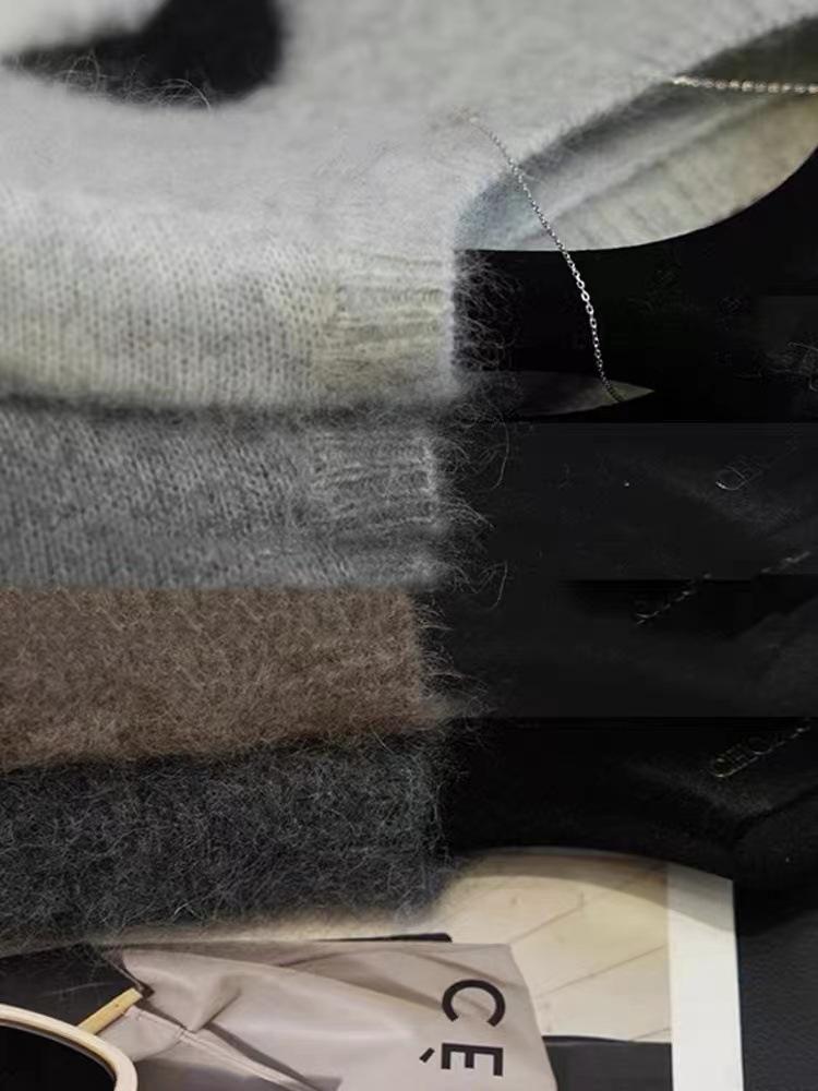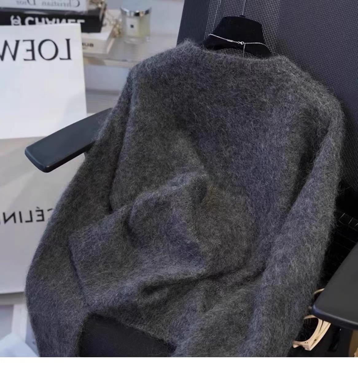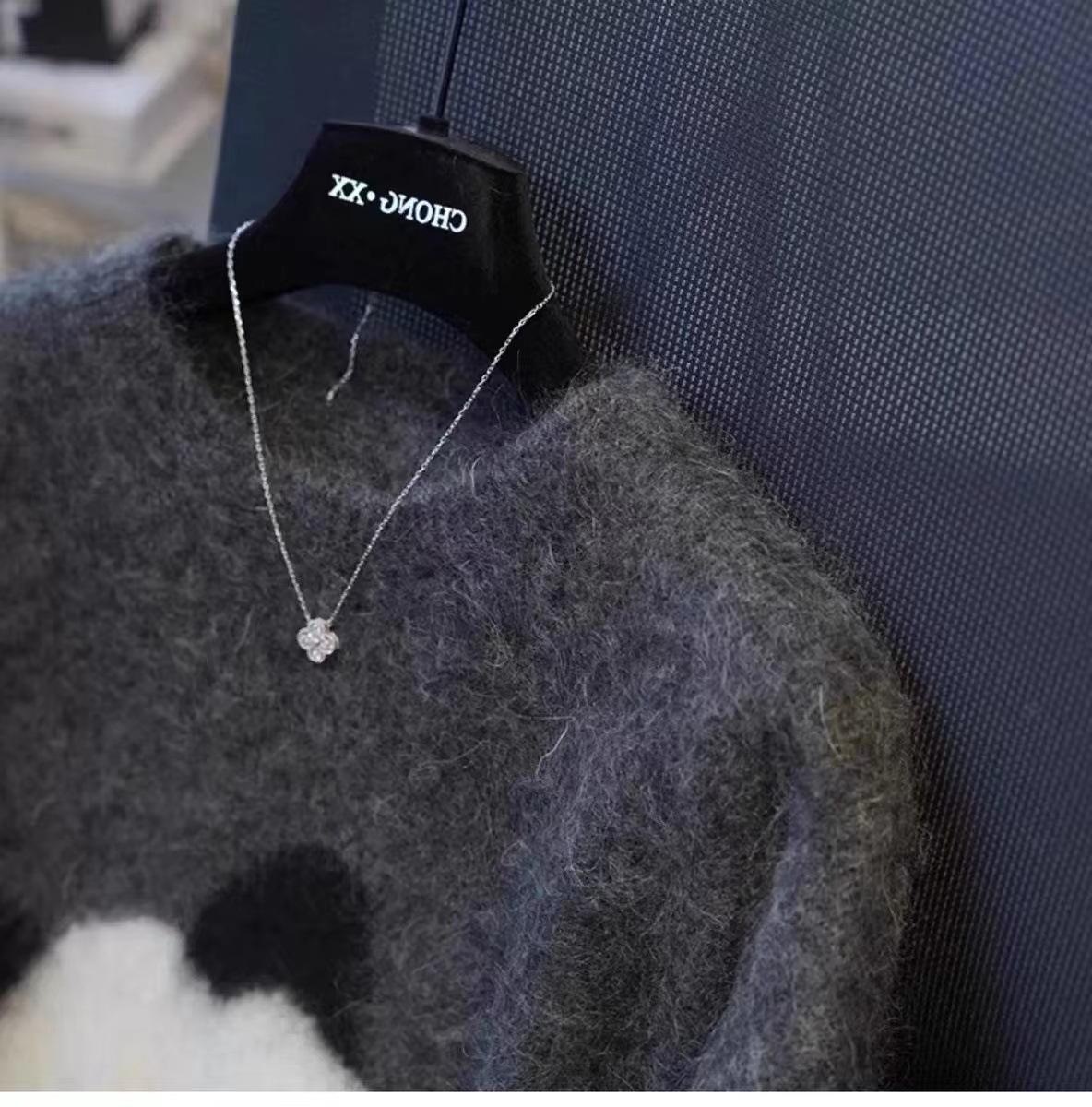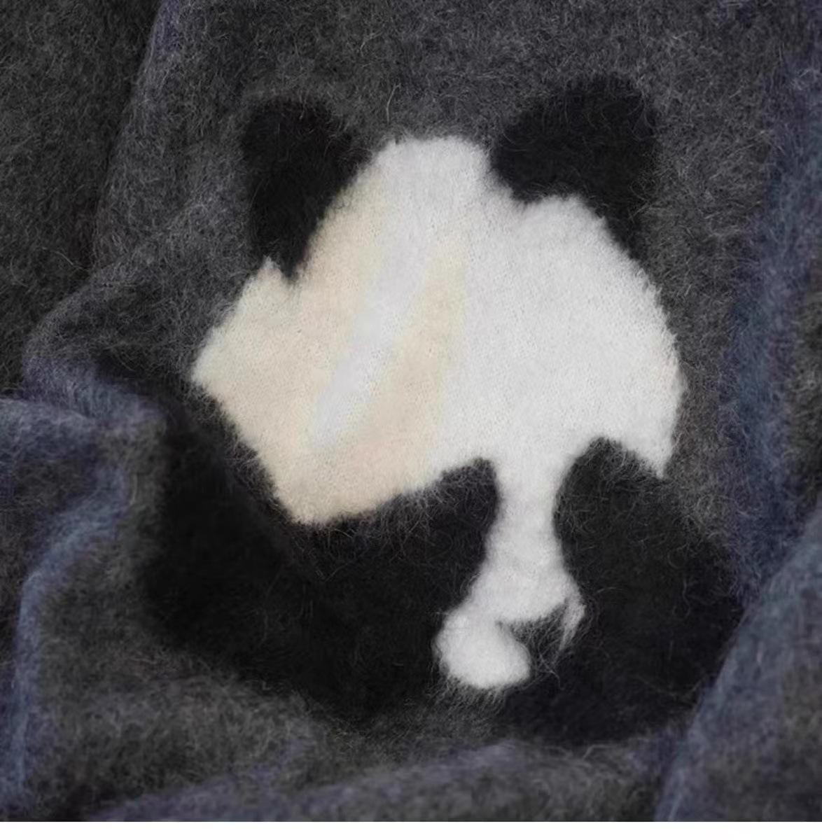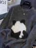 Suéter de Punto de Cachemira Holgado Bordado de Panda Estilo Coreano para Mujer Otoño e Invierno Adelgazante de Hombros Cuello Redondo Suéter Base Suéter de Lana Grueso