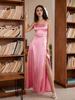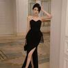 Vestido de noche para banquete, elegante, ajustado, largo, sin tirantes, de malla, color liso, nuevo, de estilo transfronterizo.