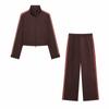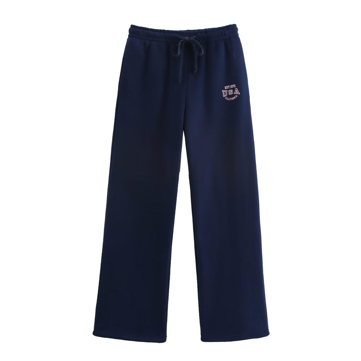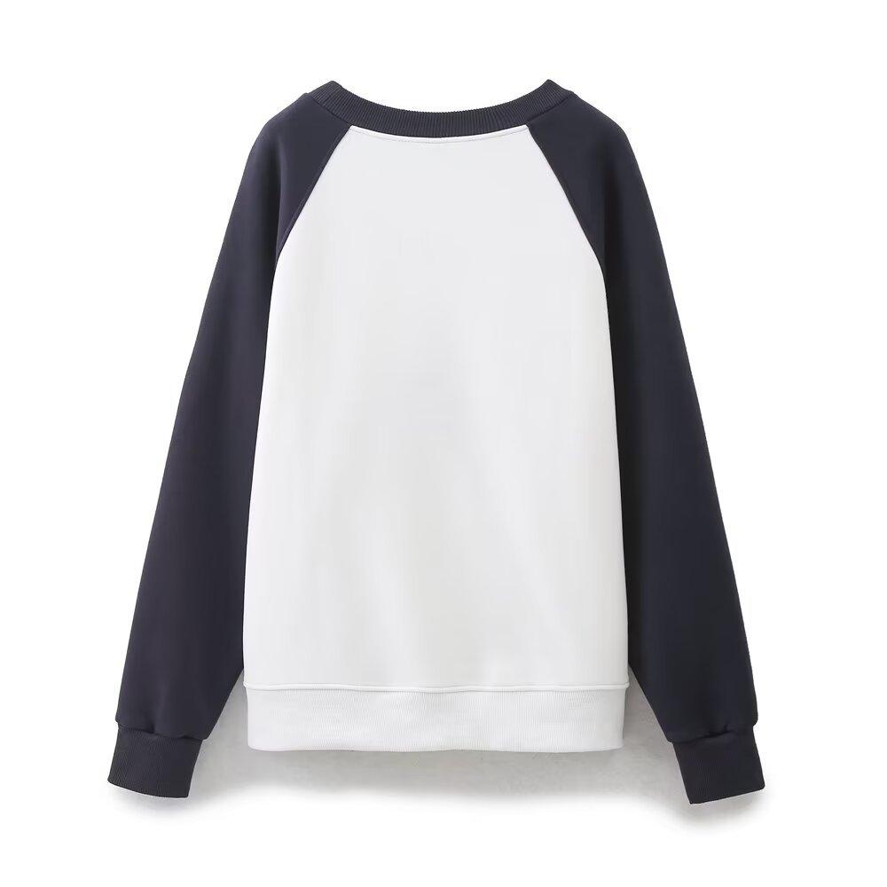 Suéter europeo y americano de comercio exterior otoño 2024 nuevo de color contrastante con letras estampadas más pantalones deportivos rectos casuales traje de mujer