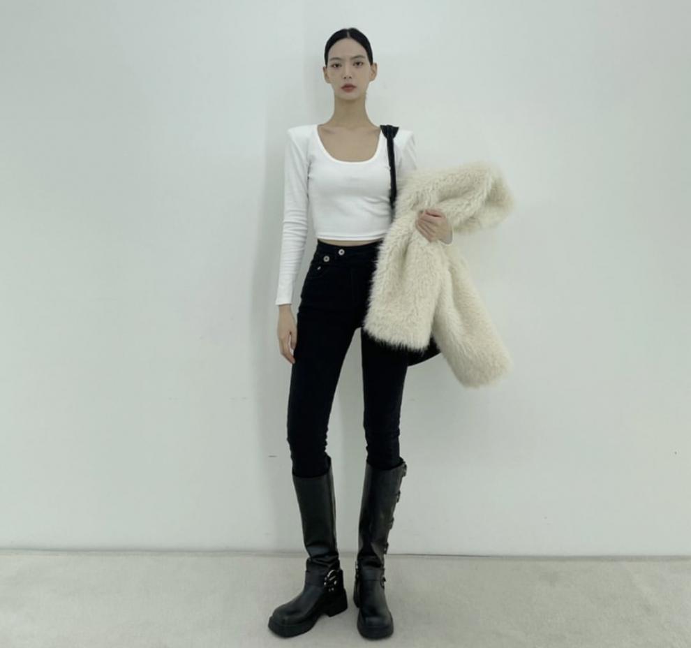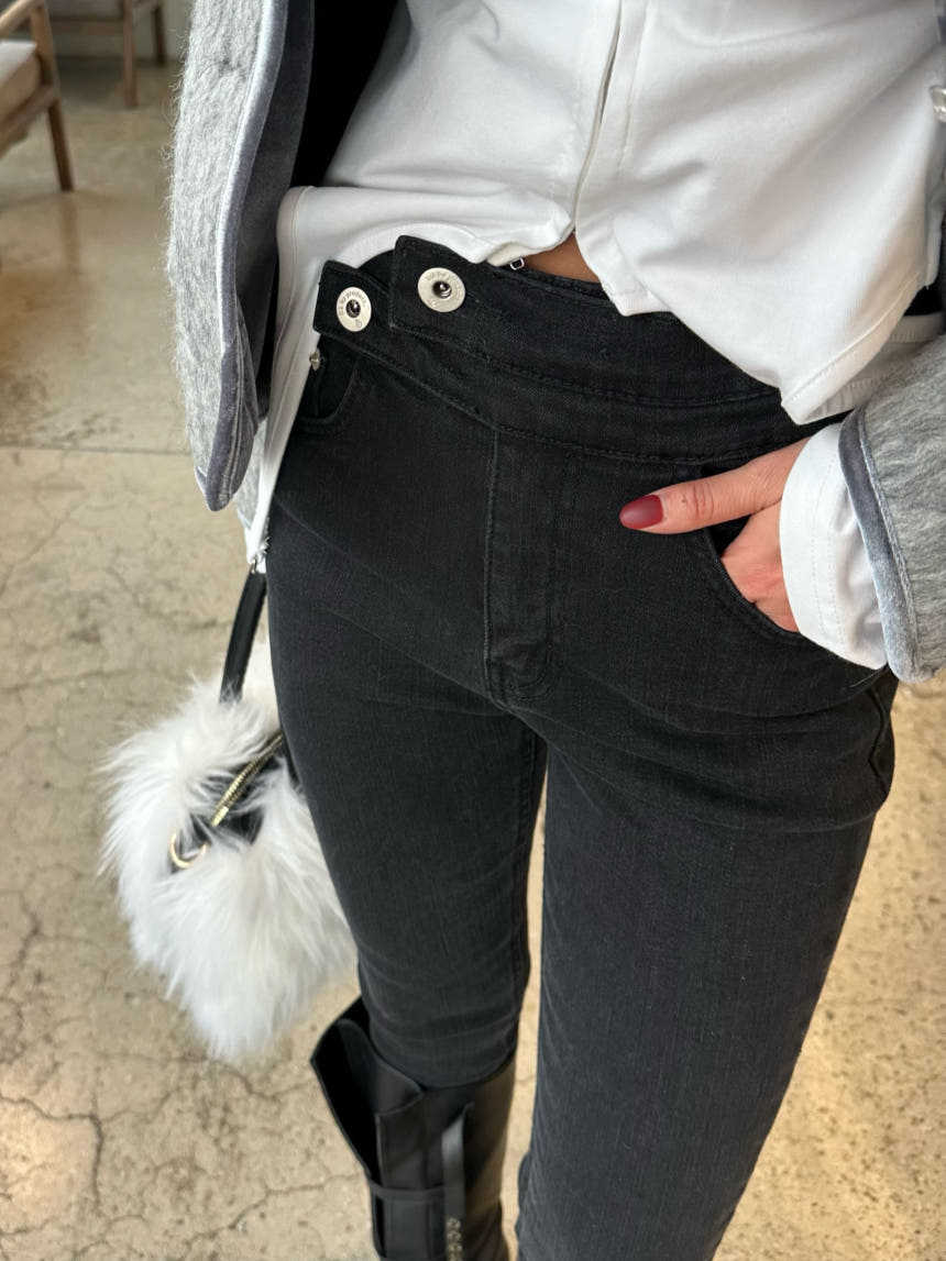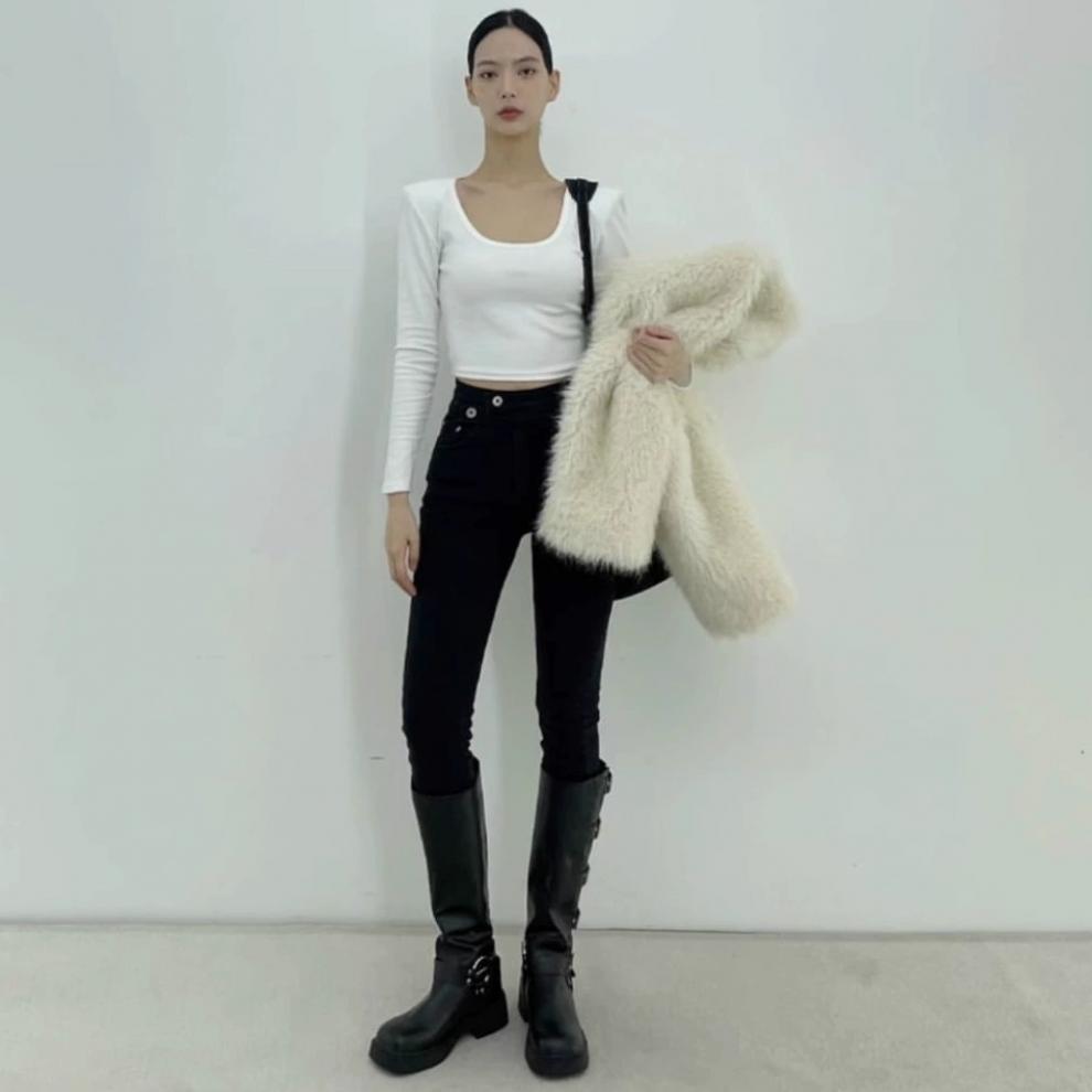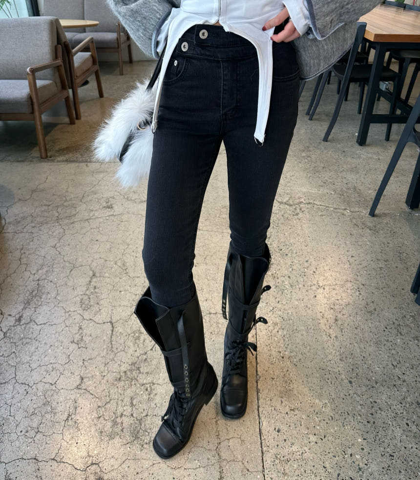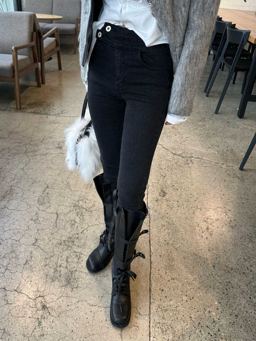 Corea del Sur Dongdaemun para Mujer Invierno Nuevo Cintura Alta Adelgazante Elástico Jeans de Pierna 1