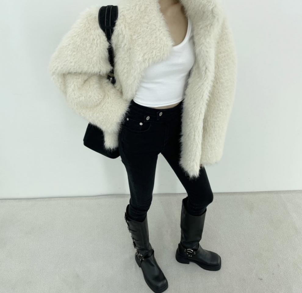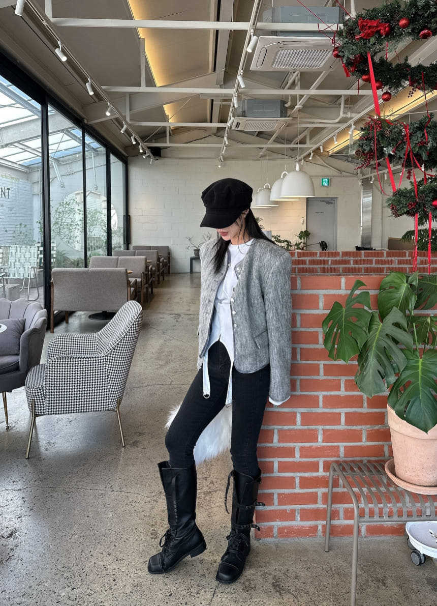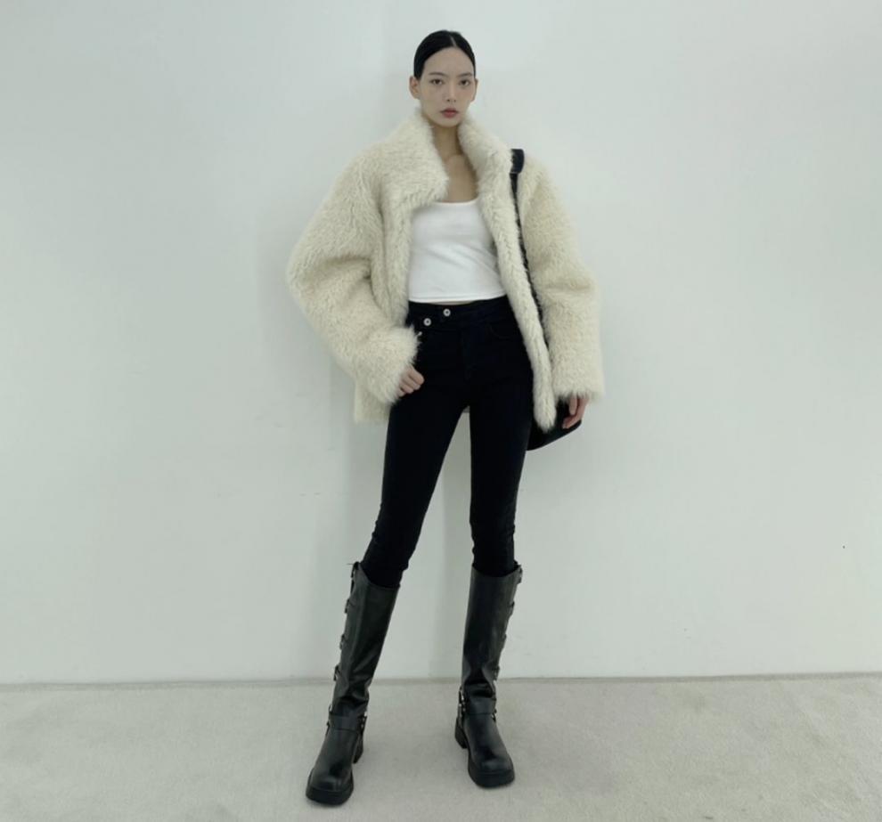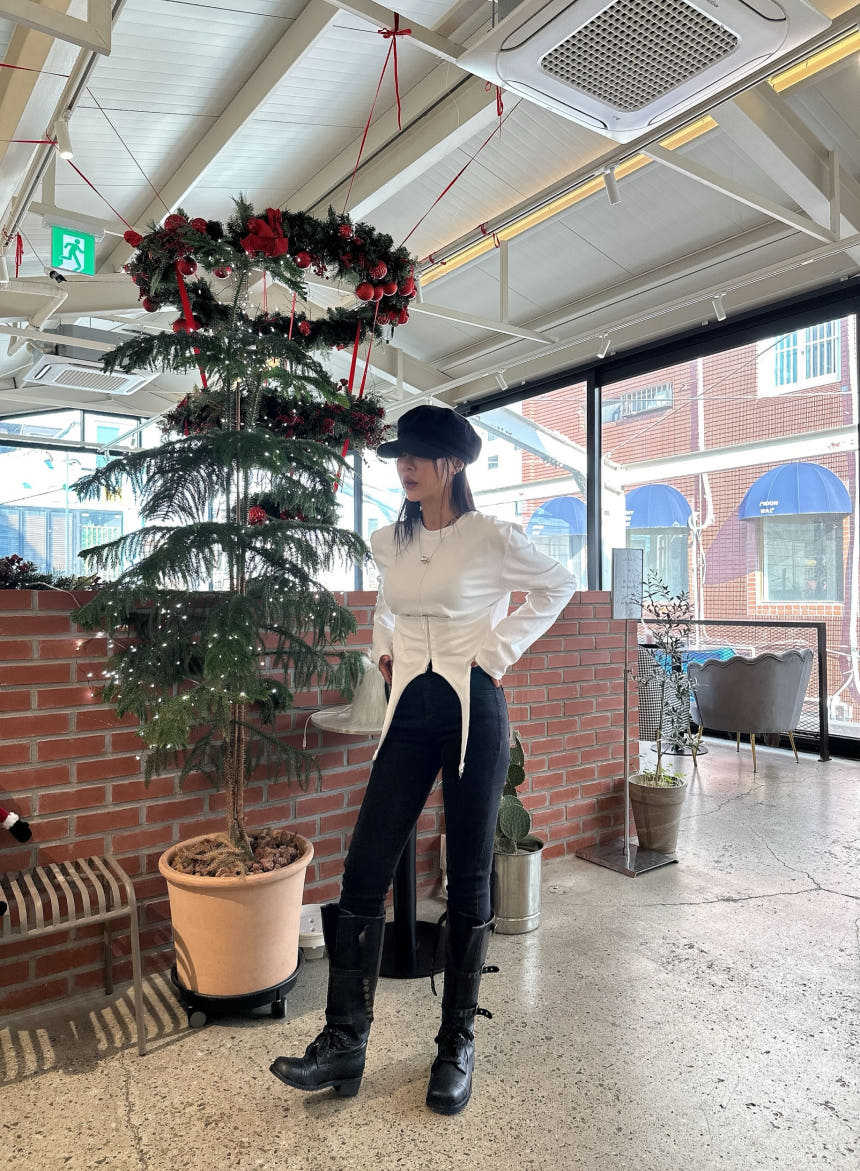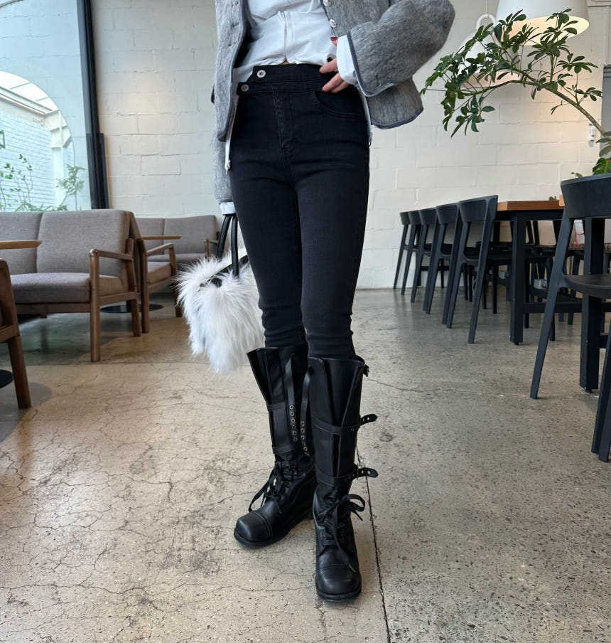 Corea del Sur Dongdaemun para Mujer Invierno Nuevo Cintura Alta Adelgazante Elástico Jeans de Pierna 1