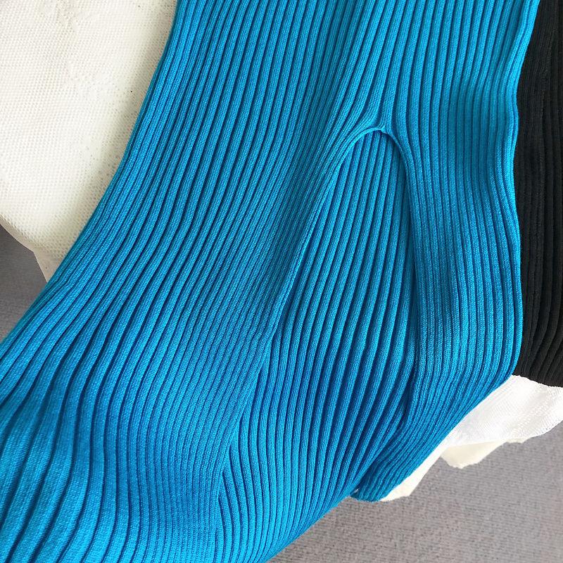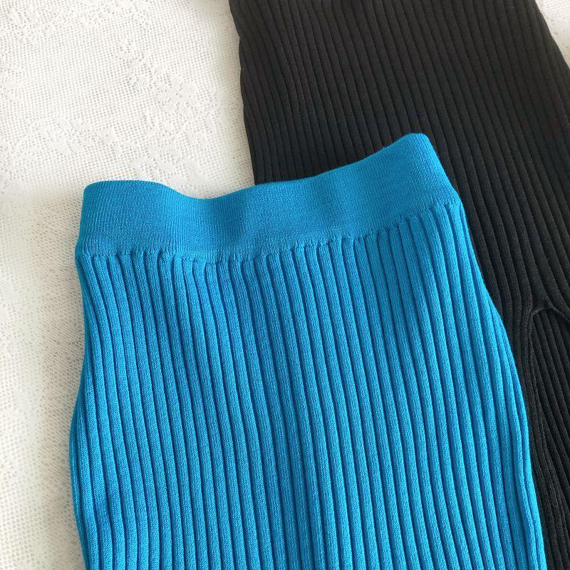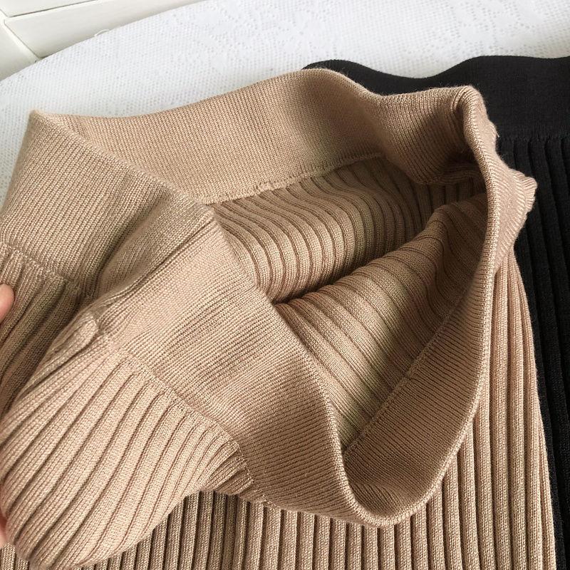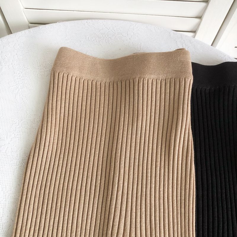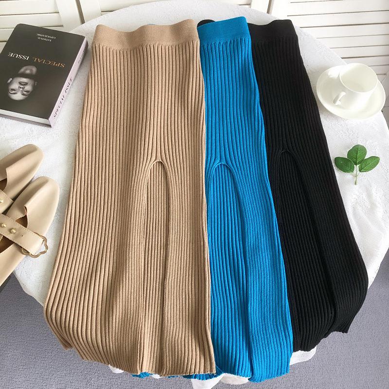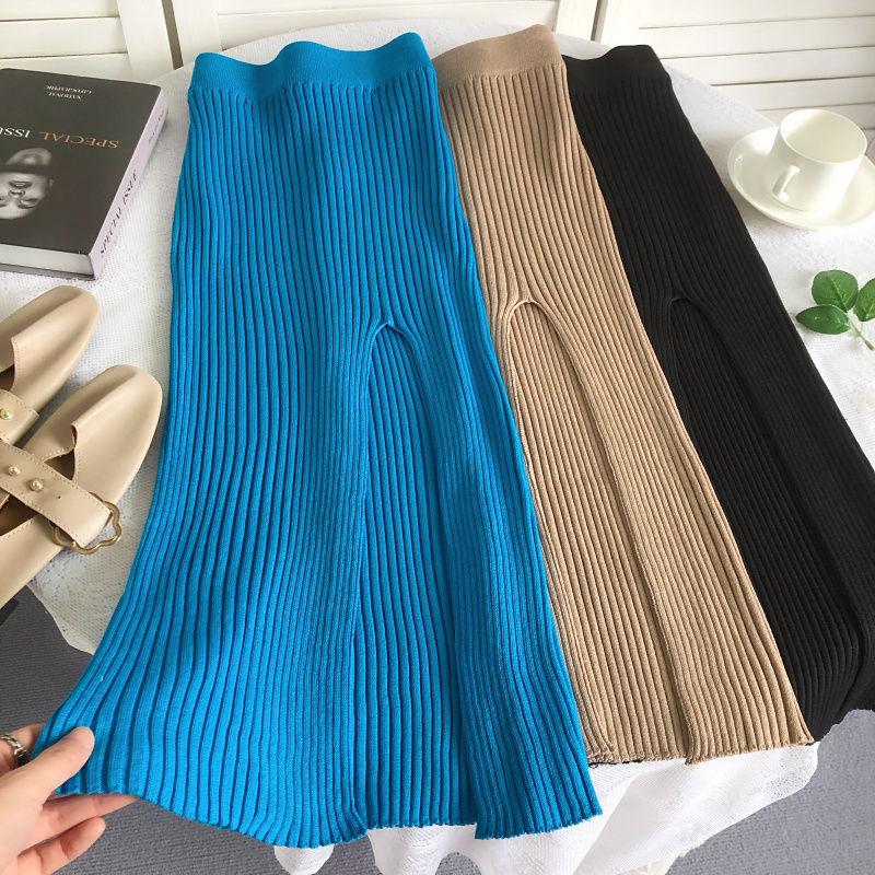 Falda Tejida Retro Estilo Coreano Negro 2024 Otoño e Invierno Nueva Cintura Alta Adelgazante Largo Medio Abertura Falda Sexy