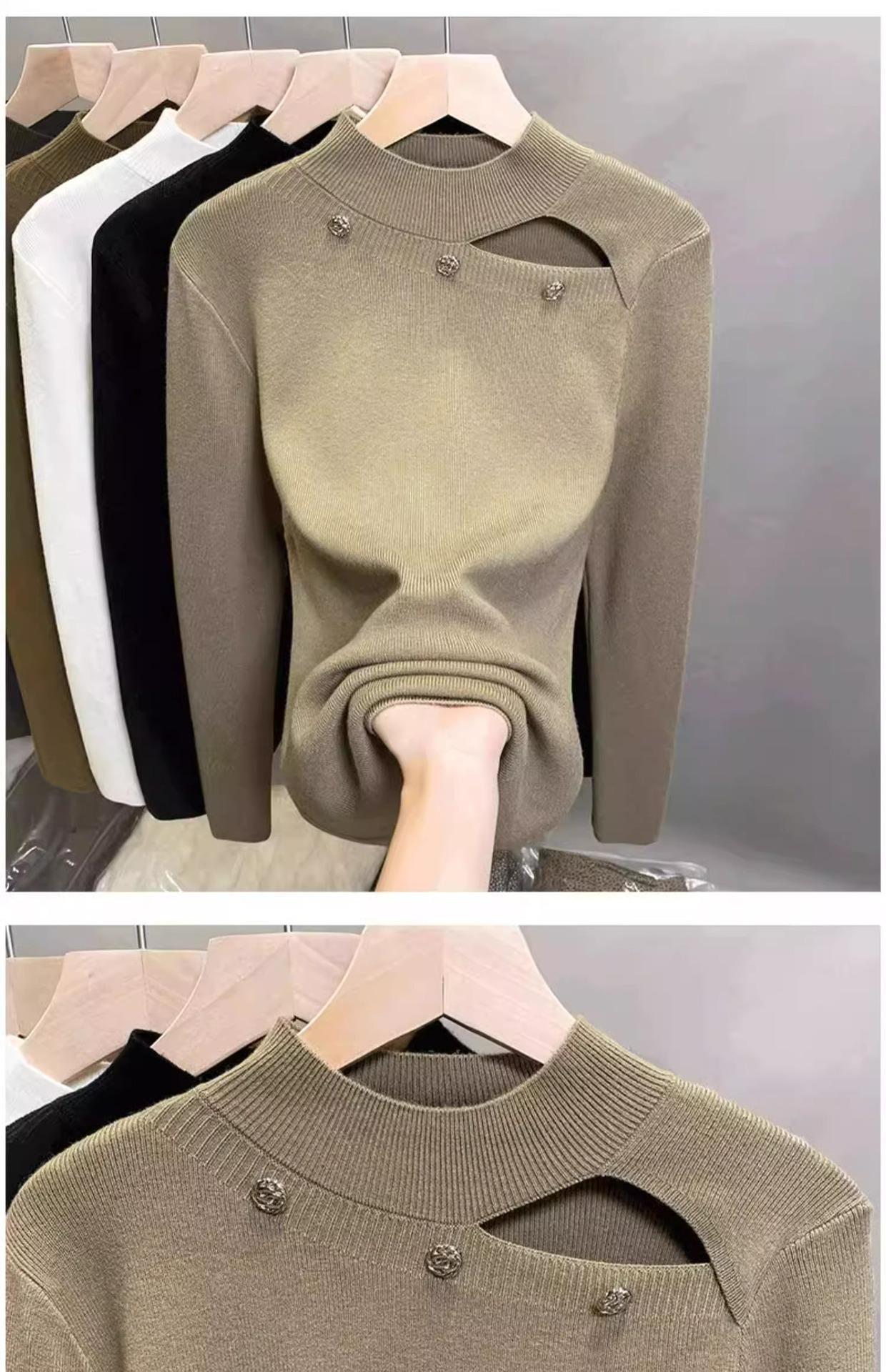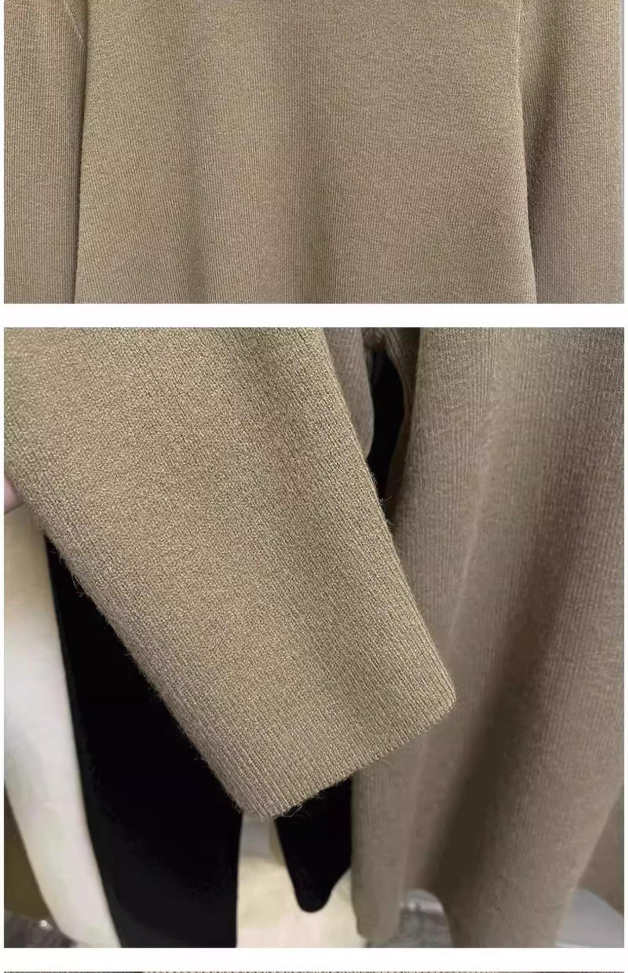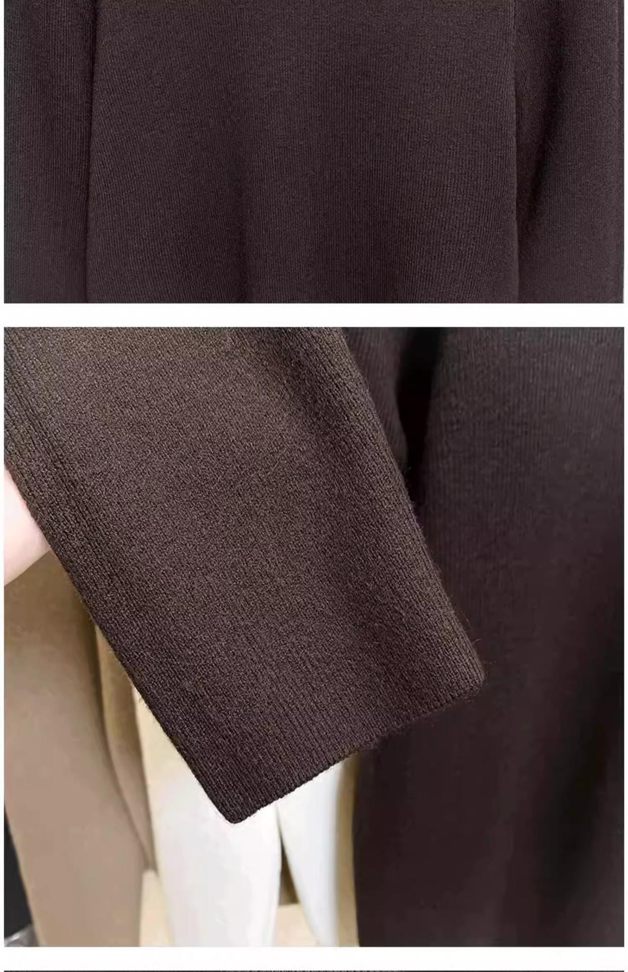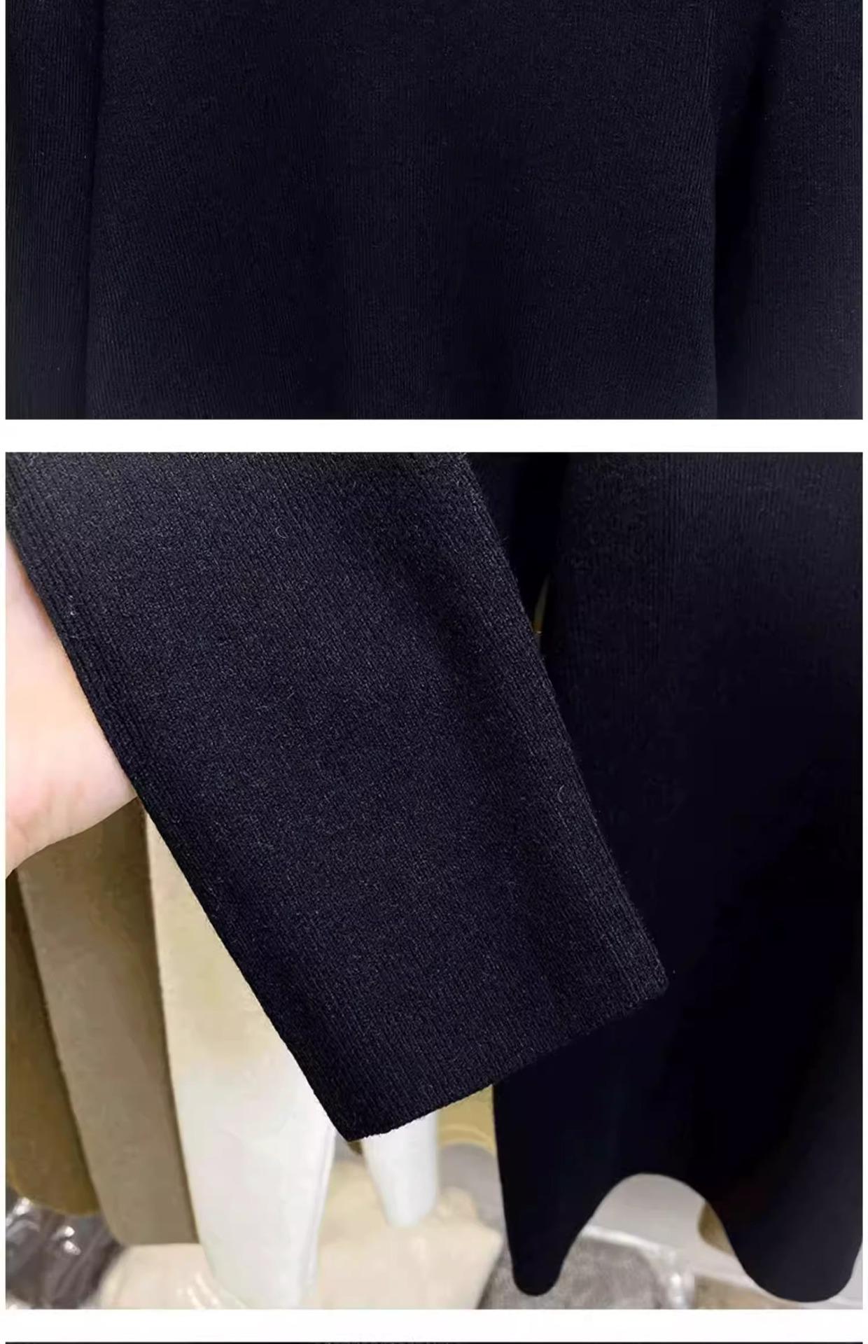 Suéter de Punto de Cuello Alto para Mujer de Talla Grande Otoño e Invierno Diseño Calado Combinación Total Suéter de Manga Larga Adelgazante Ajustado para Mujer 2623