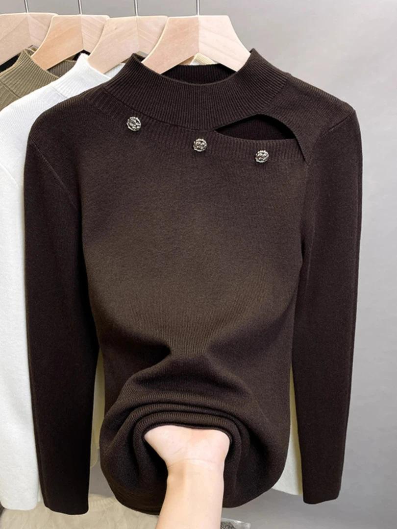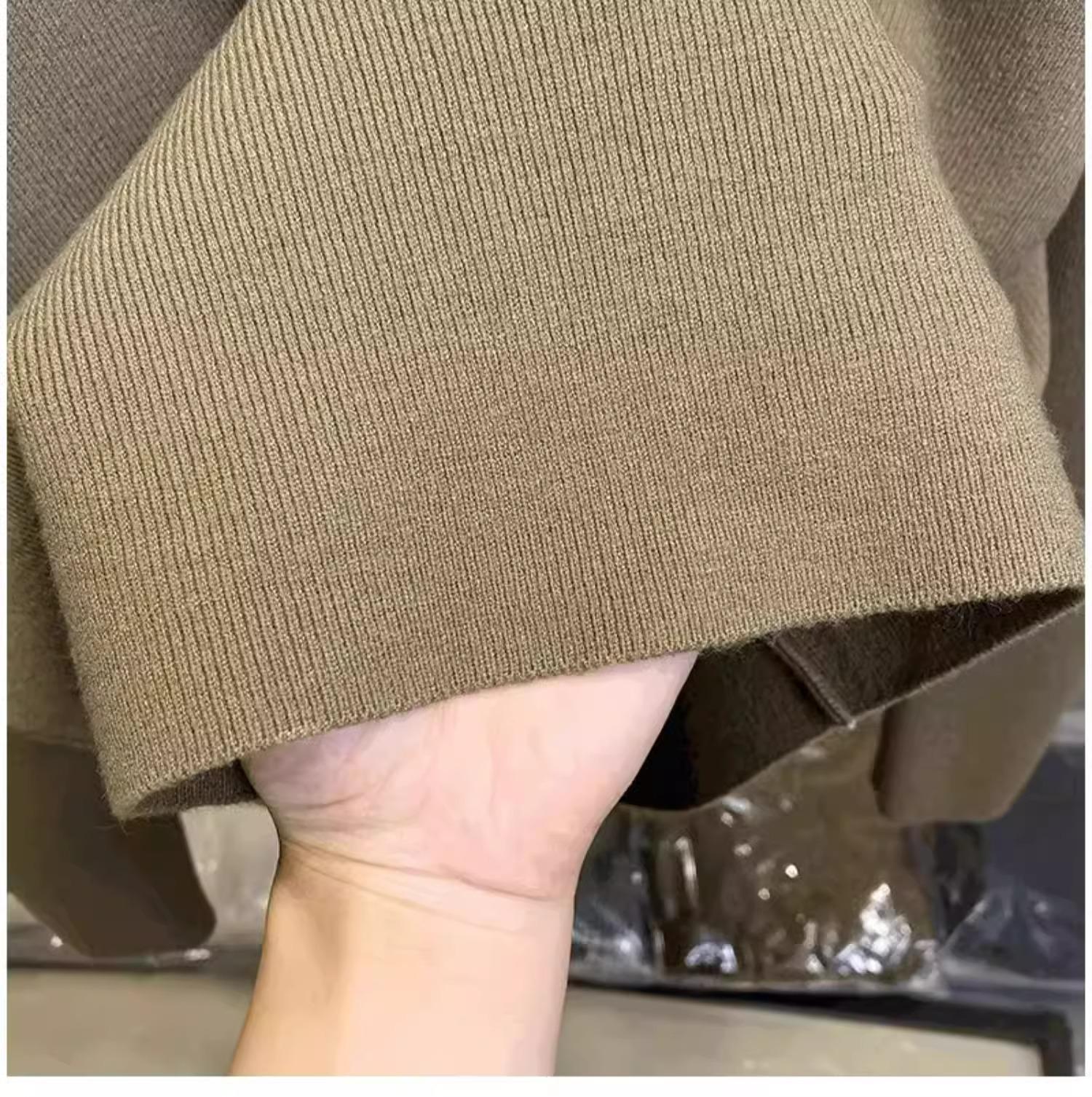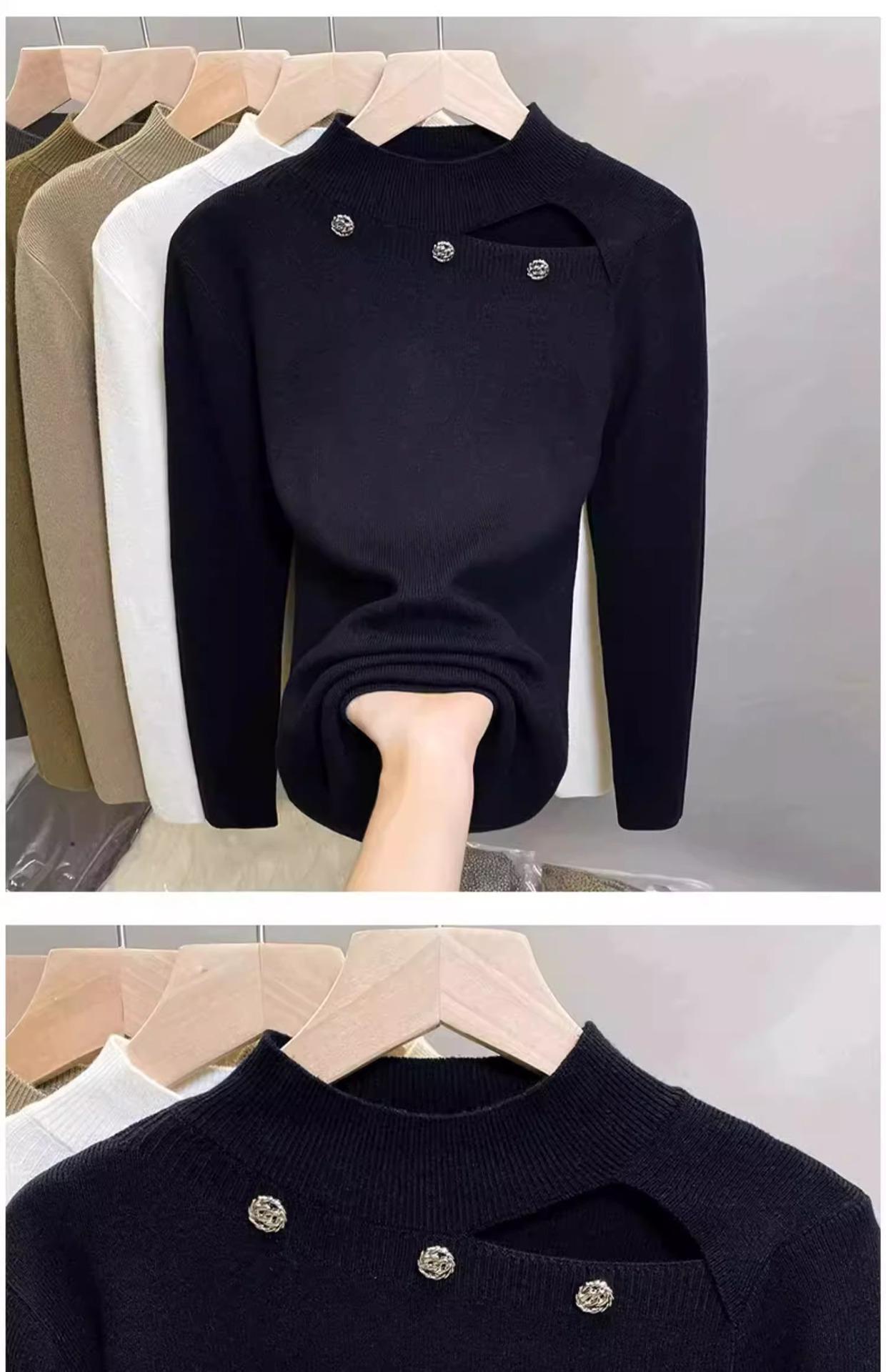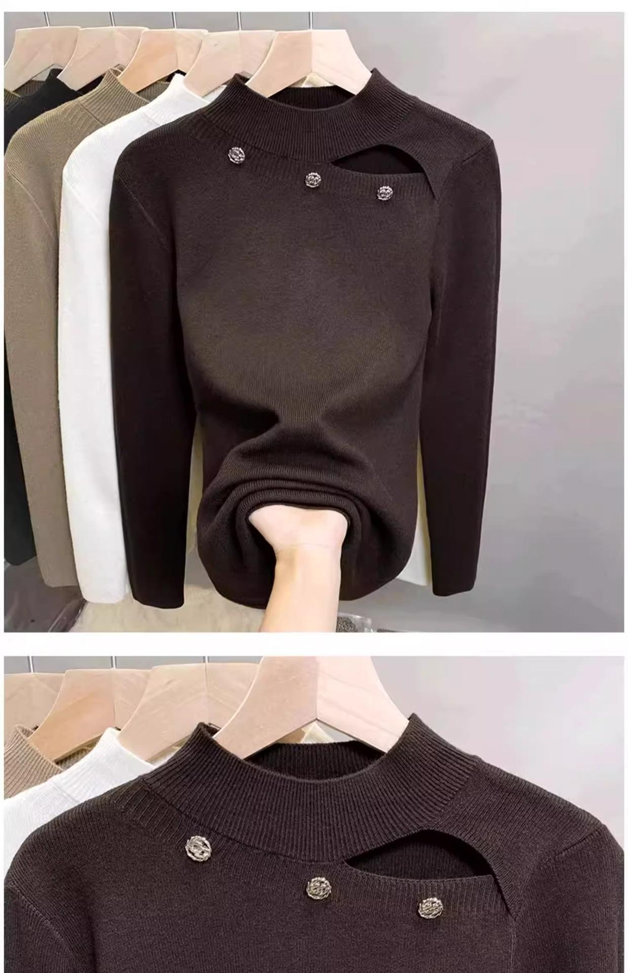 Suéter de Punto de Cuello Alto para Mujer de Talla Grande Otoño e Invierno Diseño Calado Combinación Total Suéter de Manga Larga Adelgazante Ajustado para Mujer 2623