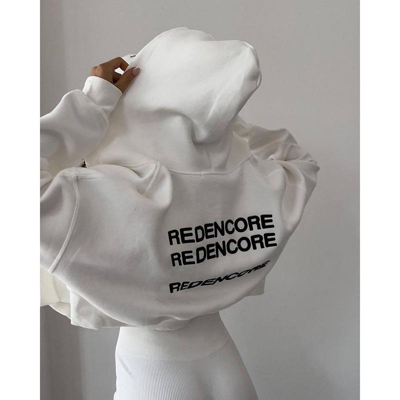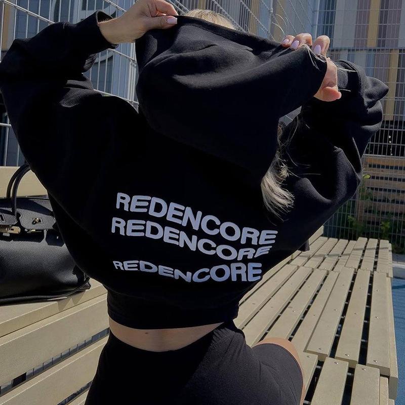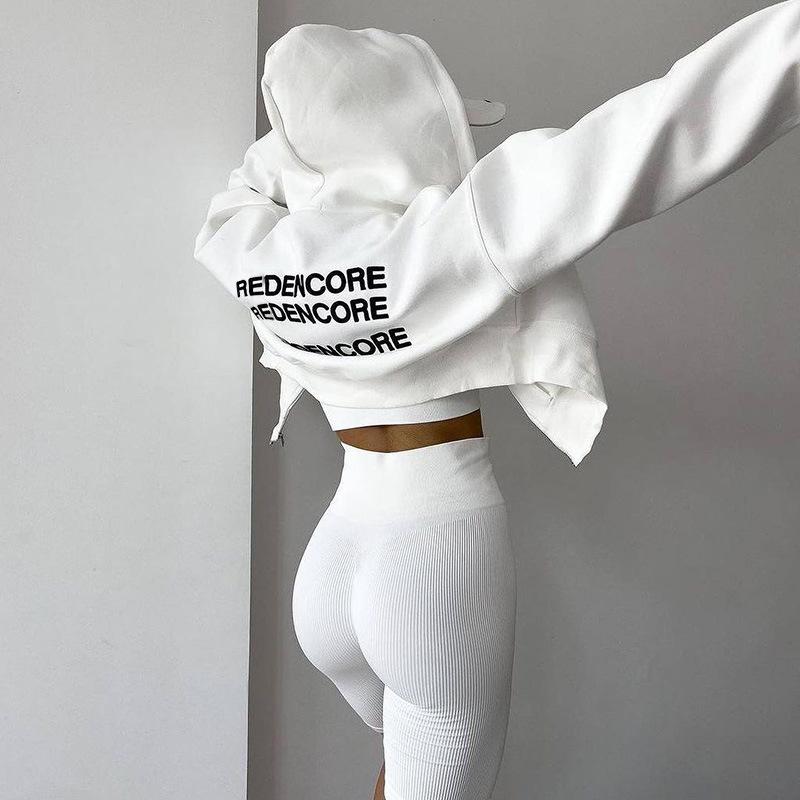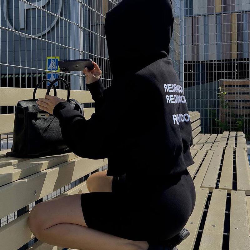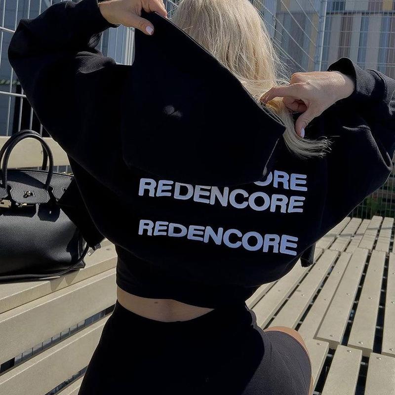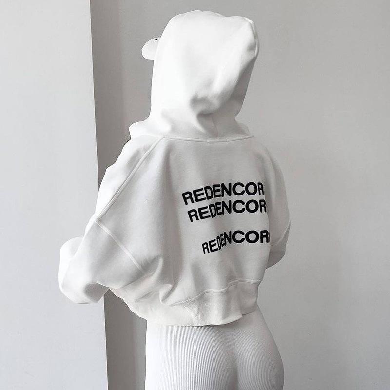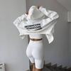 Cárdigan corto europeo y americano con estampado de letras, sudadera con capucha, otoño e invierno, nueva prenda holgada, sexy, deportiva de manga larga.