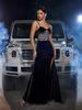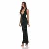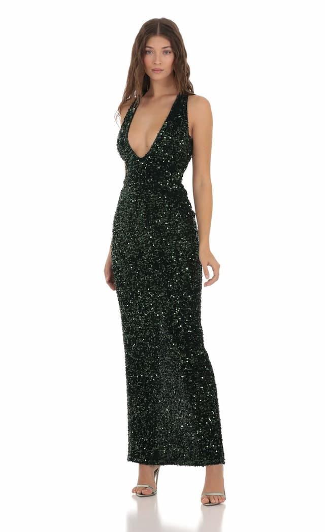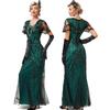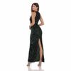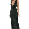 Ropa de Trabajo Elegante con Lentejuelas Transfronteriza Europea y Americana Color Puro Cintura Alta Cuello en V Elegante Terciopelo Verde Oscuro Banquete Falda Larga Vestido de Noche