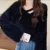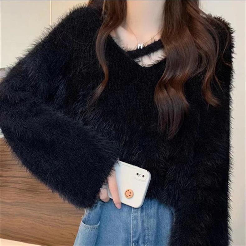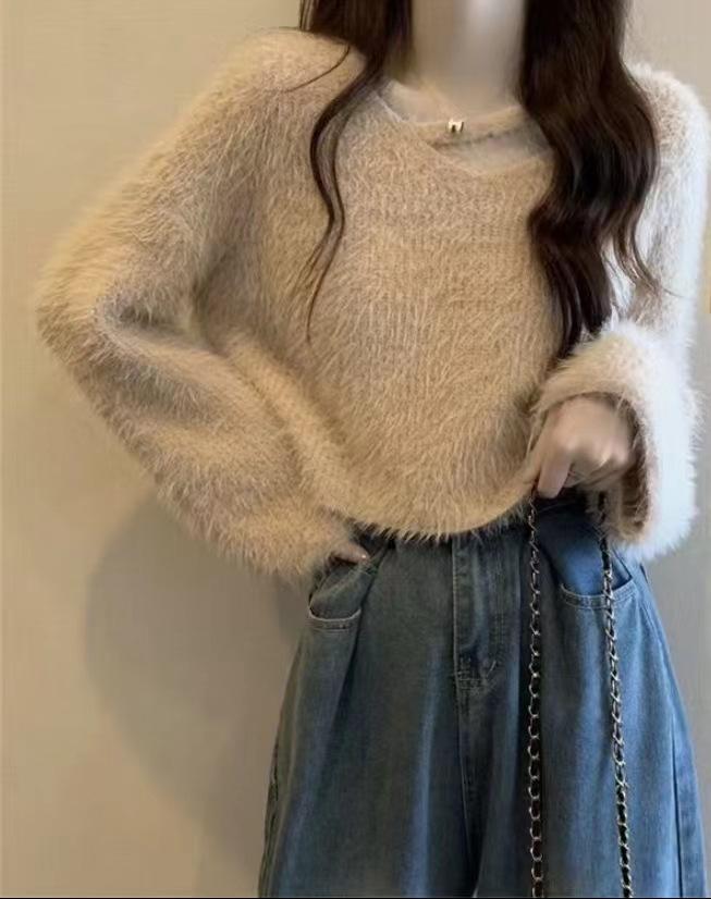Diseño de estilo coreano Sentido Imitación Visón Terciopelo Tejido Camiseta Base Top para Mujer Otoño e Invierno Nueva Moda Todo Combinable Suave Cera Suéter Pulóver