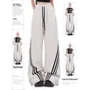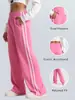 Pantalones deportivos casuales a rayas estilo americano para mujer, pantalones deportivos de pierna ancha con barras paralelas para mujer, pantalones largos rectos sueltos de estilo perezoso retro