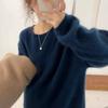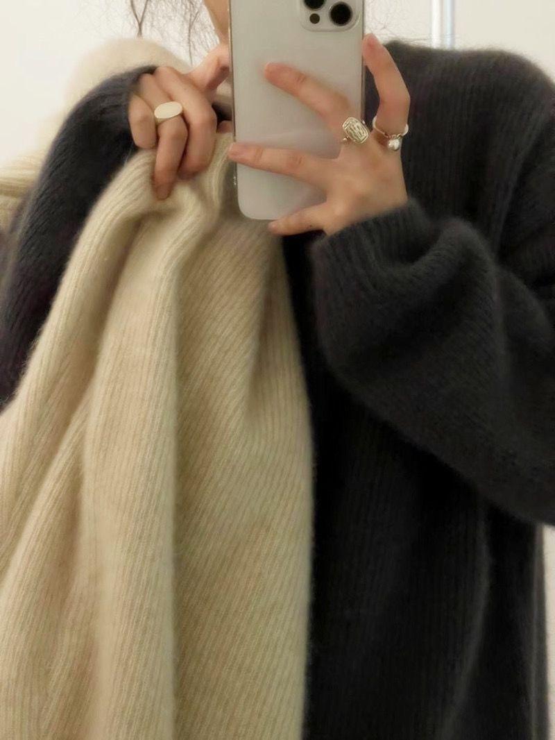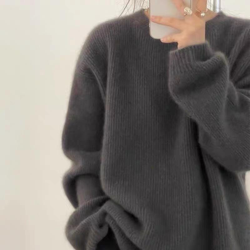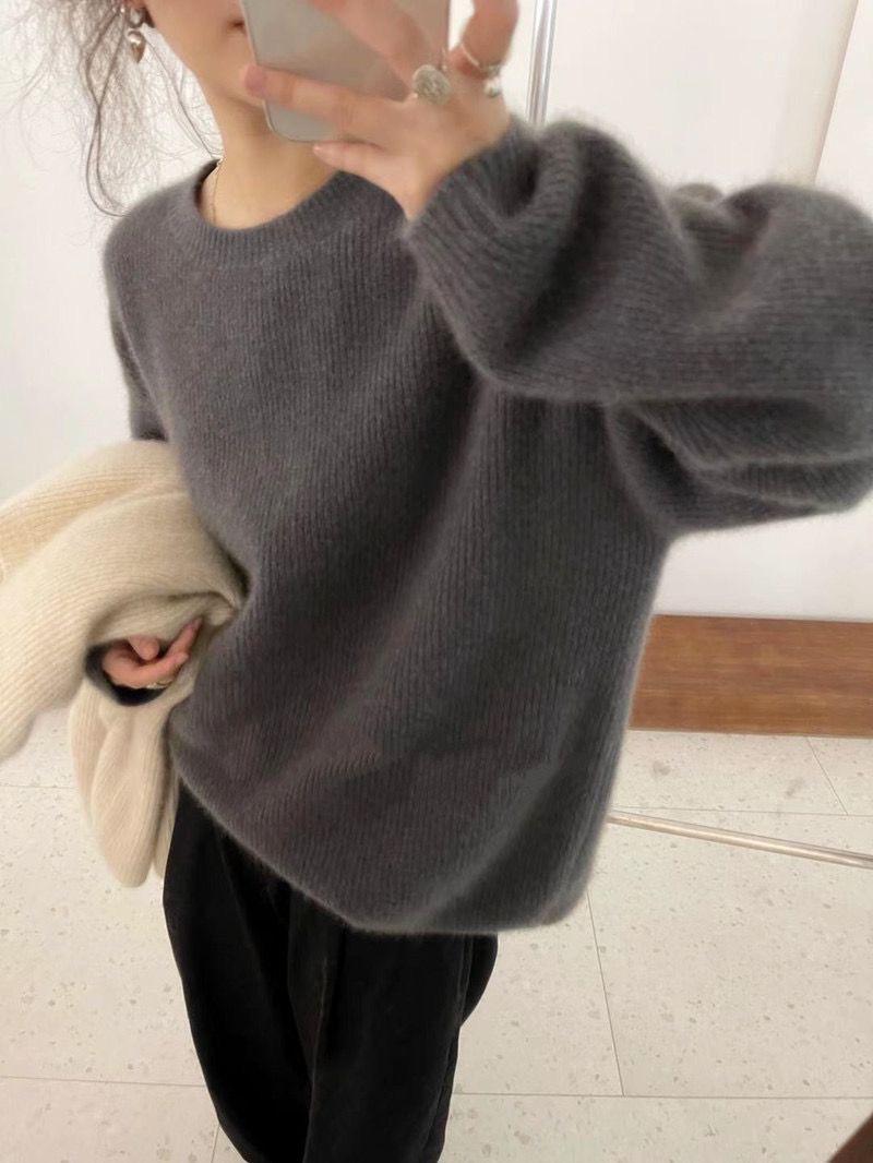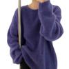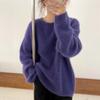 Suéter de lana pura con cuello redondo para mujer, jersey holgado de color liso, elegante, informal, suave y encerado, de manga larga
