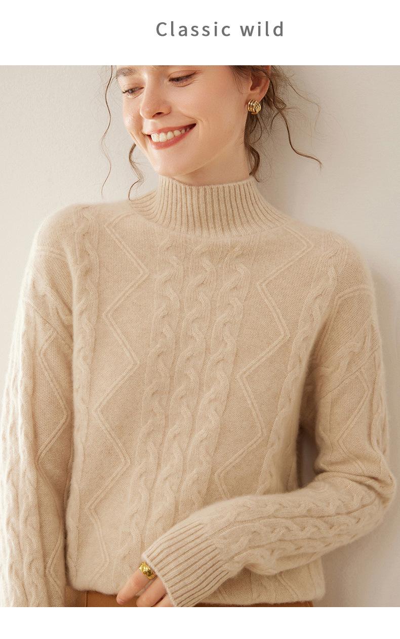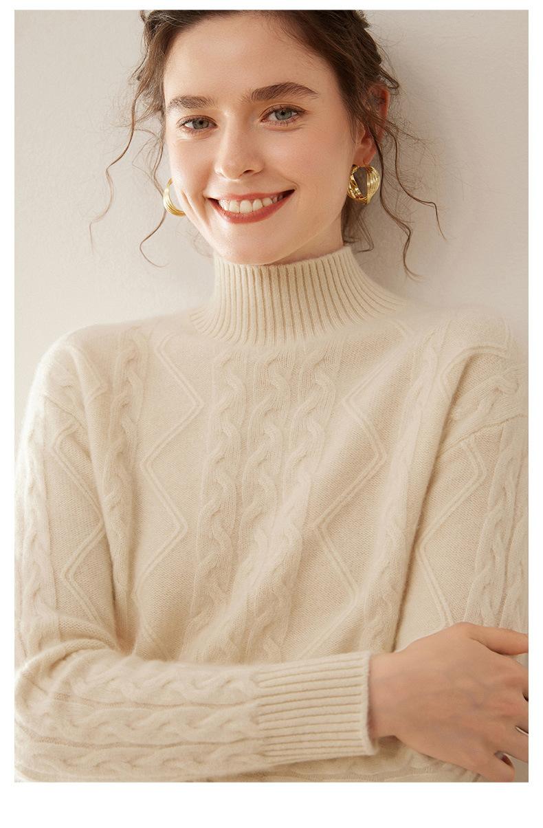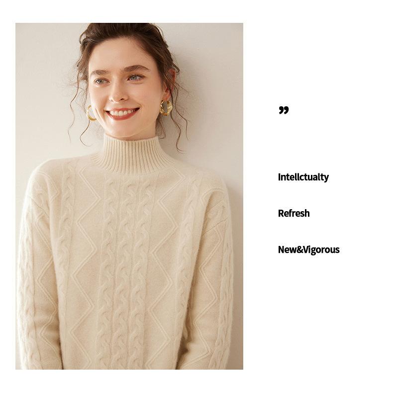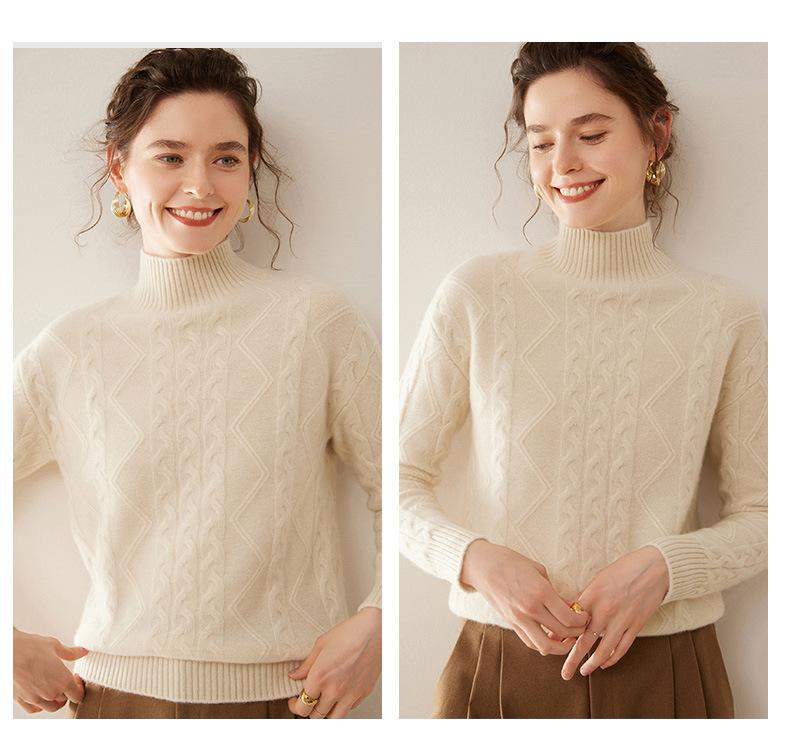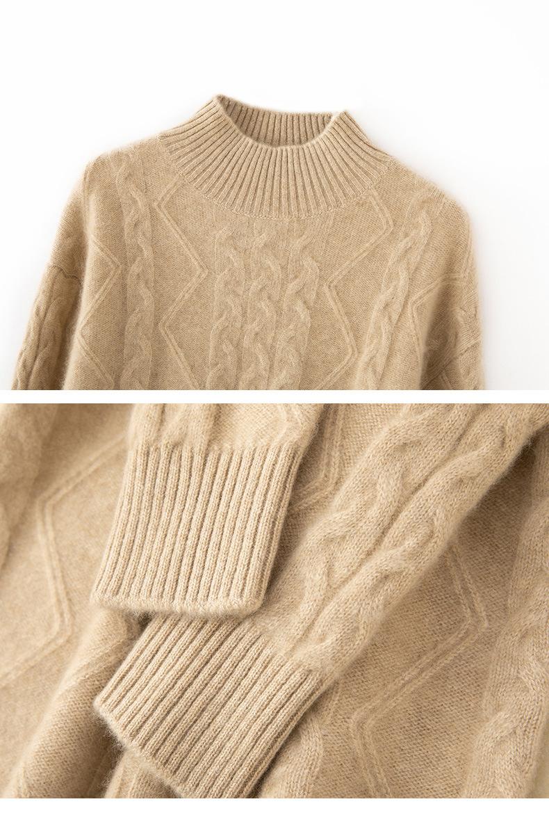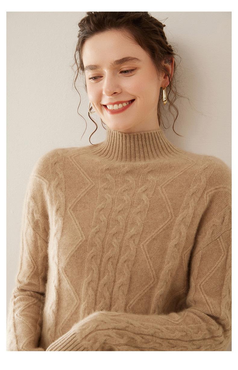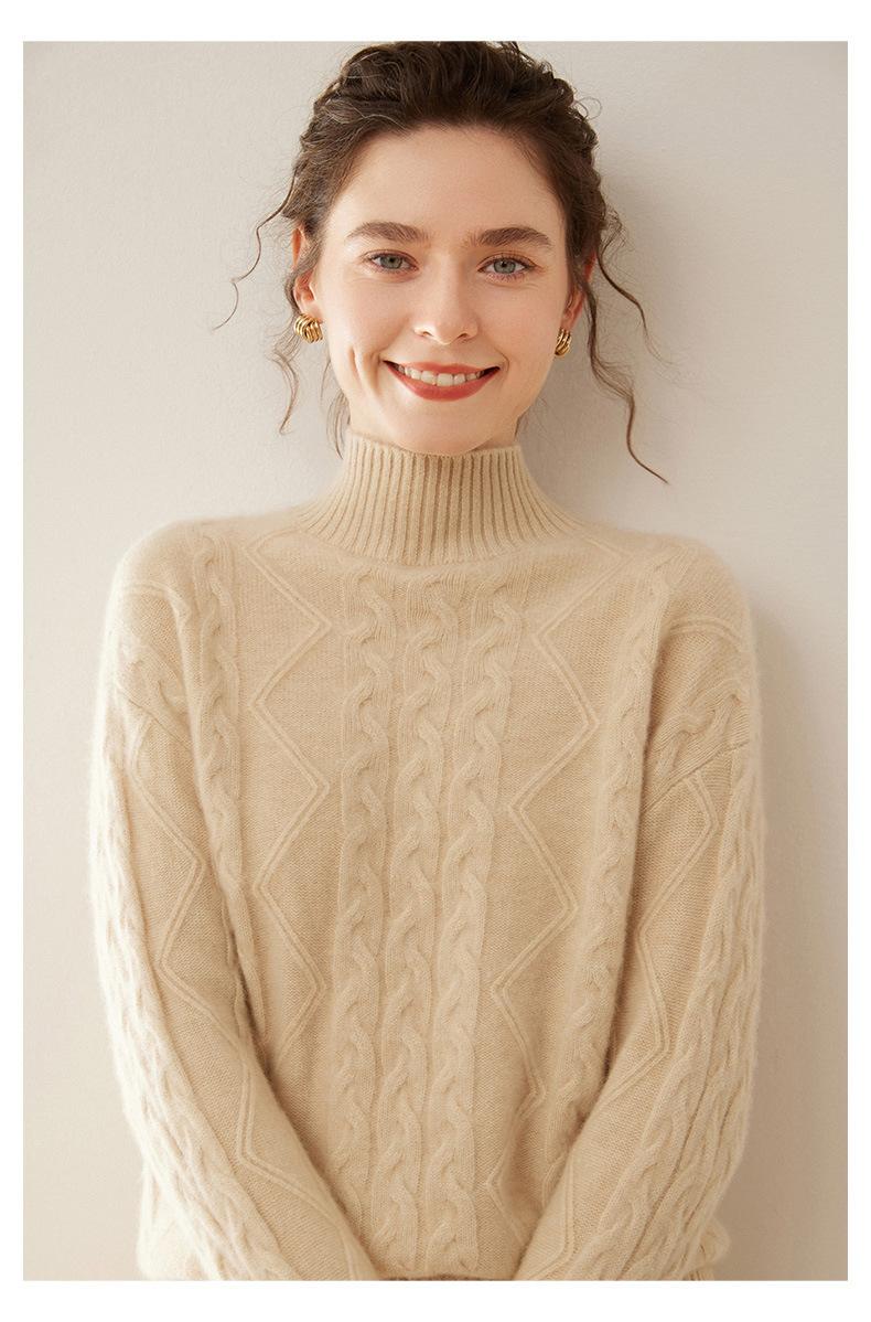 Suéter de punto de cachemira para mujer, nuevo, de otoño e invierno, grueso, con hombros caídos y cuello medio alto, camisa holgada adelgazante de base de cachemira
