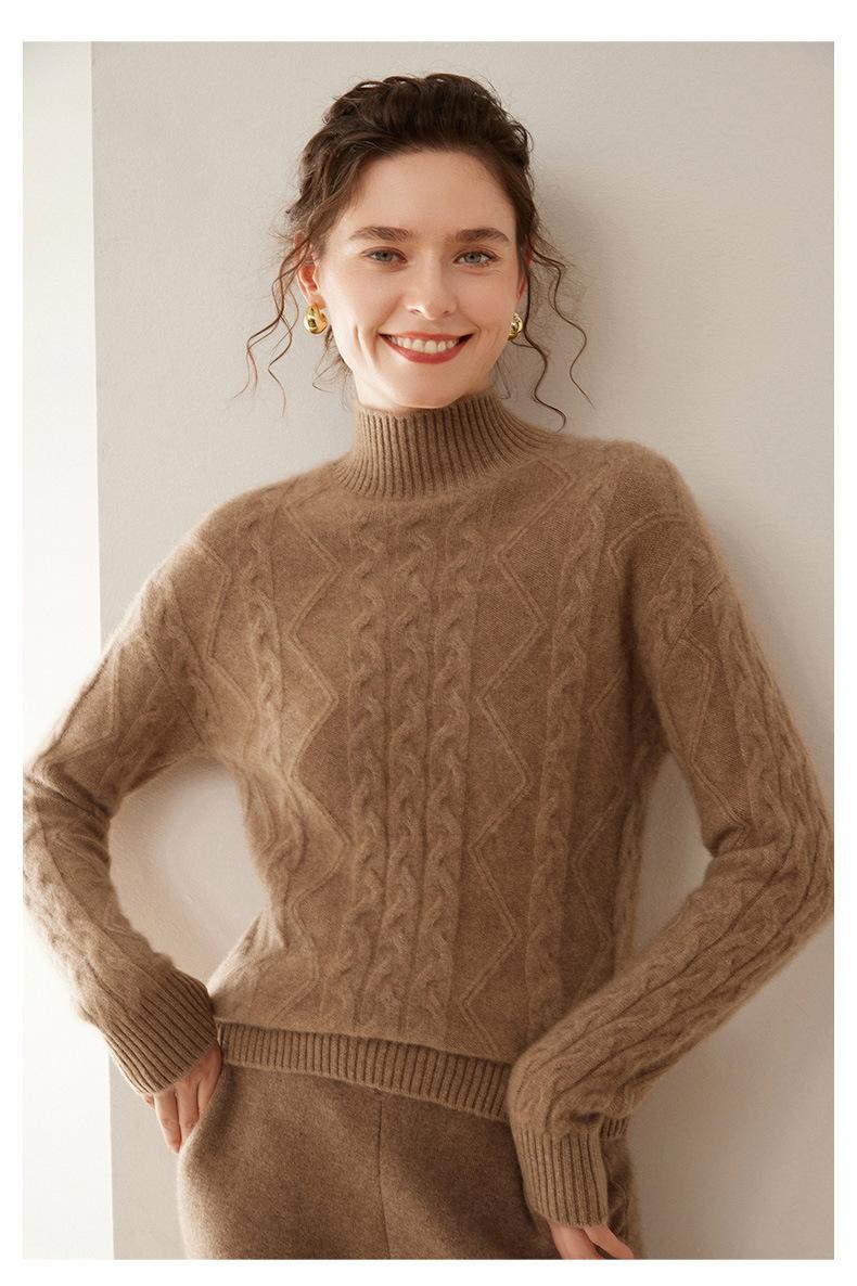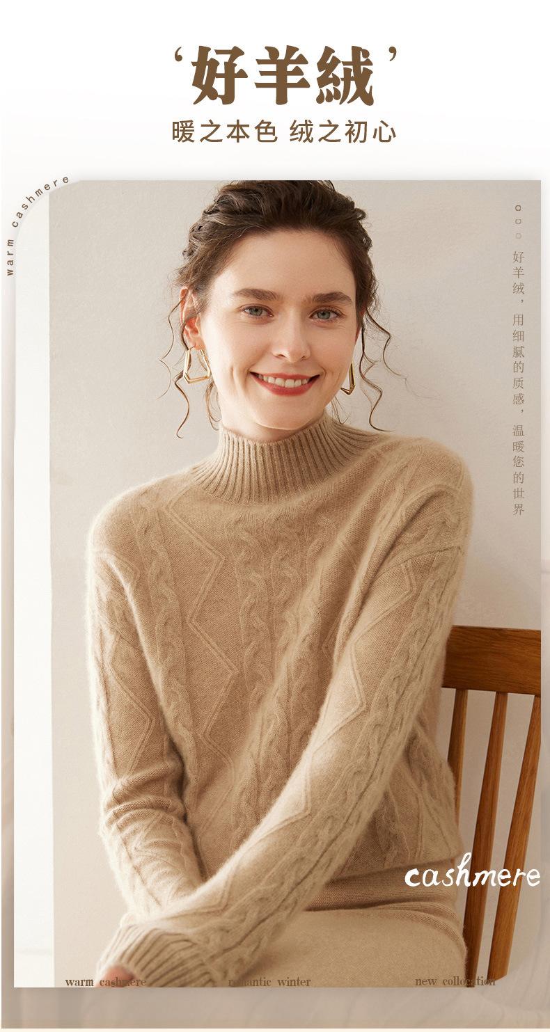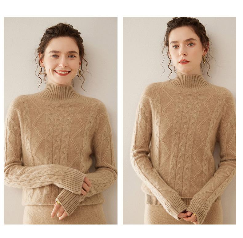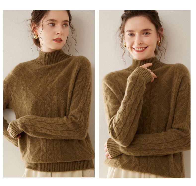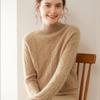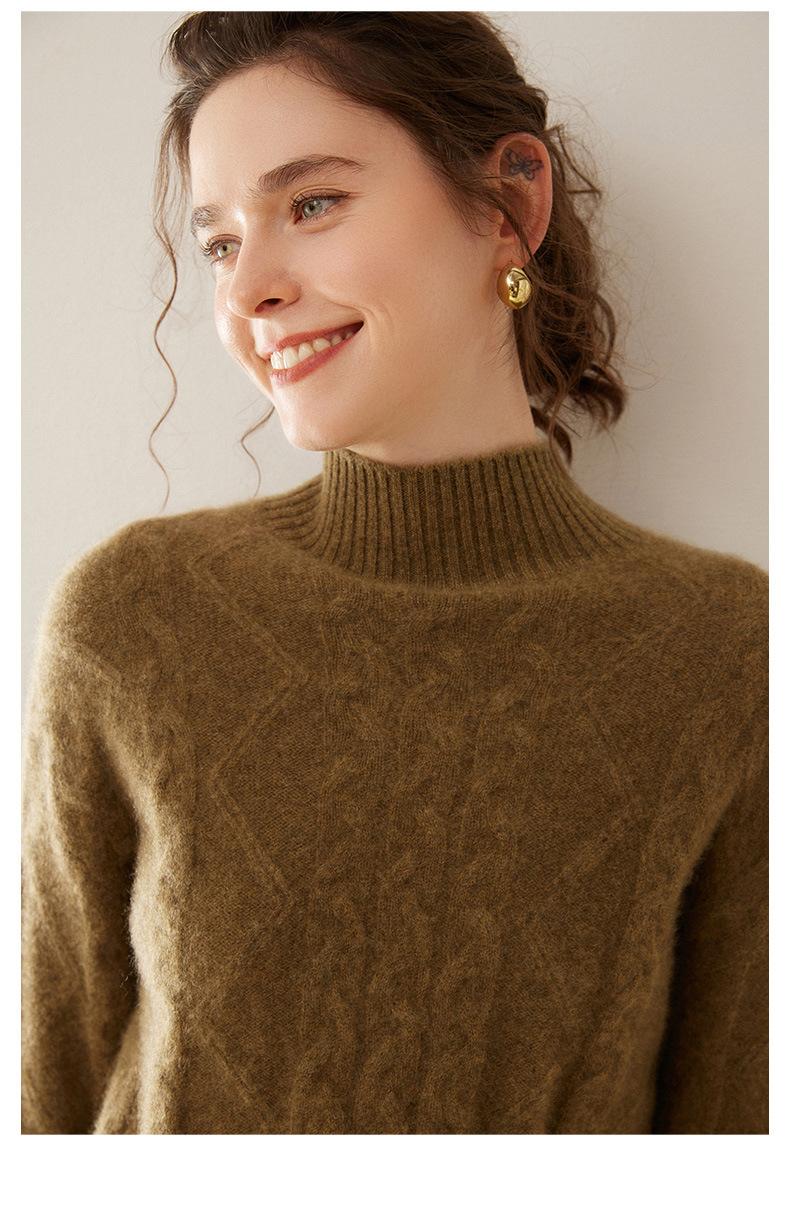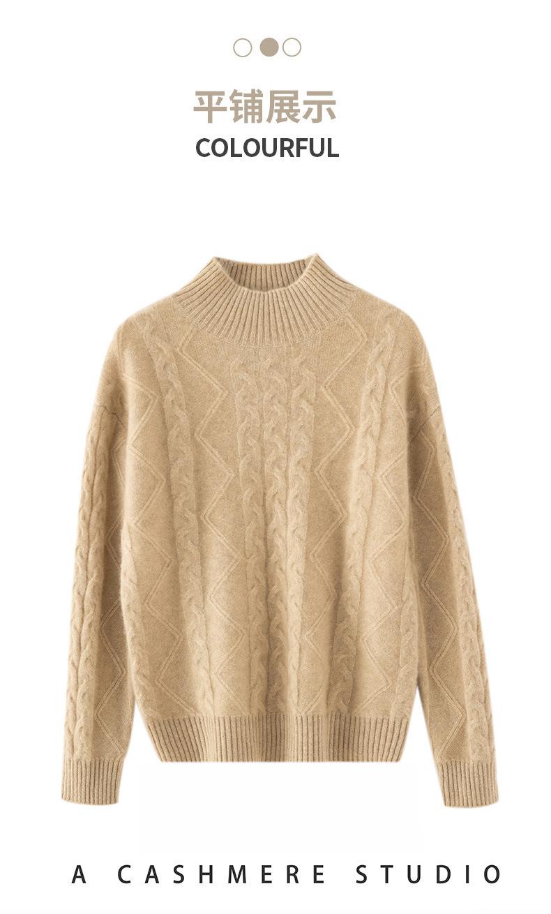 Suéter de punto de cachemira para mujer, nuevo, de otoño e invierno, grueso, con hombros caídos y cuello medio alto, camisa holgada adelgazante de base de cachemira