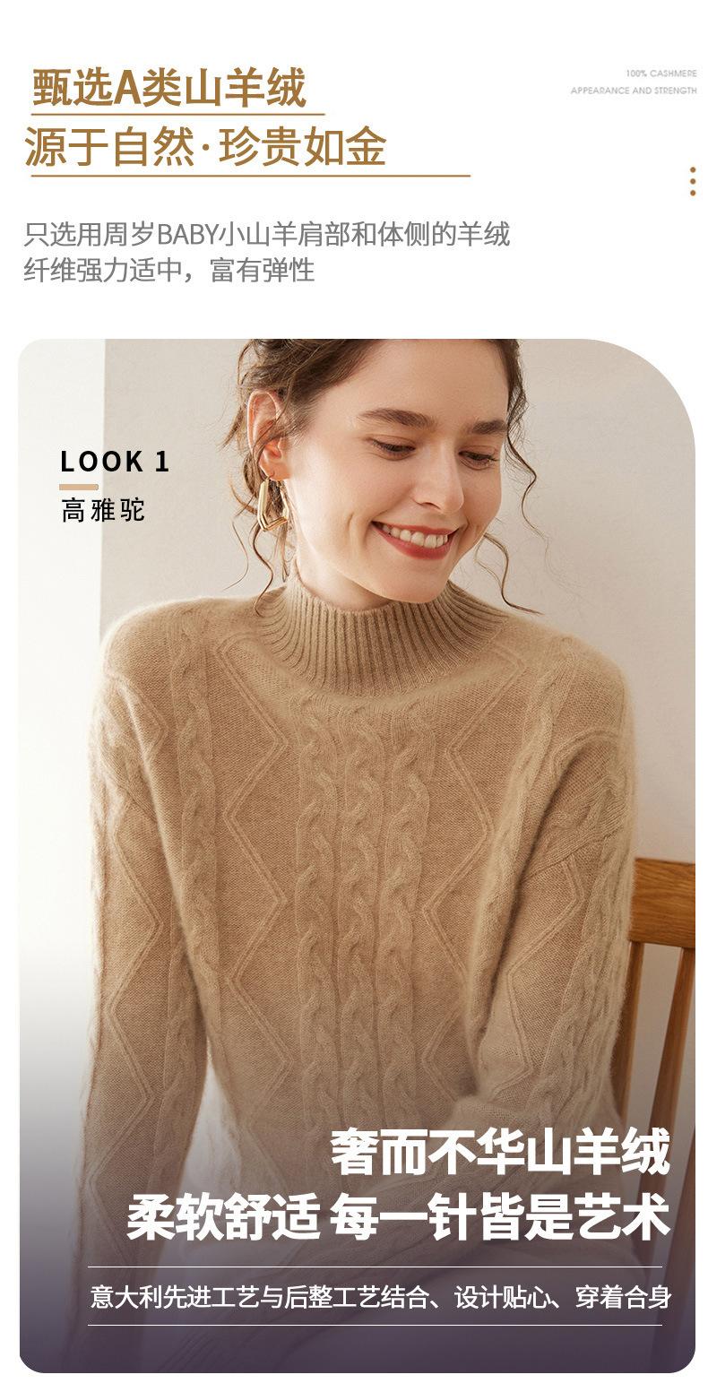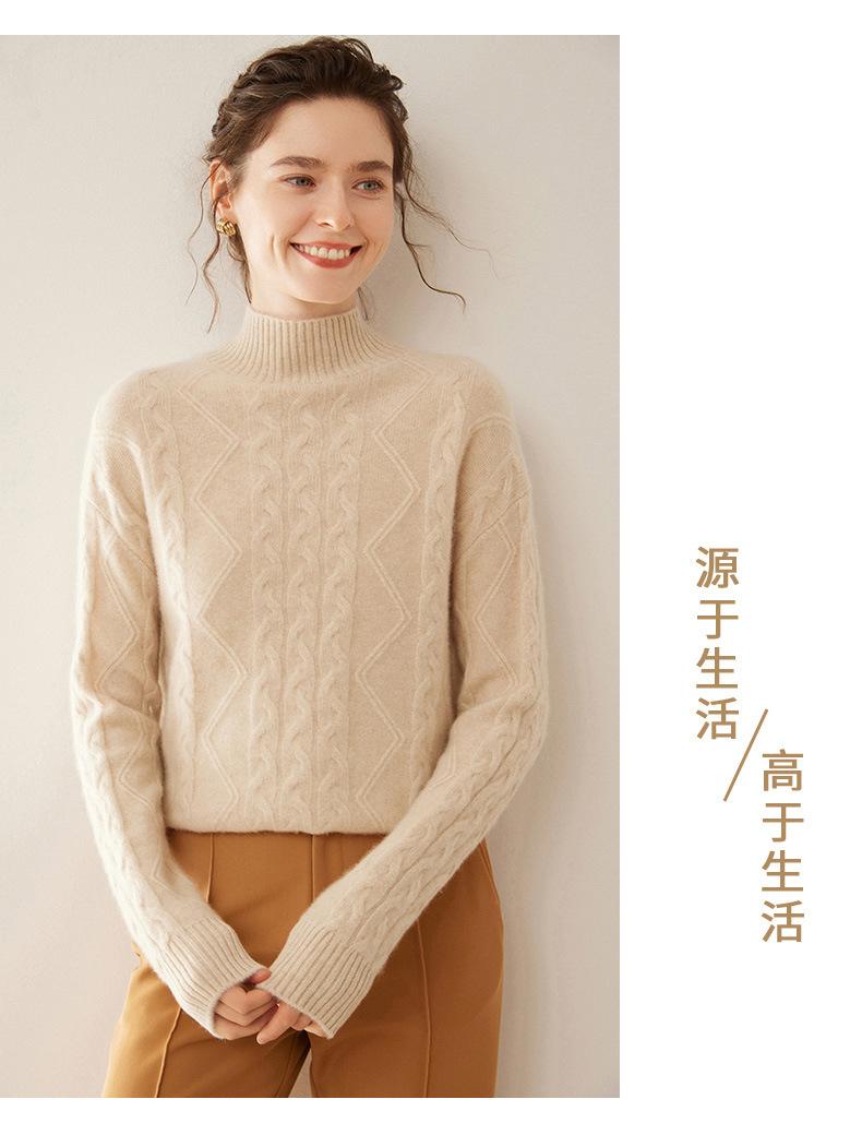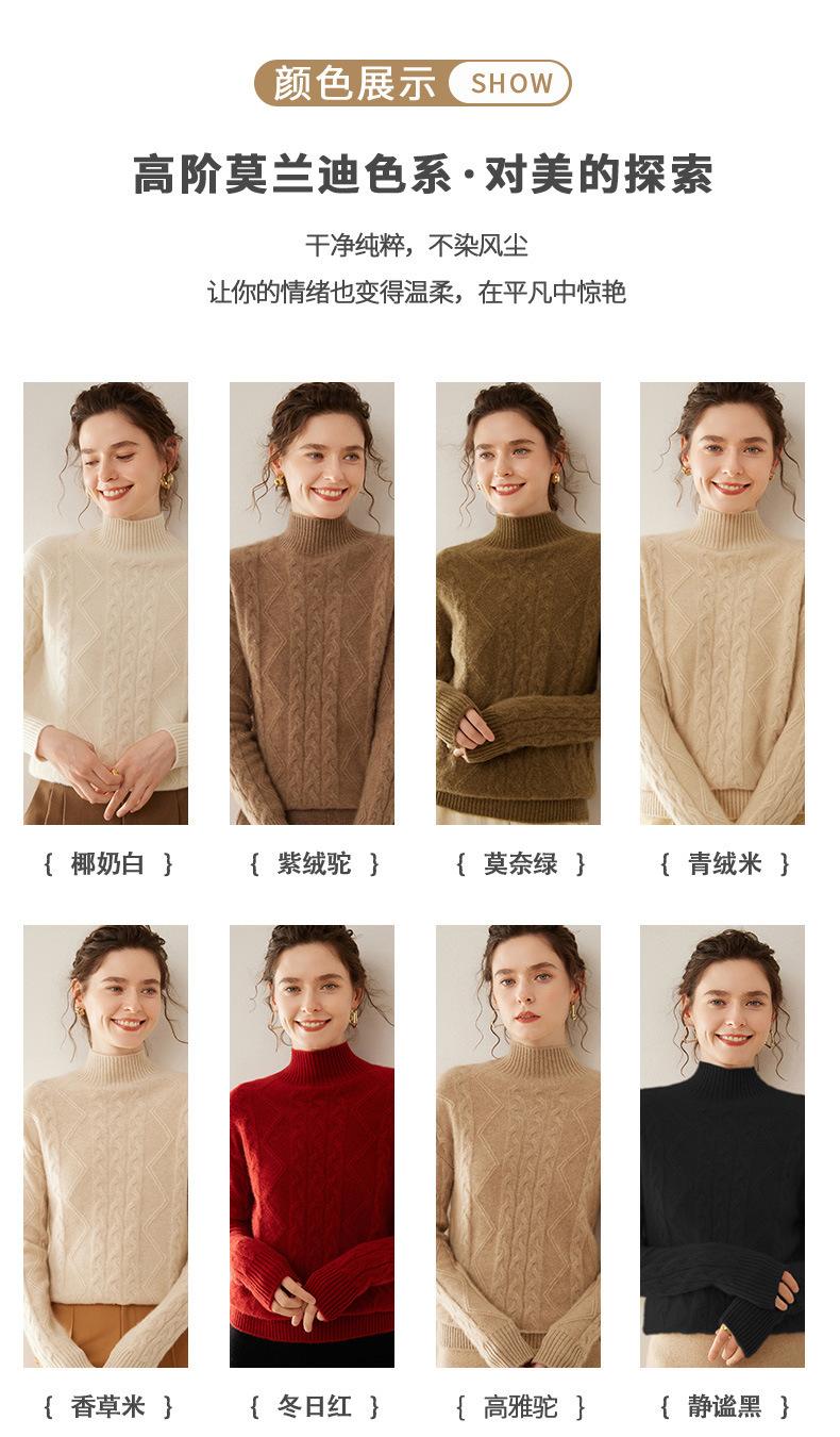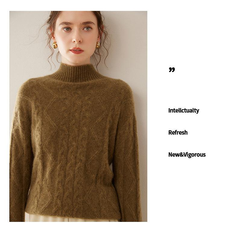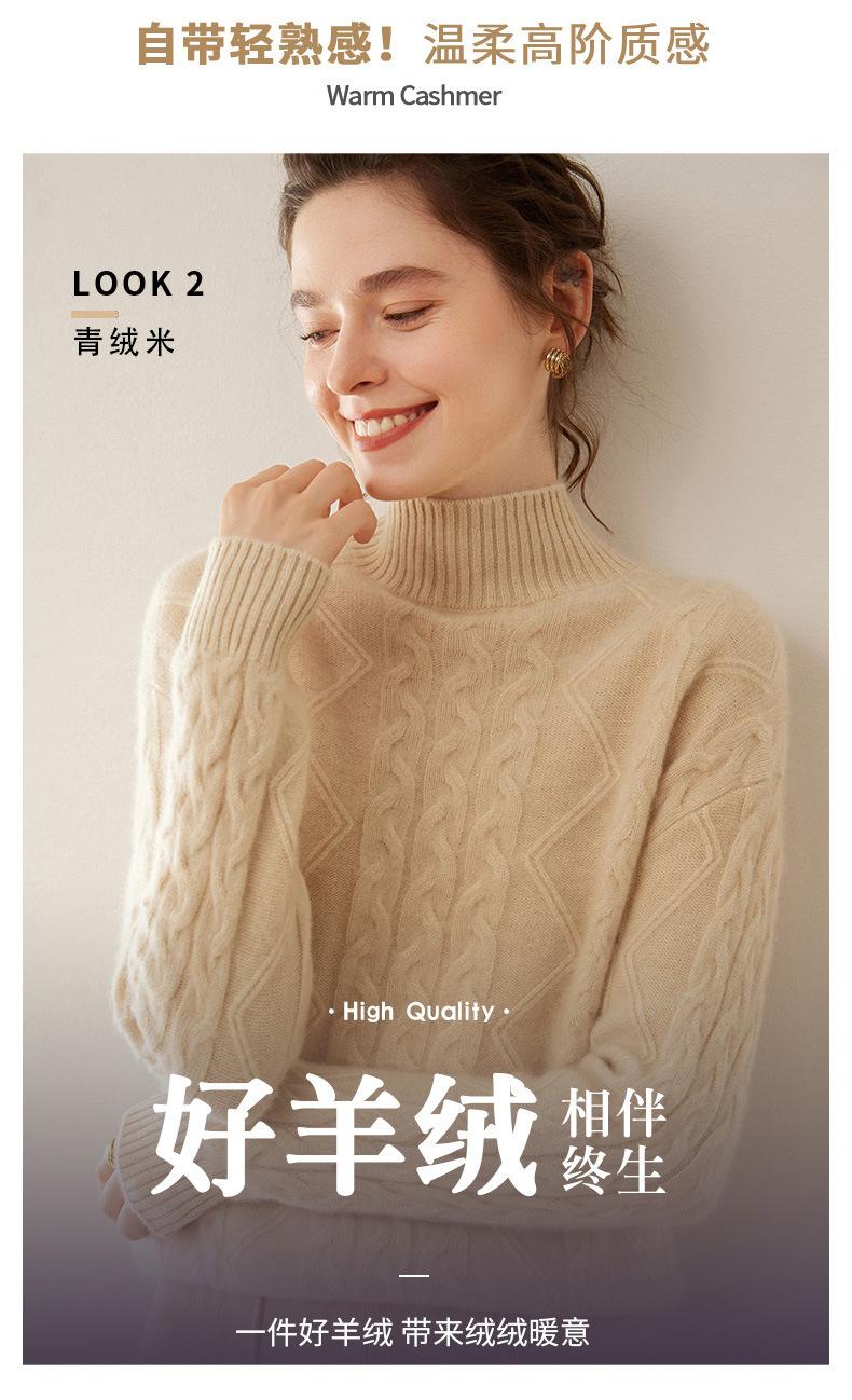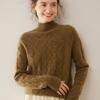 Suéter de punto de cachemira para mujer, nuevo, de otoño e invierno, grueso, con hombros caídos y cuello medio alto, camisa holgada adelgazante de base de cachemira