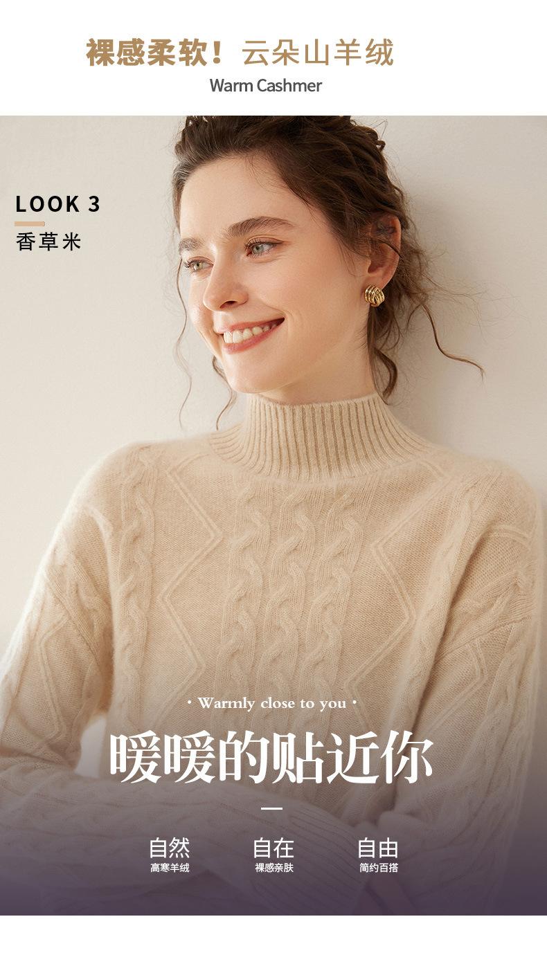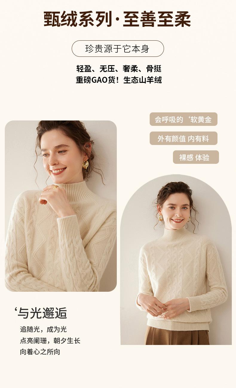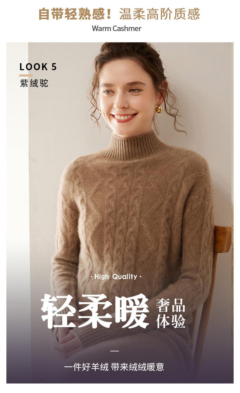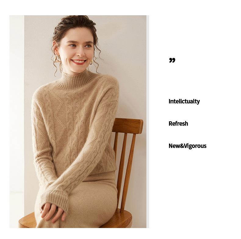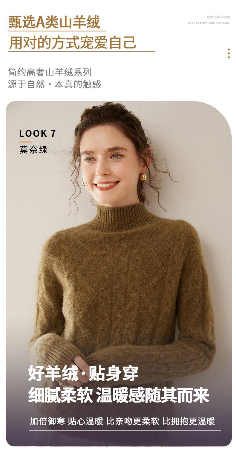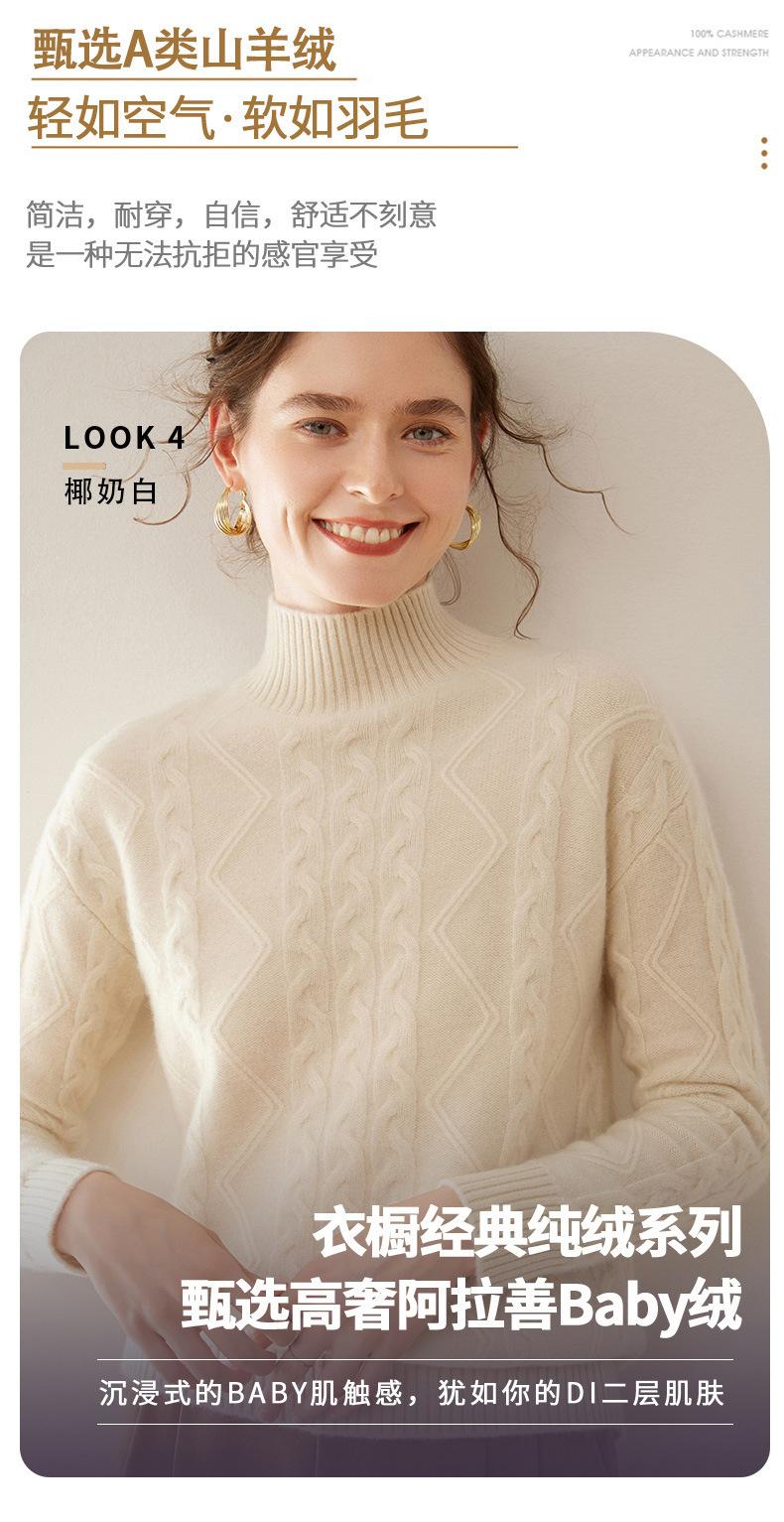 Suéter de punto de cachemira para mujer, nuevo, de otoño e invierno, grueso, con hombros caídos y cuello medio alto, camisa holgada adelgazante de base de cachemira