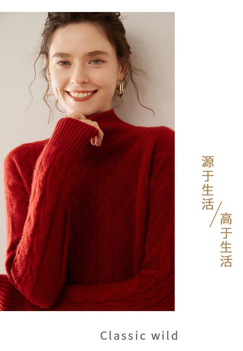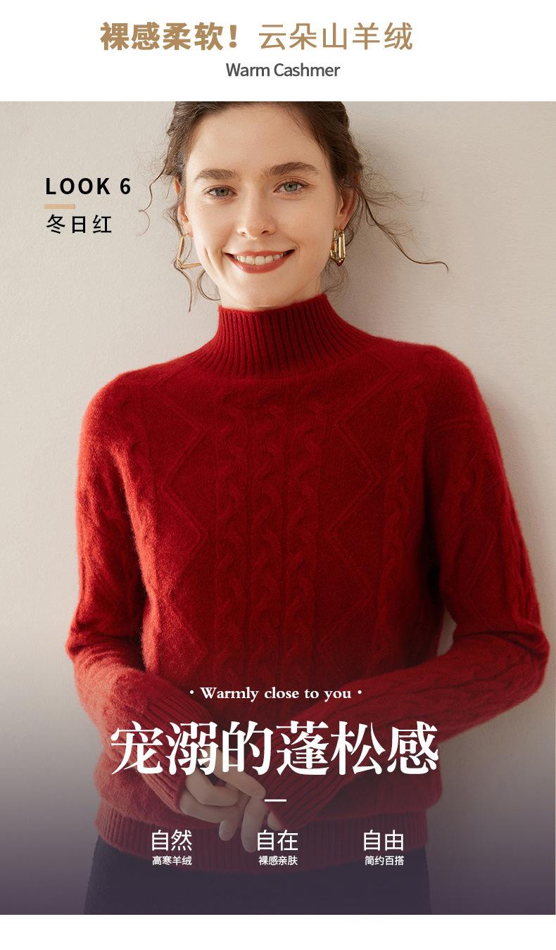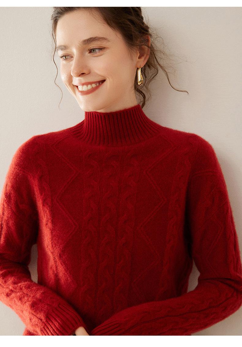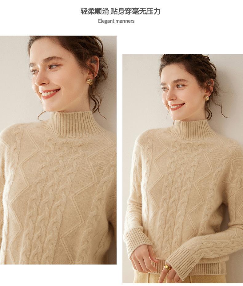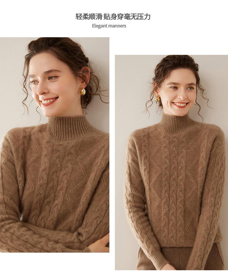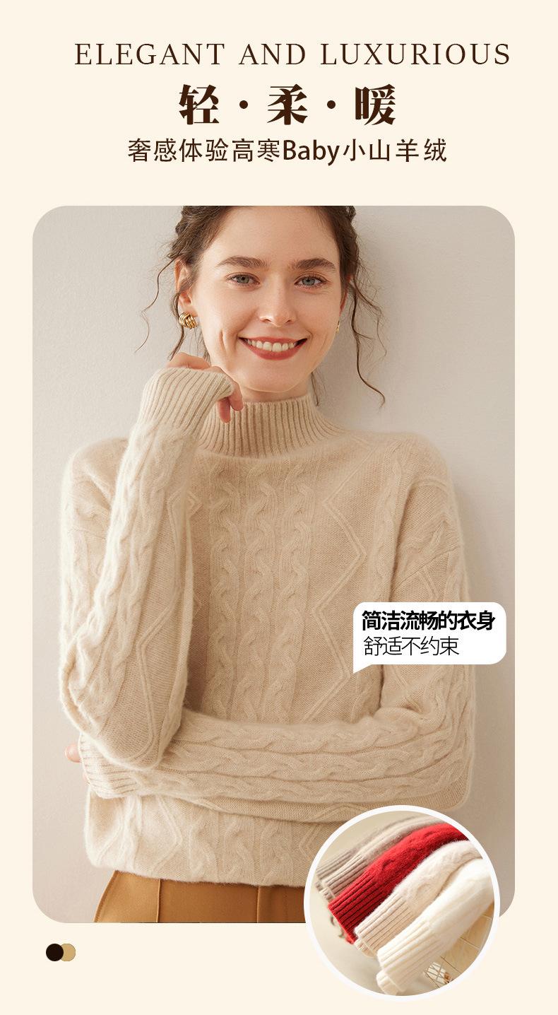 Suéter de punto de cachemira para mujer, nuevo, de otoño e invierno, grueso, con hombros caídos y cuello medio alto, camisa holgada adelgazante de base de cachemira