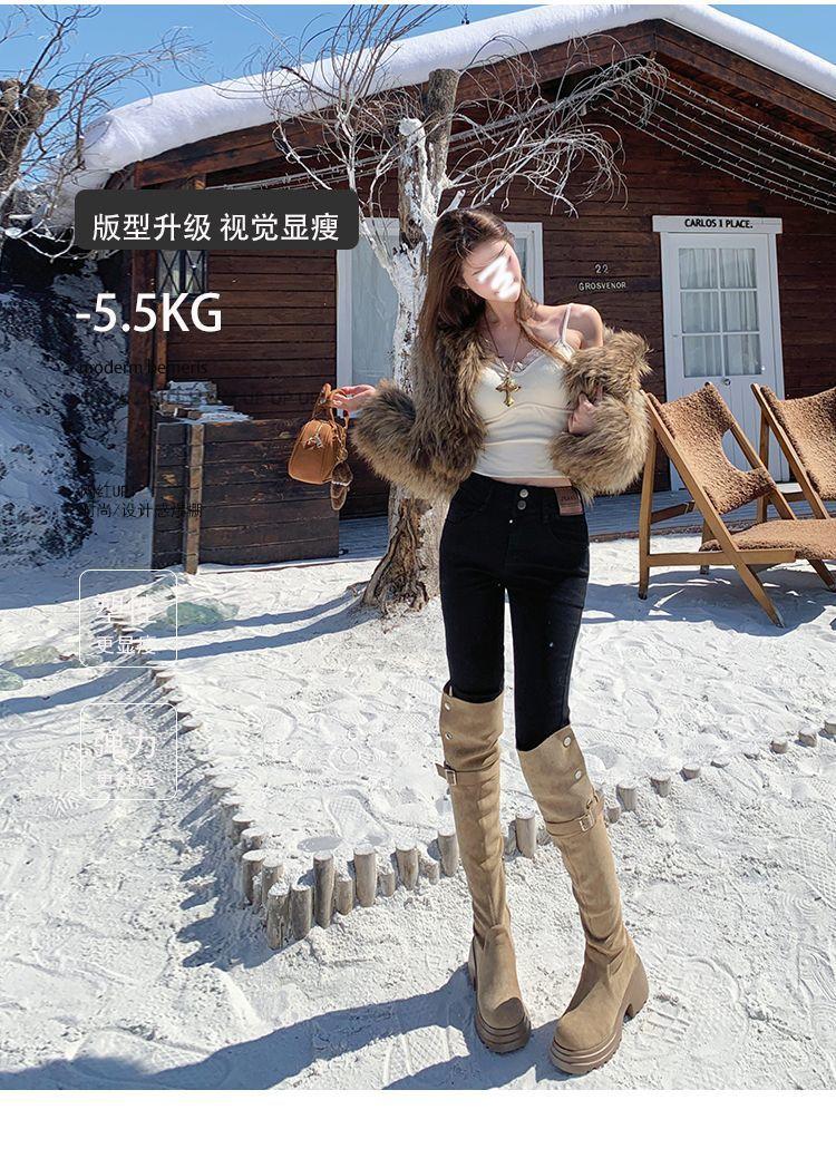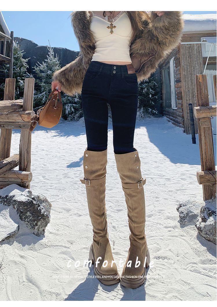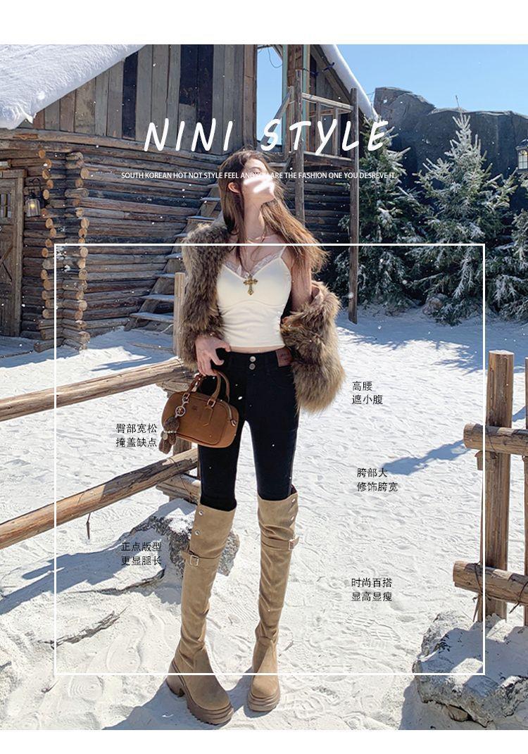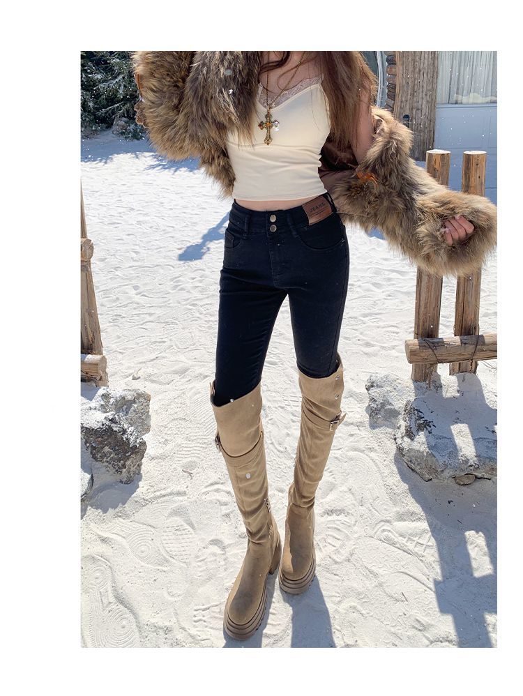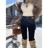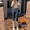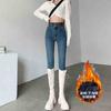 Jeans de Pierna Negra para Mujer Otoño e Invierno 2024 Nuevo Cintura Alta Ajustados Slim Ajustados Elásticos Forrados de Felpa Pantalones Lápiz Modernos