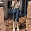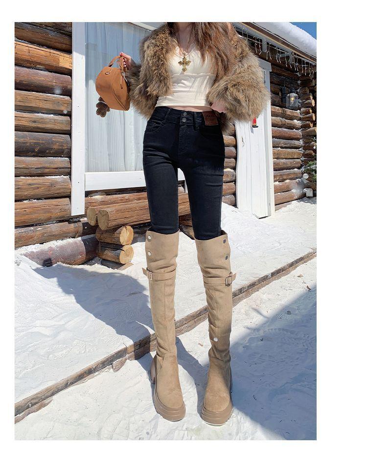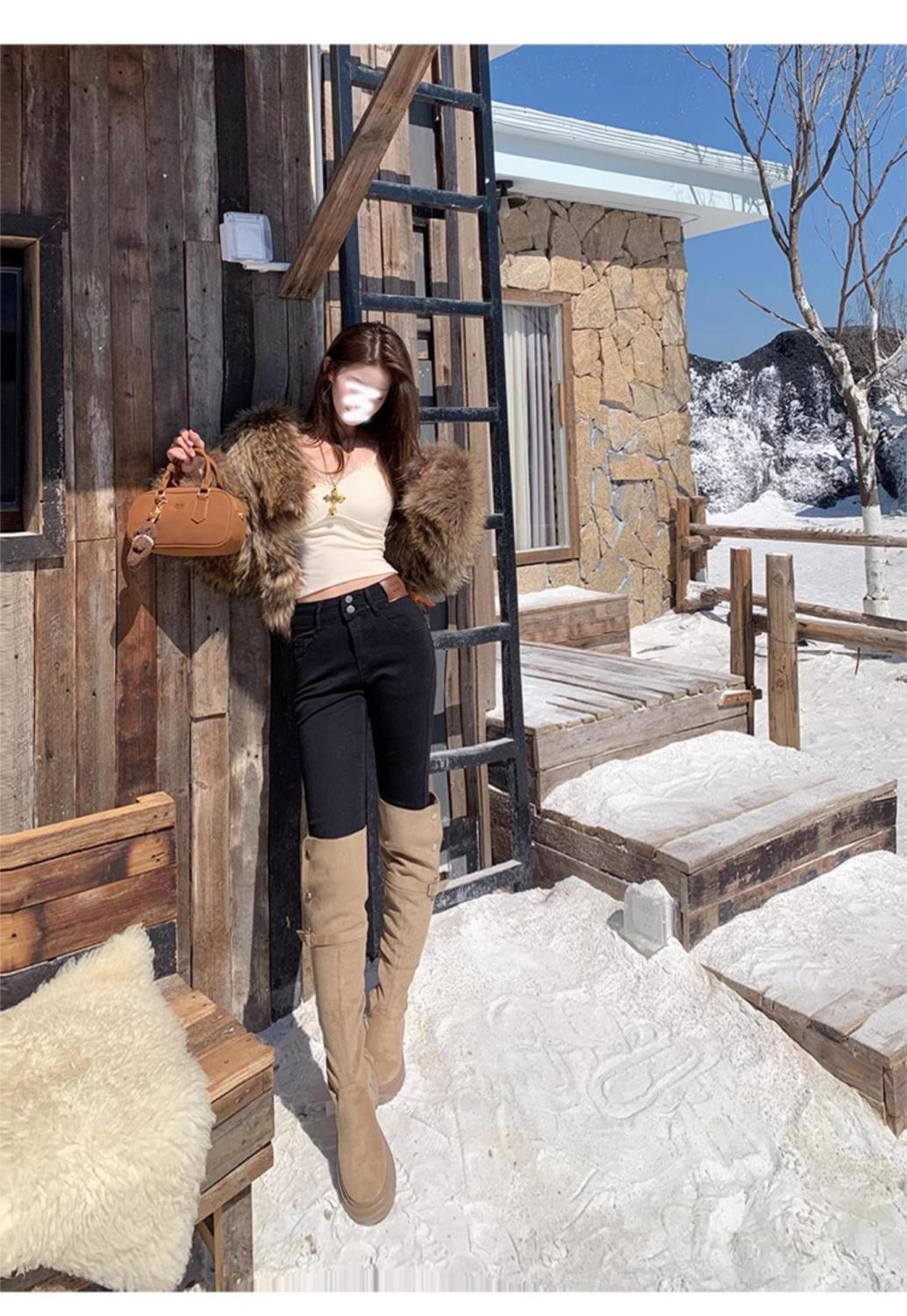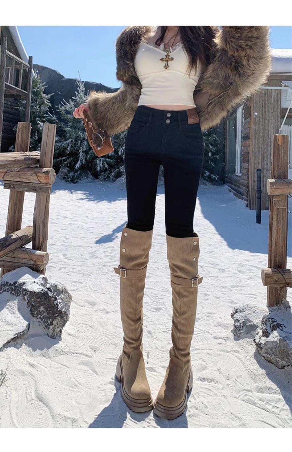 Jeans de Pierna Negra para Mujer Otoño e Invierno 2024 Nuevo Cintura Alta Ajustados Slim Ajustados Elásticos Forrados de Felpa Pantalones Lápiz Modernos
